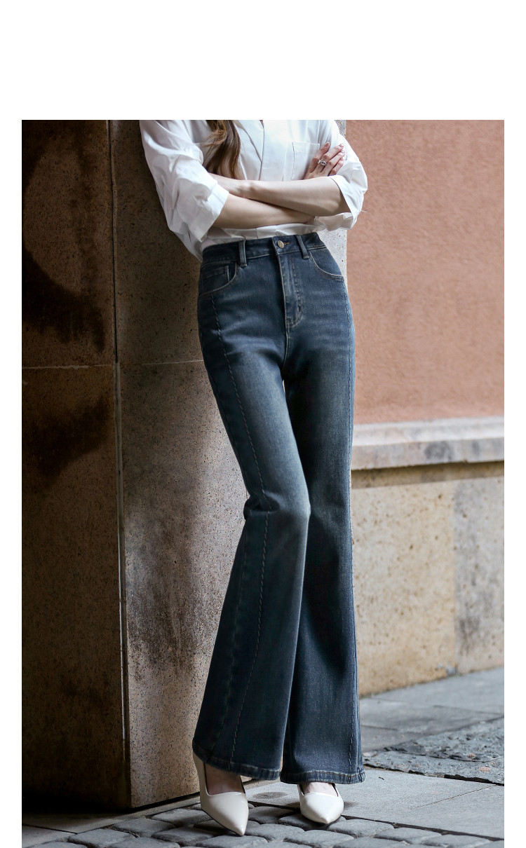 【拉毛小暖炉】手擦喇叭裤25冬辑线磨白显瘦藏肉牛仔裤女高级感