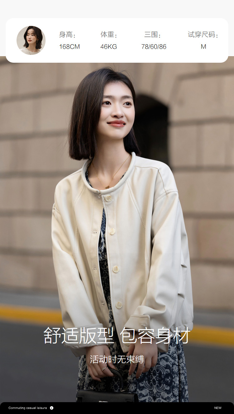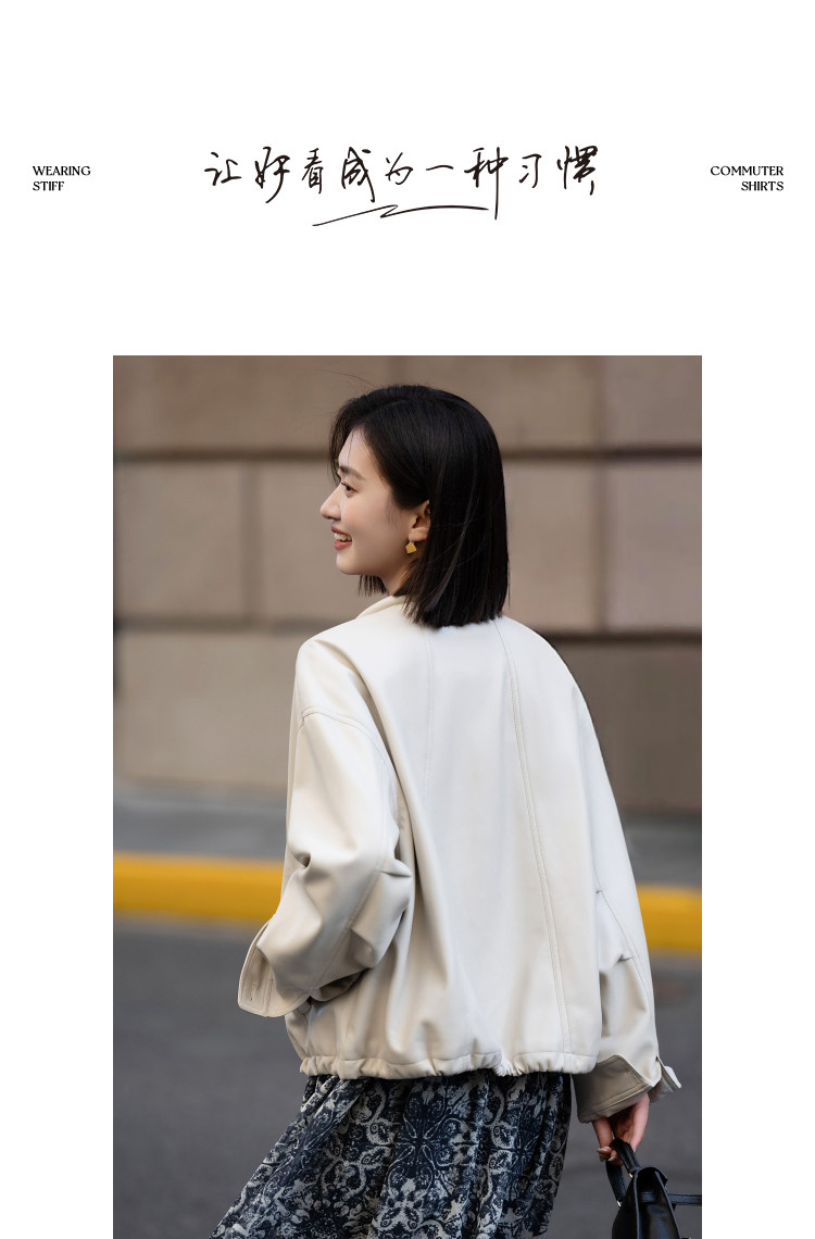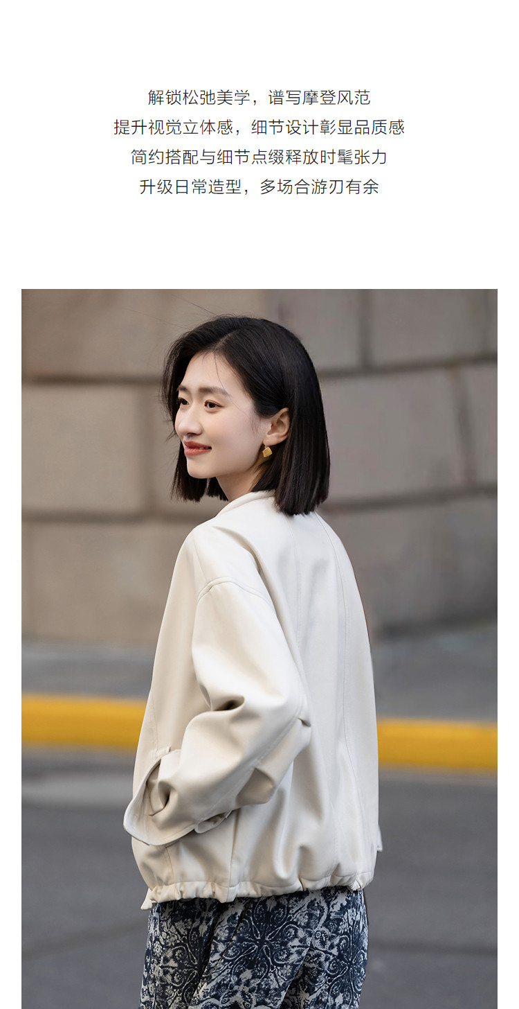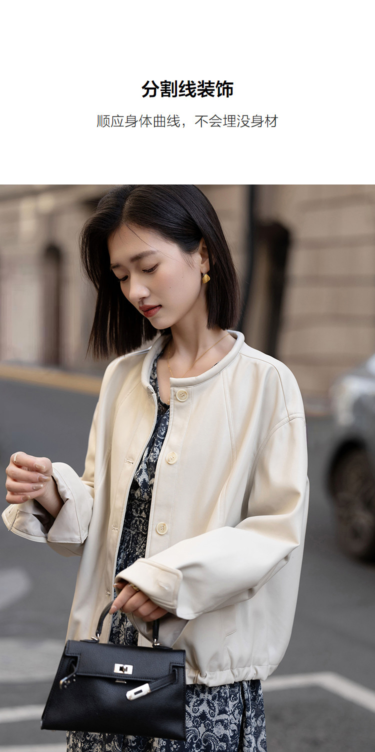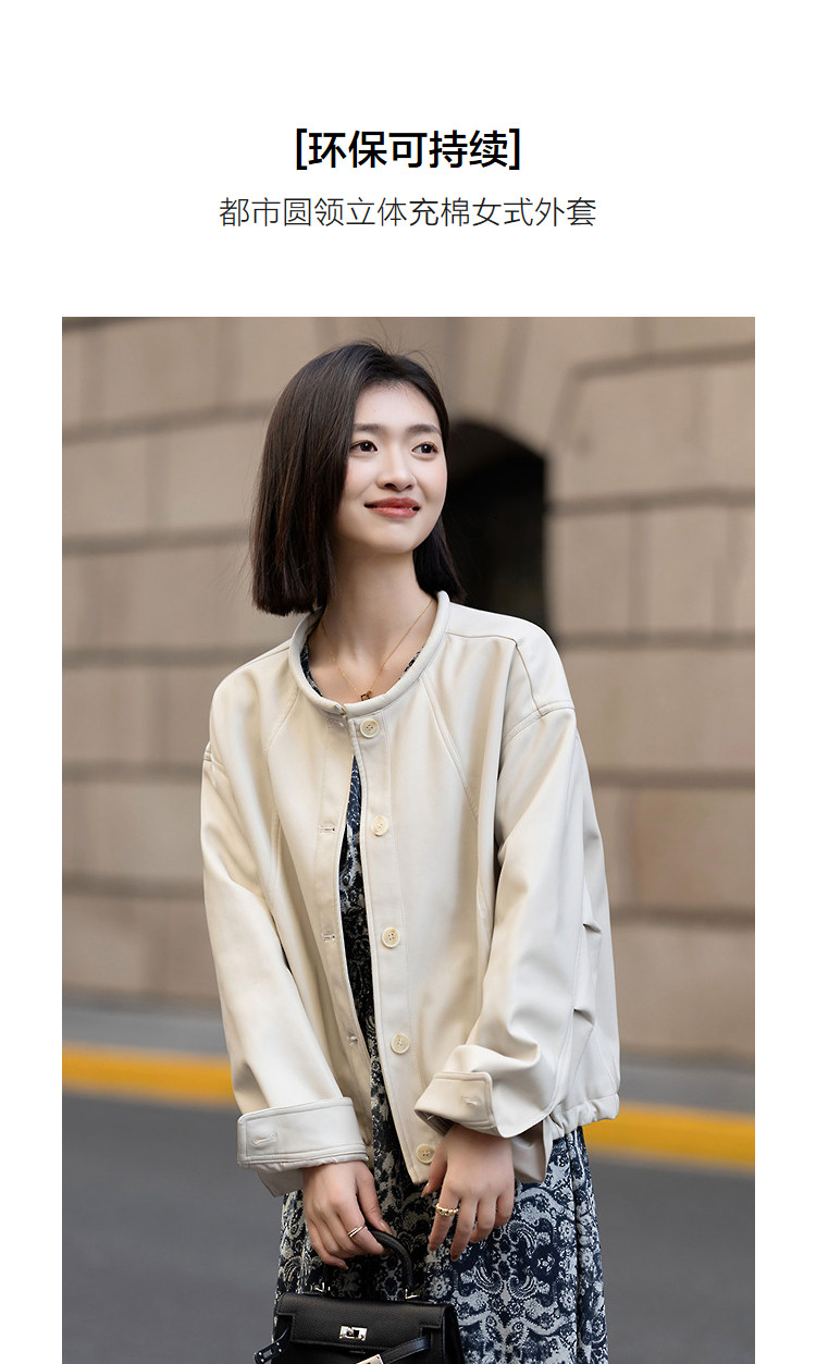 【环保PU】2026春都市圆领立体充棉分割线装饰挺括女式夹克外套