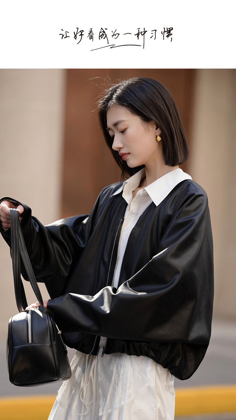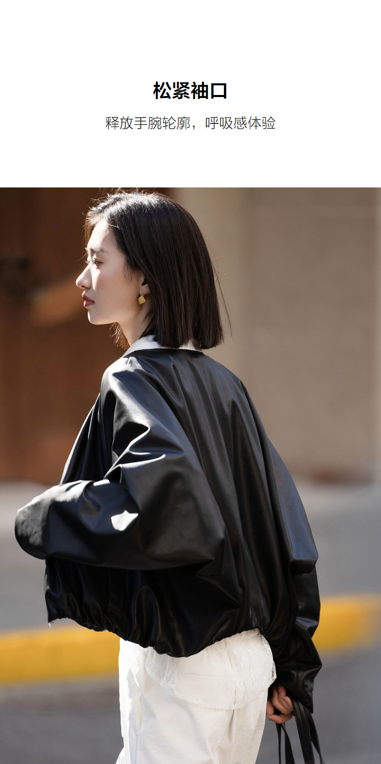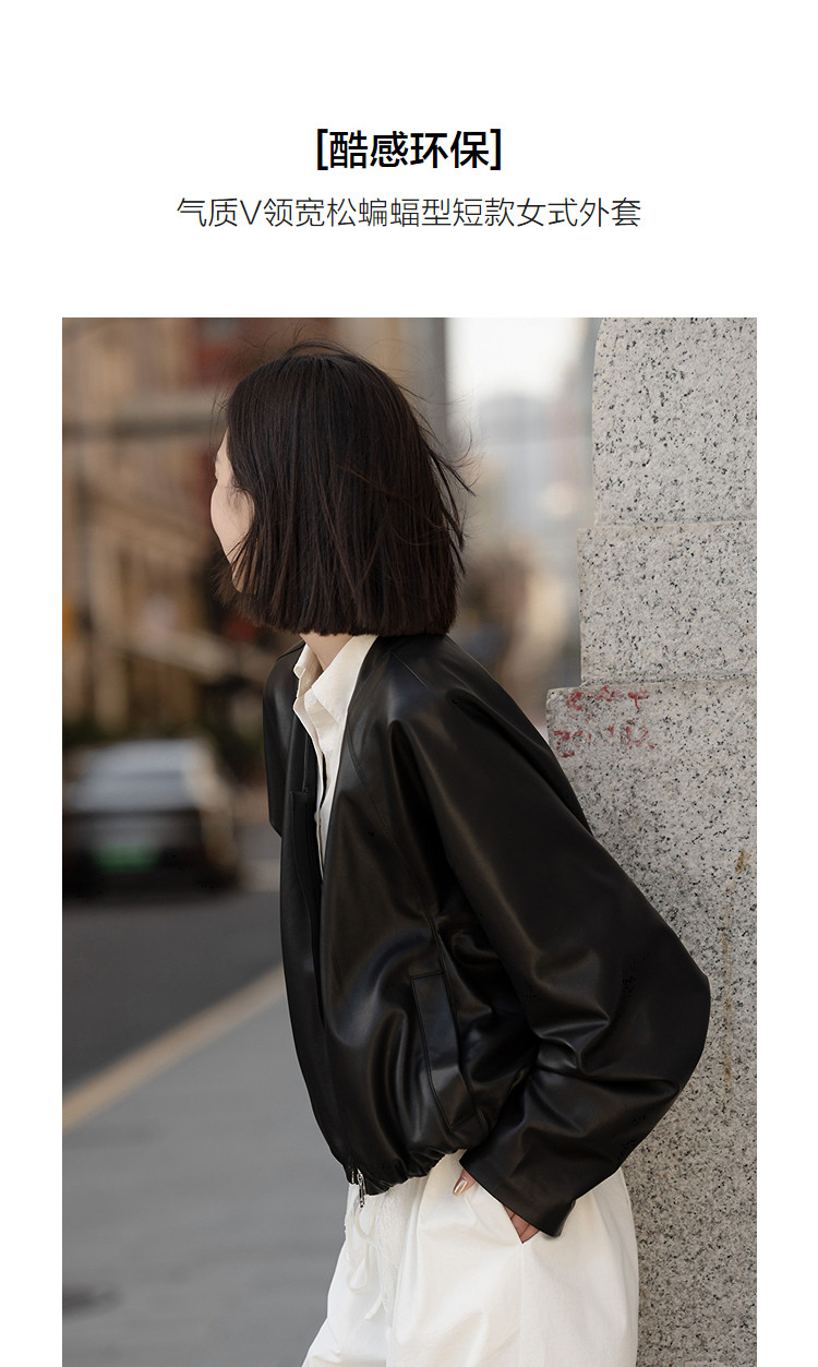 【酷感环保】2026春气质V领松紧袖口宽松蝙蝠型短款小个子女式外套