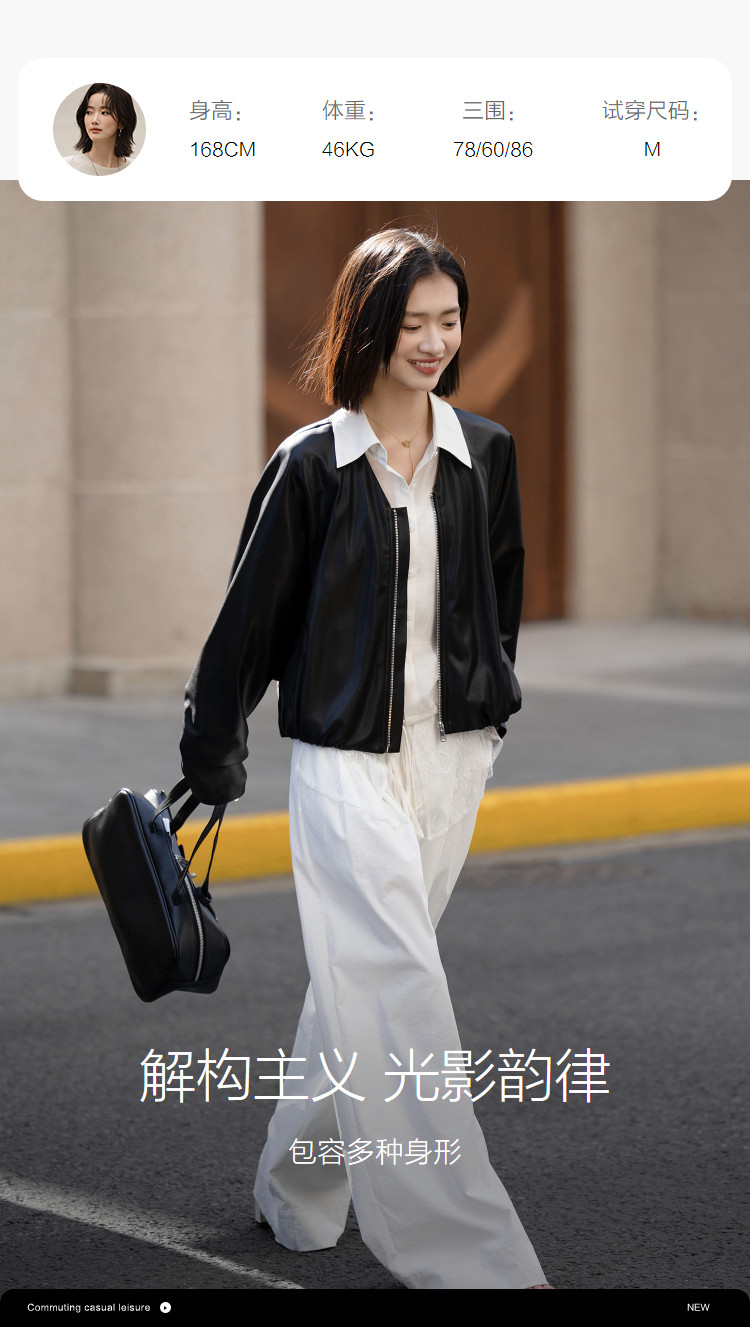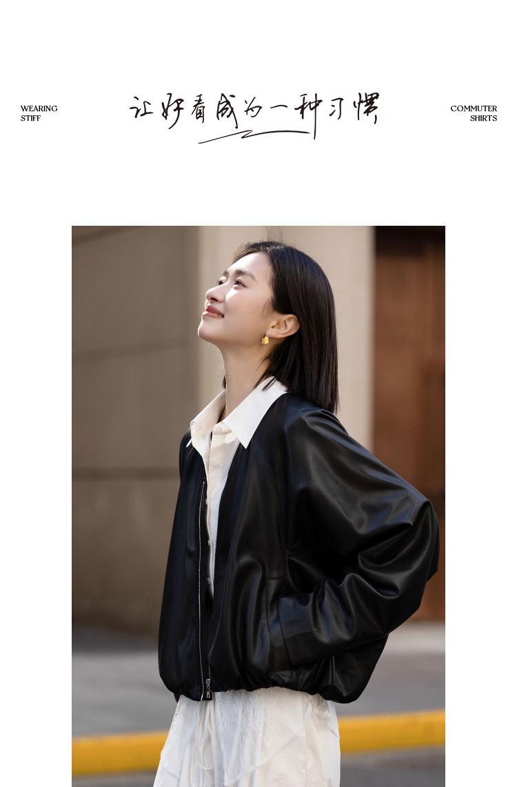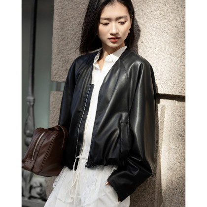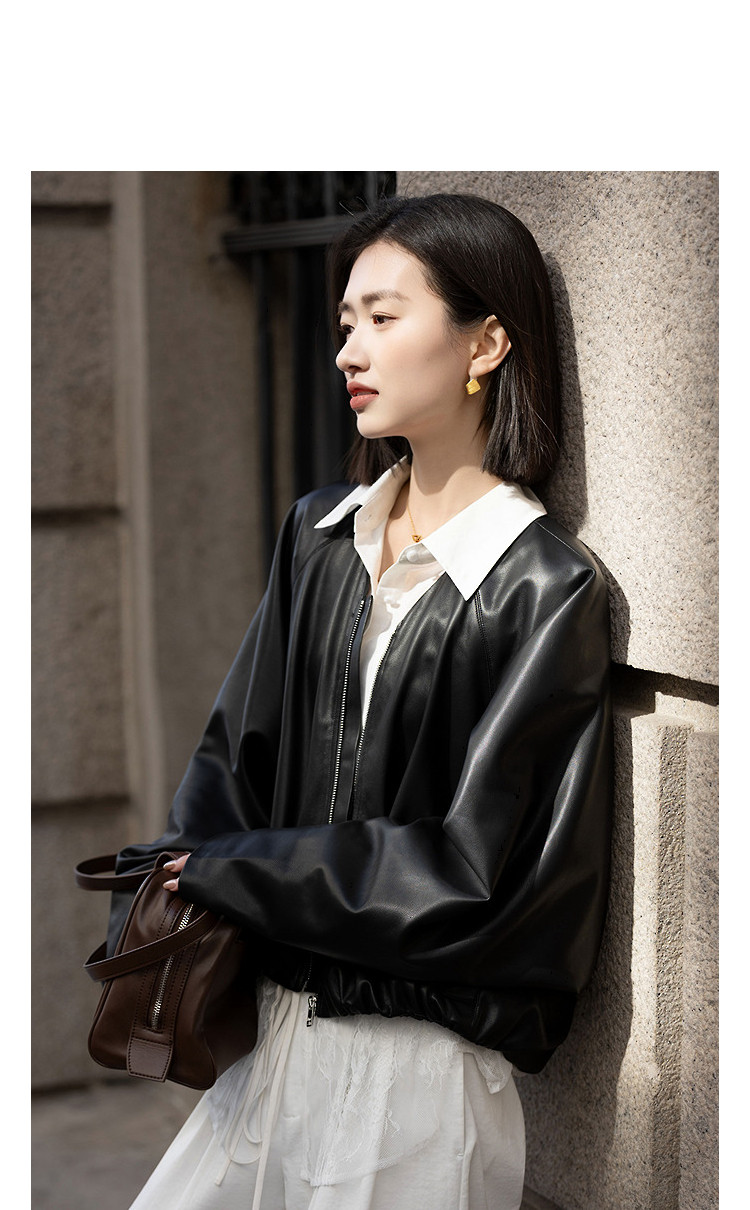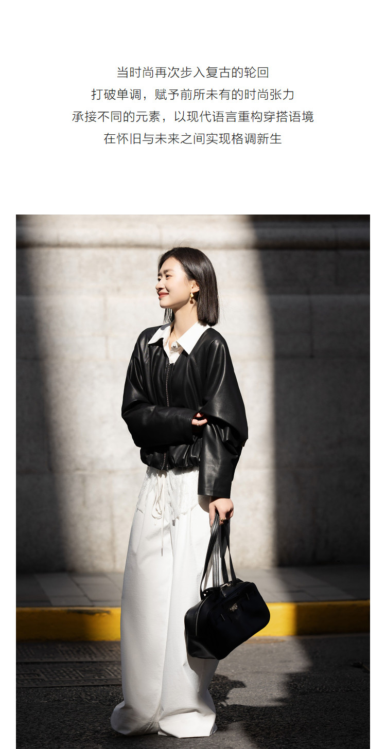 【酷感环保】2026春气质V领松紧袖口宽松蝙蝠型短款小个子女式外套