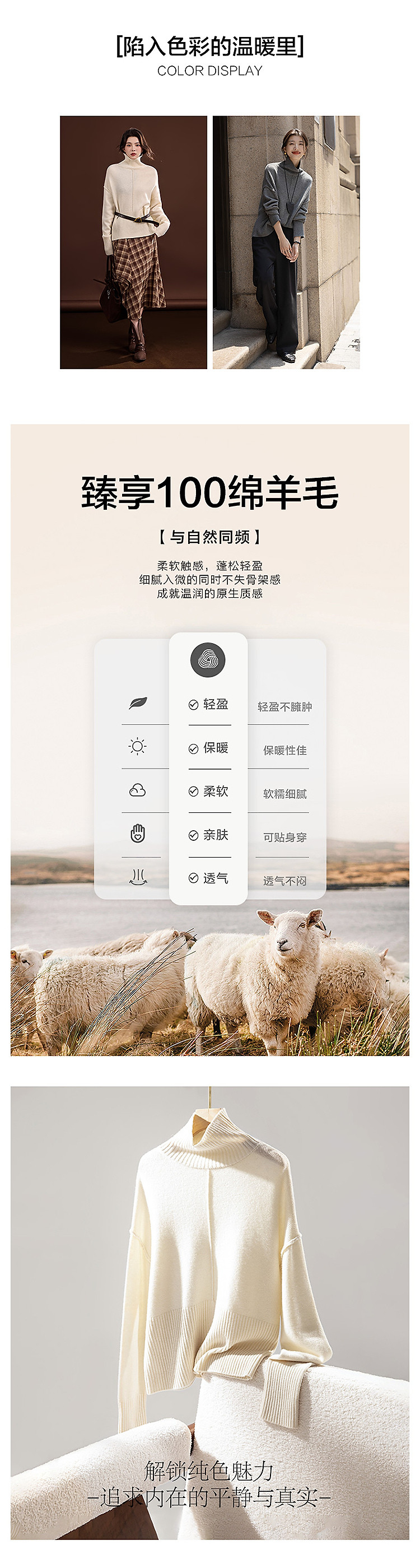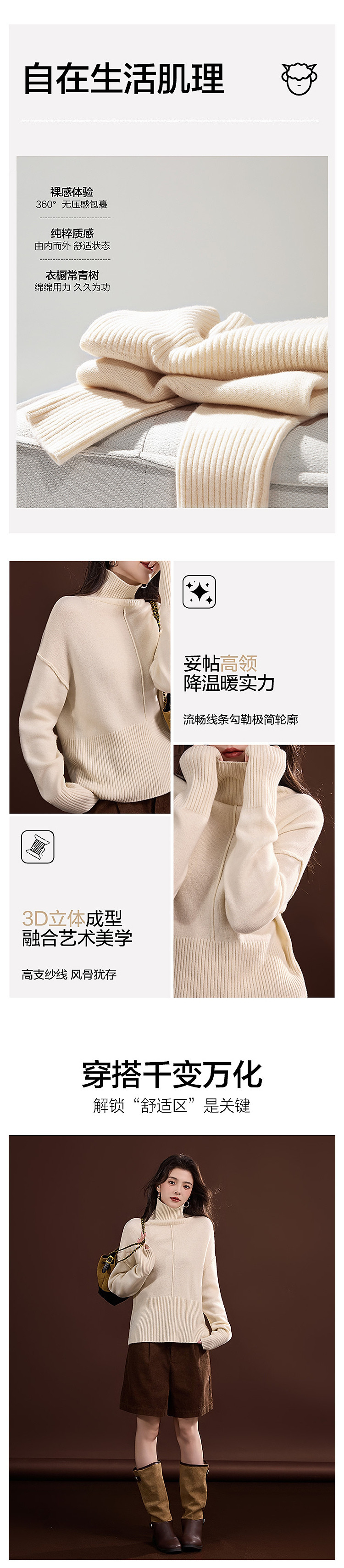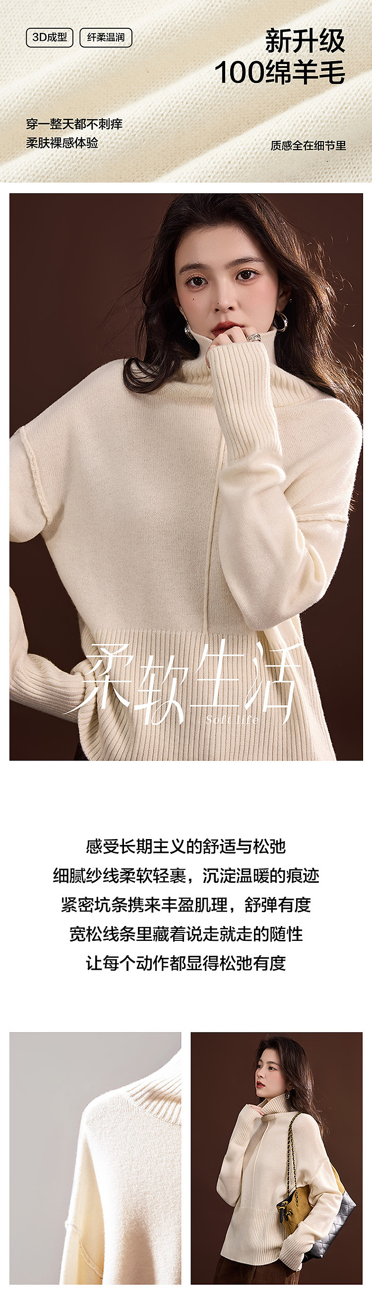 【100绵羊毛】冬季绒感高领线衫分割宽松藏肉小个子女式针织衫