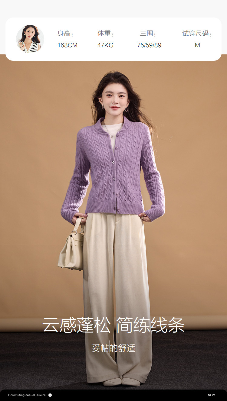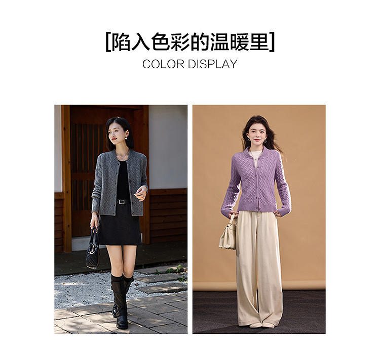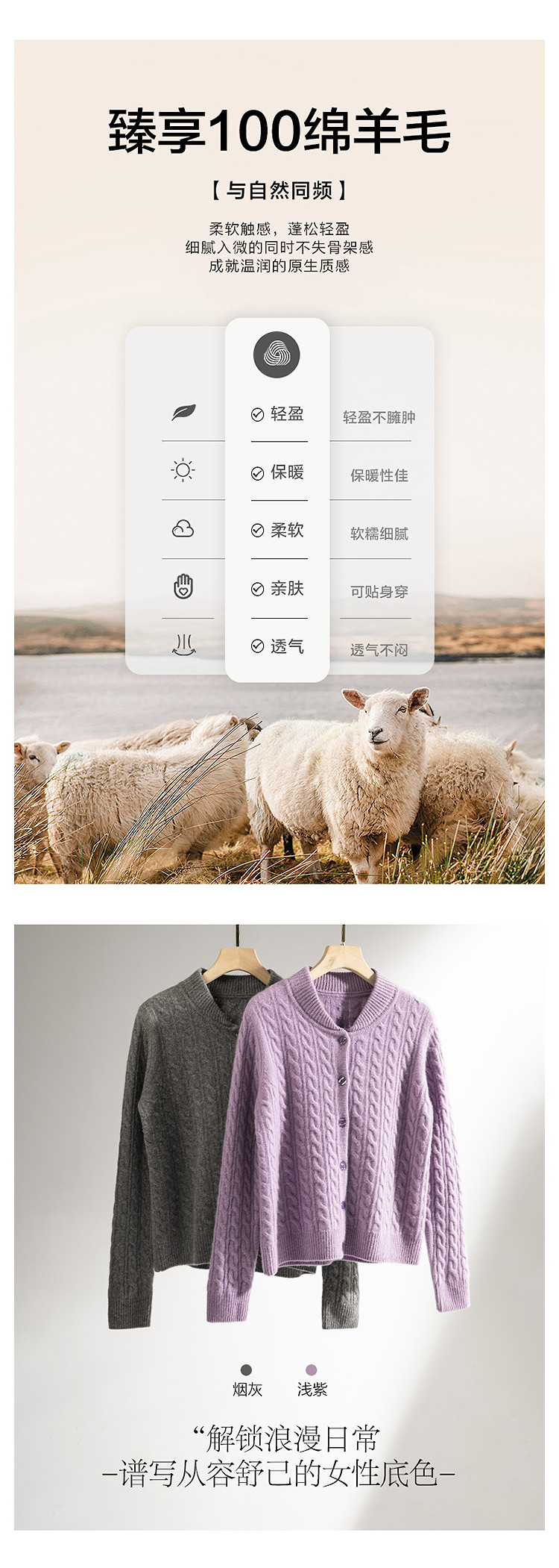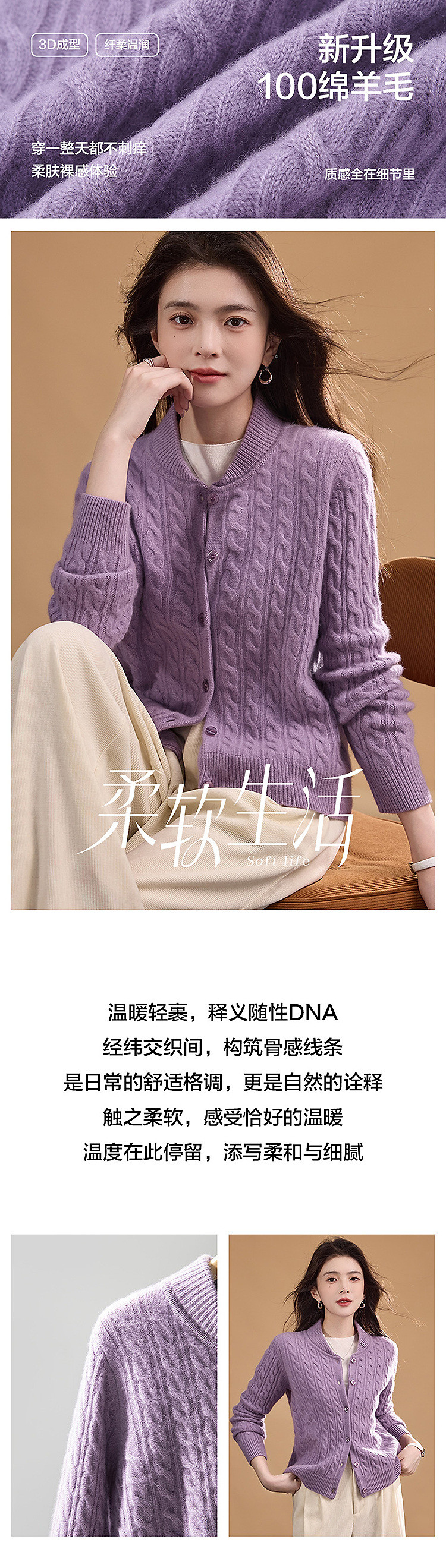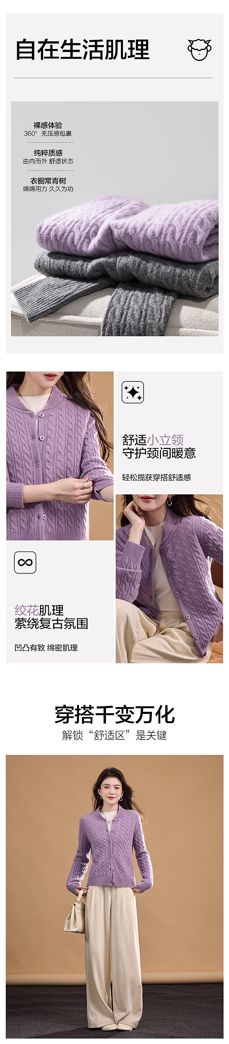 【柔暖100绵羊毛】冬季小立领绞花开衫气质小个子针织衫女上衣