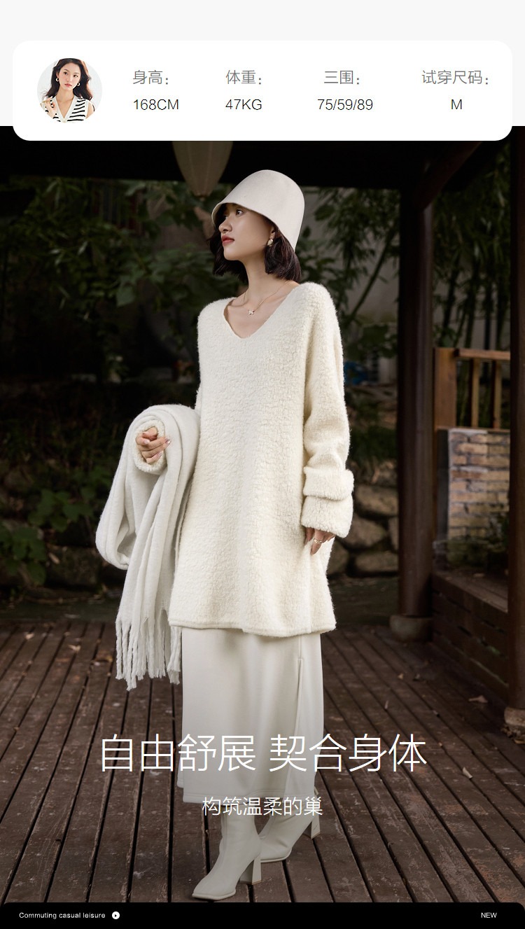 【温柔感针织衫】2024冬款圆领套头花瓣领口设计长袖针织衫女