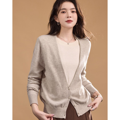 【醇柔100绵羊毛】冬季假两件内圆领外V领线衫拼色针织衫上衣