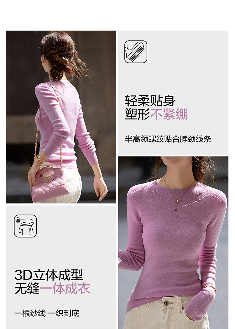 【无缝一体100绵羊毛】秋季可机洗精纺半高领线衫针织衫女上衣
