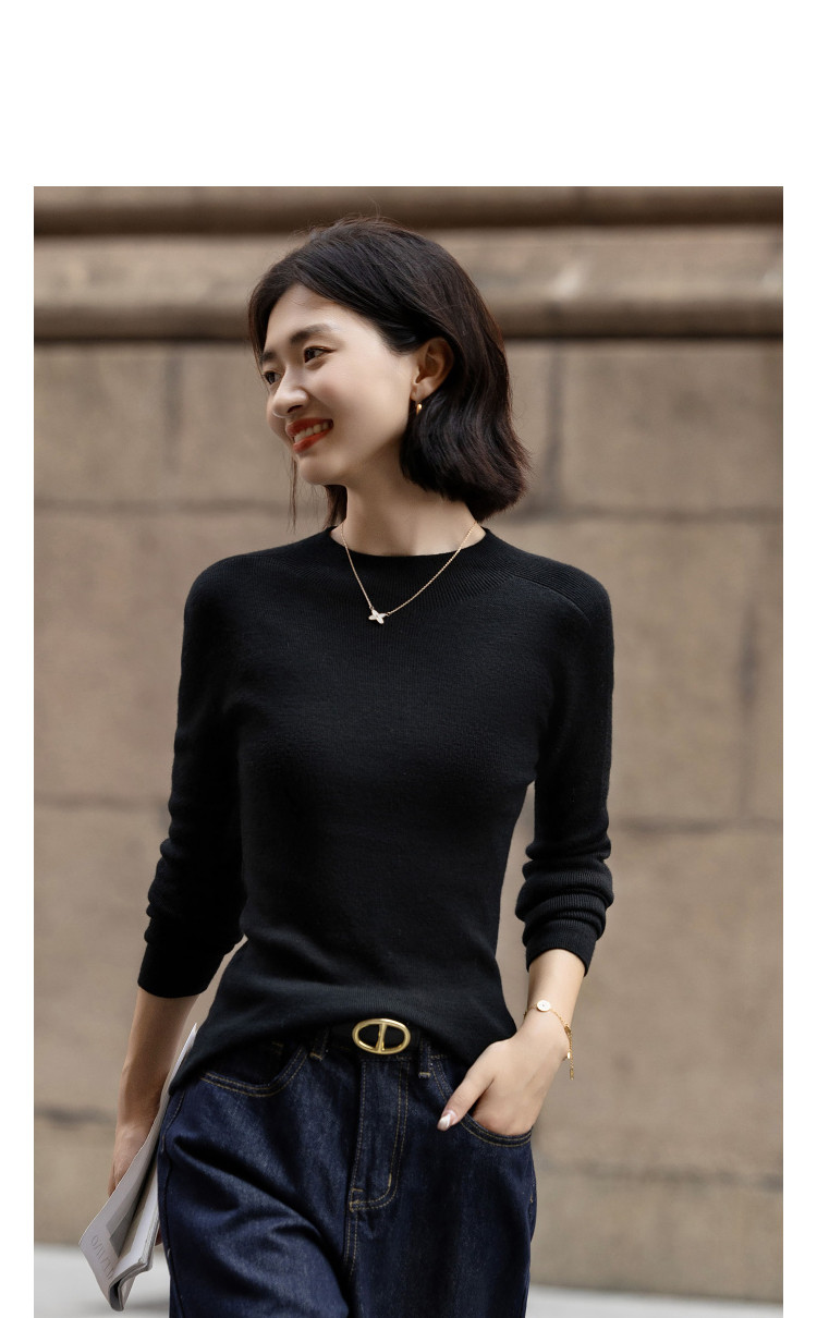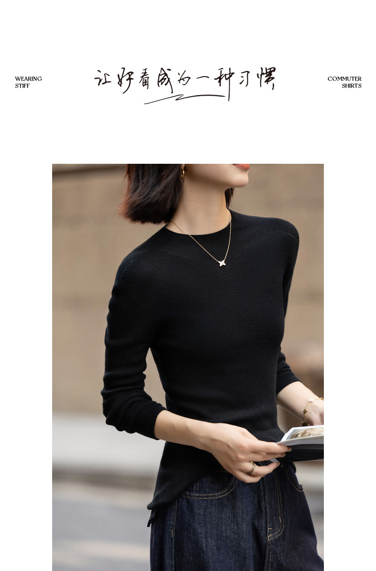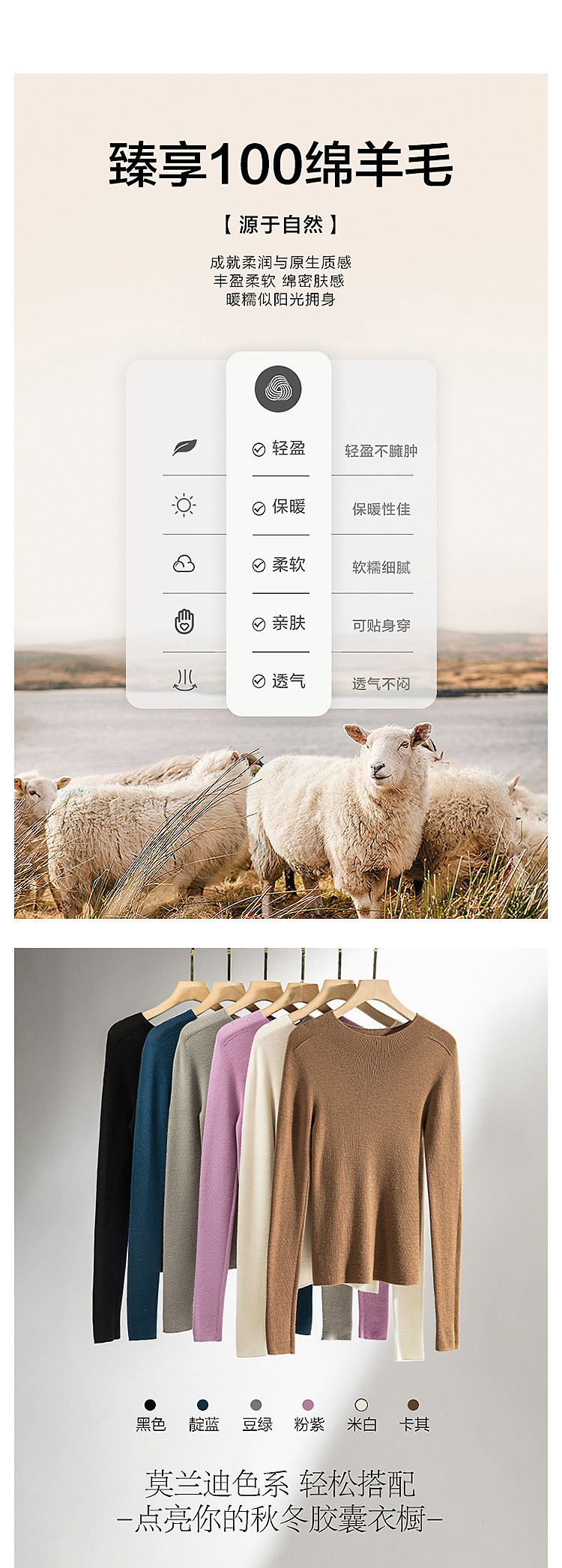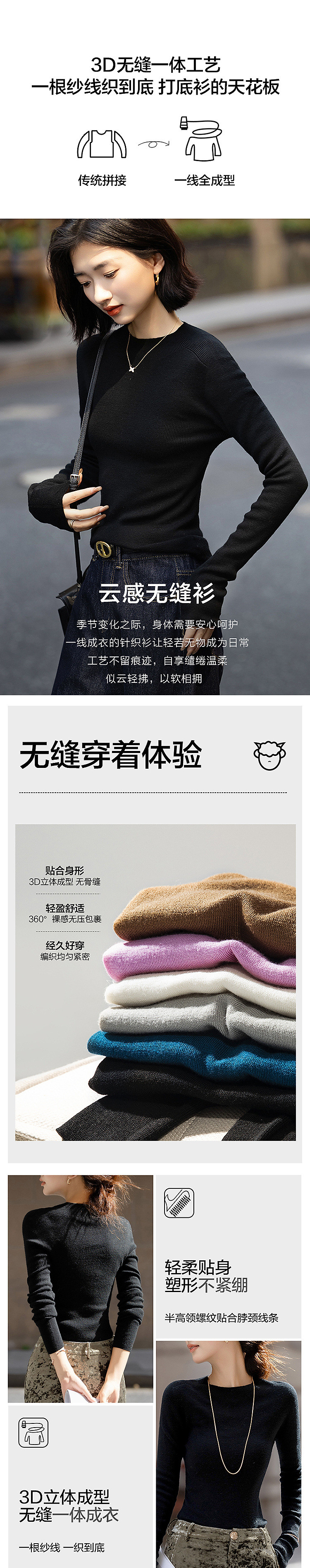 【无缝一体100绵羊毛】秋季可机洗精纺半高领线衫针织衫女上衣