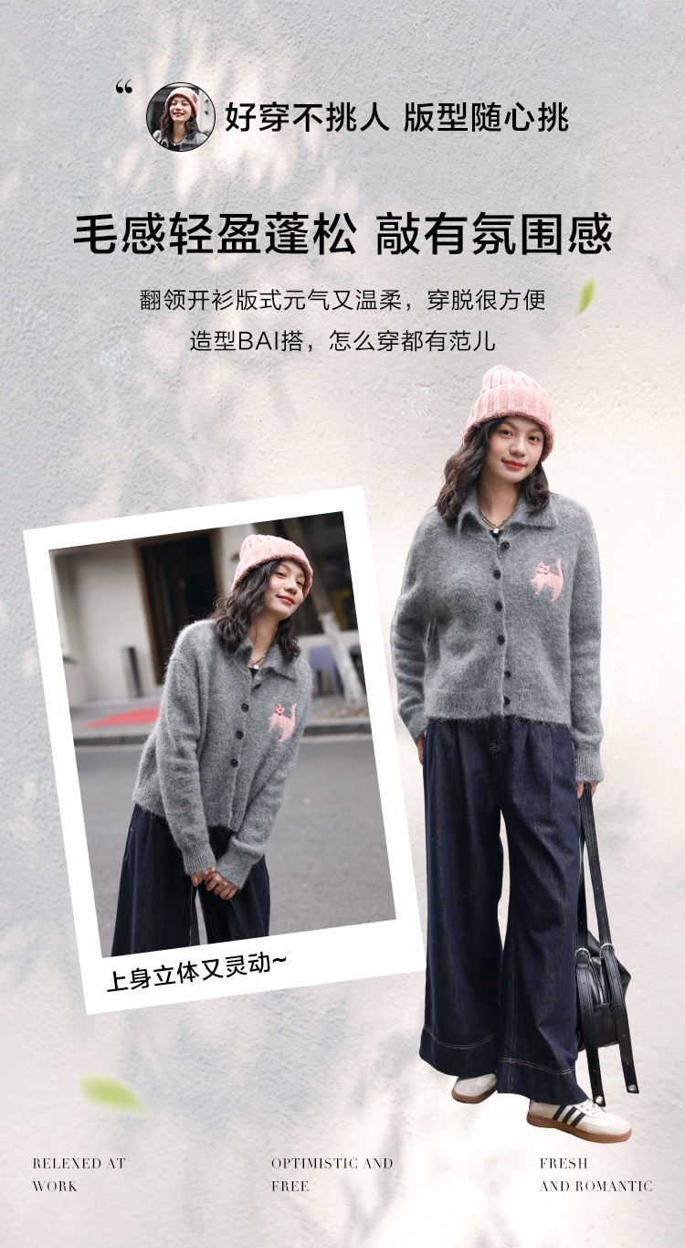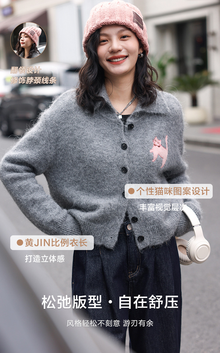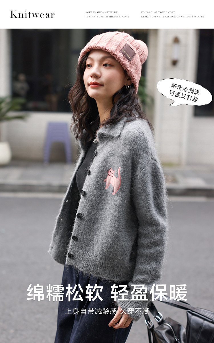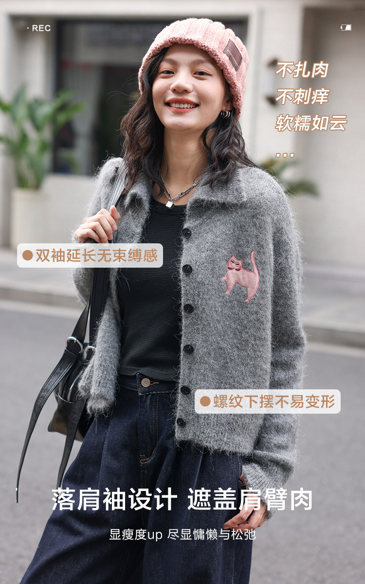 【毛绒软糯猫咪开衫】冬款格雷系长袖羊驼毛混纺针织衫女