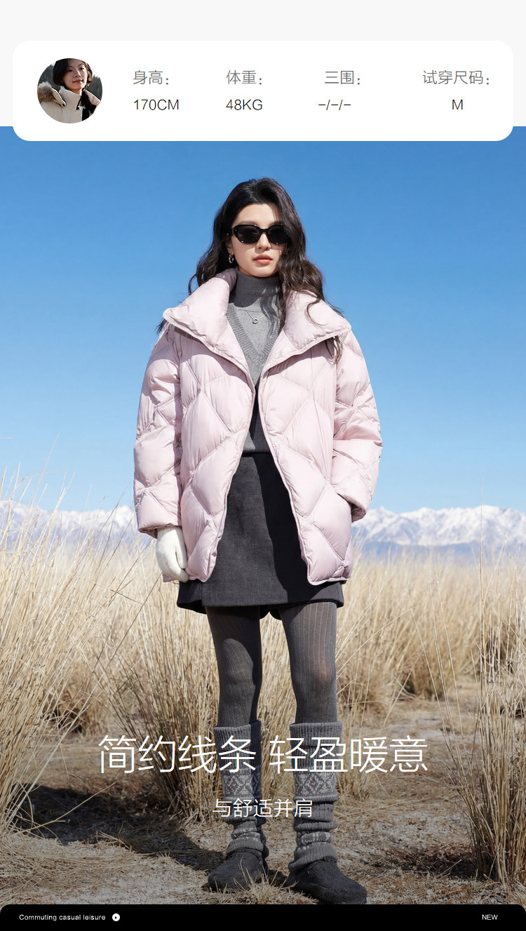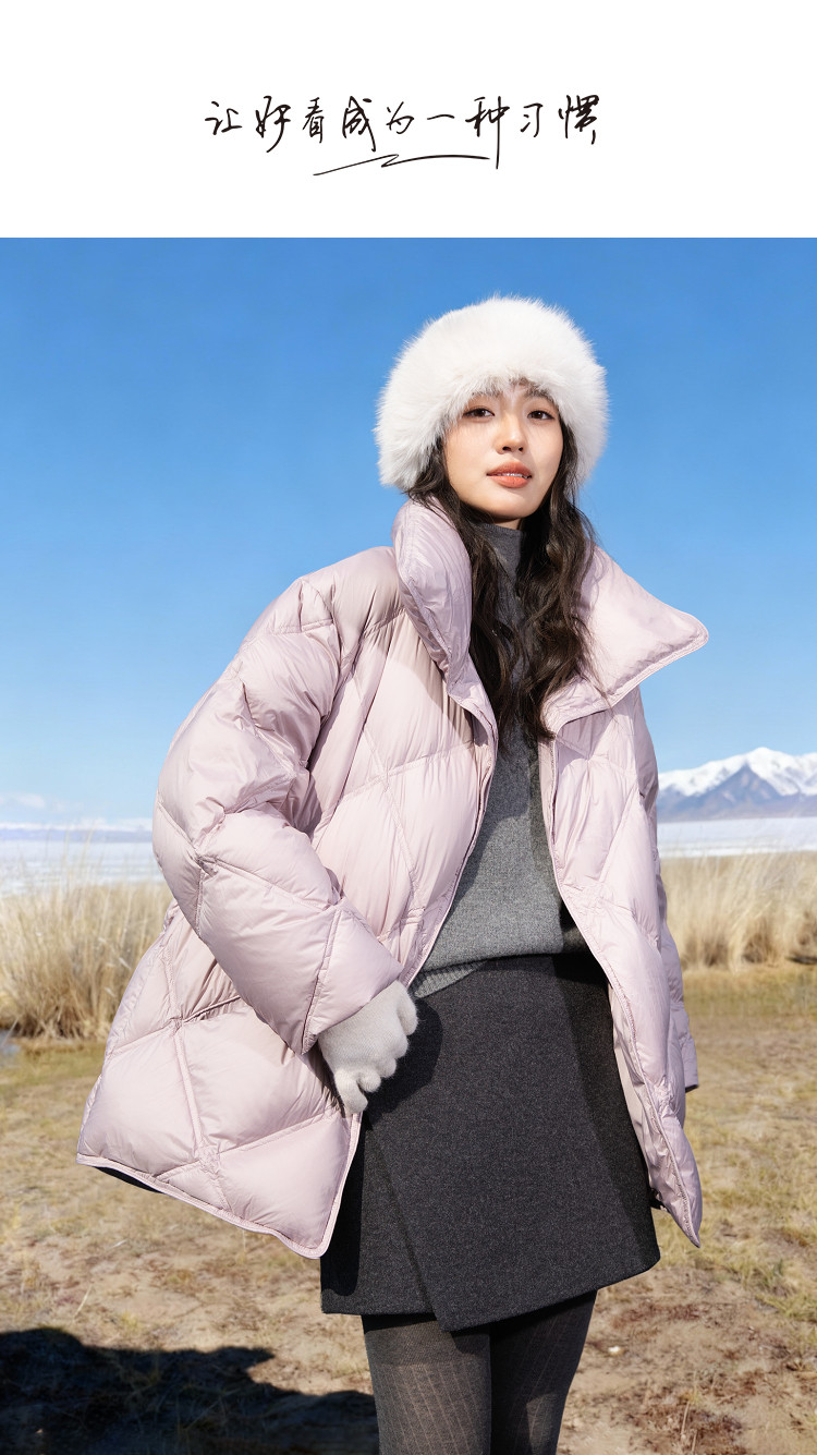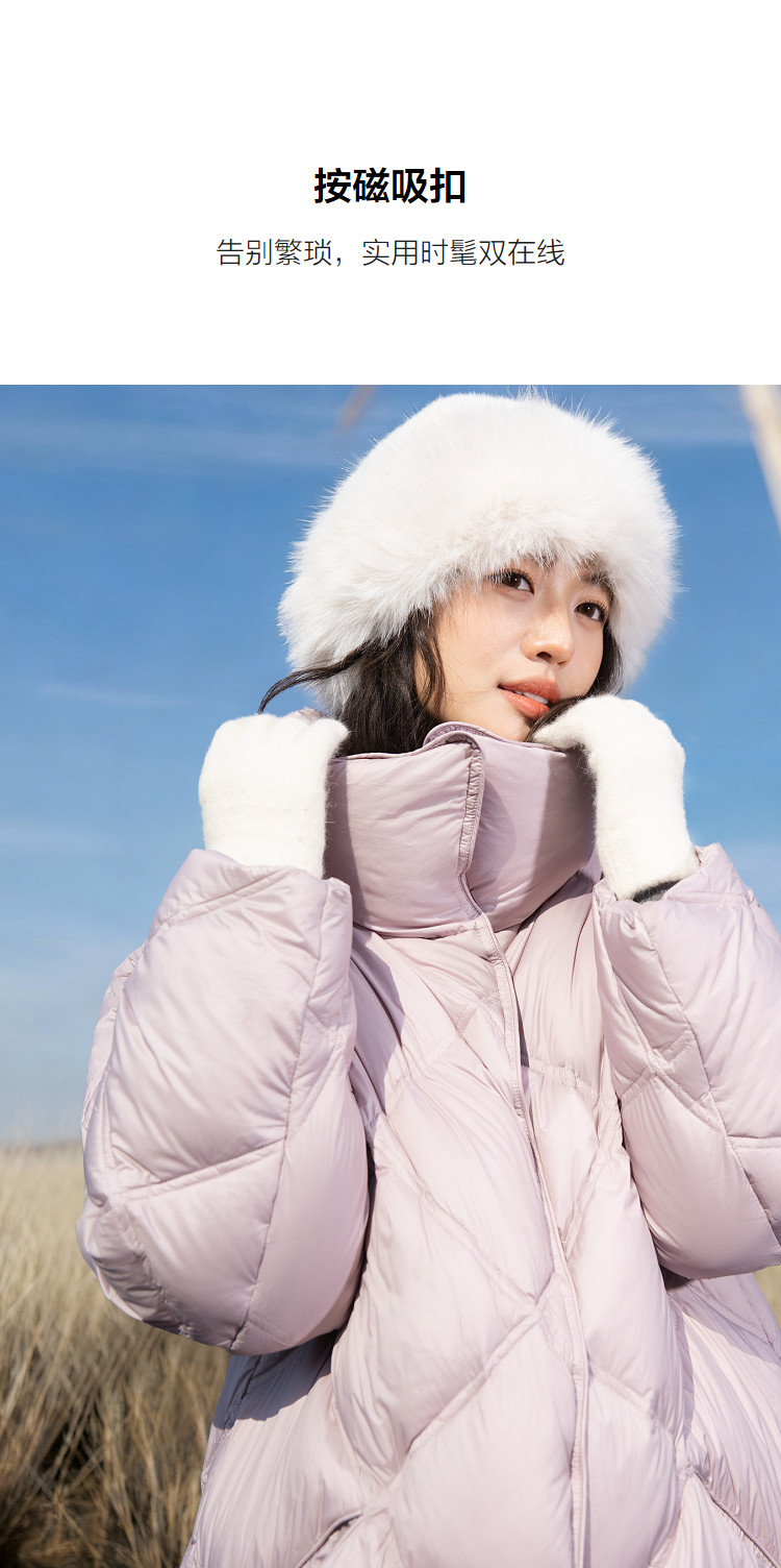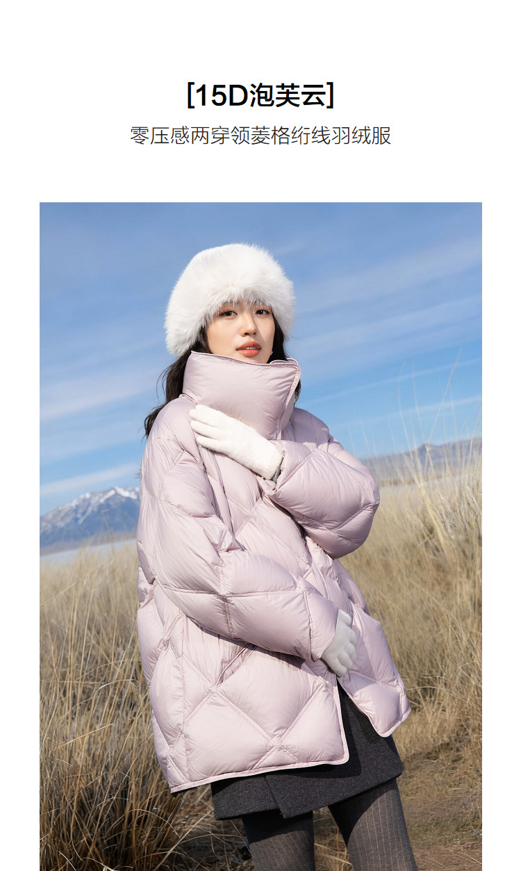 【15D泡芙云】冬季立翻两穿领菱格绗线按磁吸扣保暖女式羽绒服