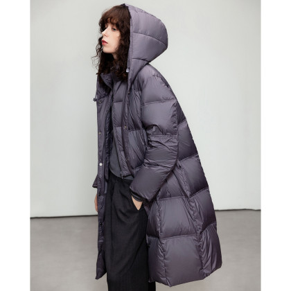 【羽茧之梦】冬季轻暖90鸭绒连帽双层工艺中长不显臃肿女羽绒服