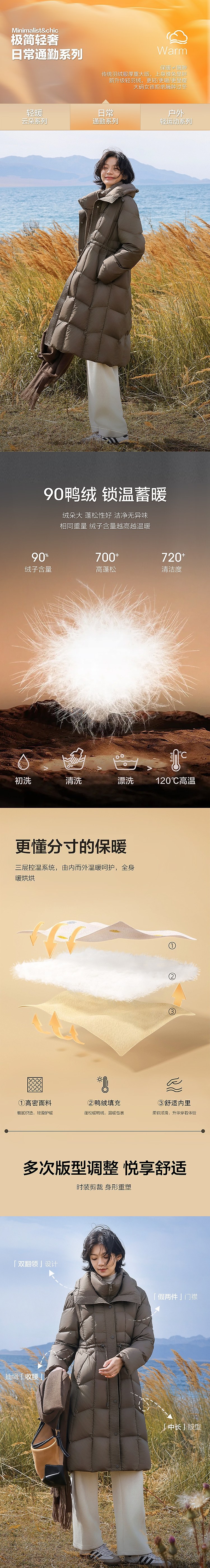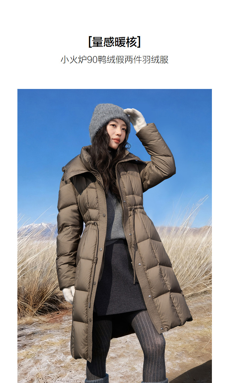 【量感暖核】冬季小火炉90鸭绒假两件双翻领长款保暖女式羽绒服
