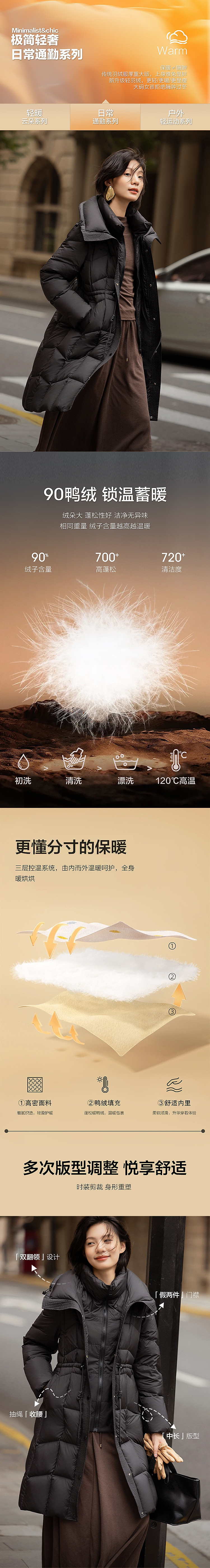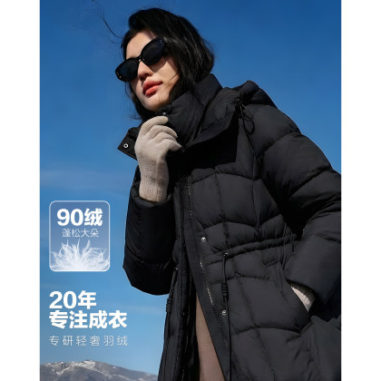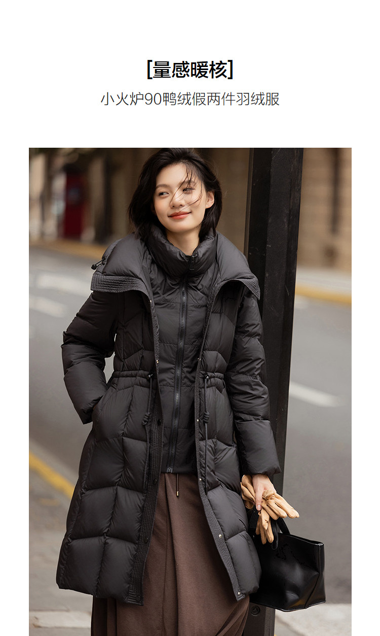 【量感暖核】冬季小火炉90鸭绒假两件双翻领长款保暖女式羽绒服