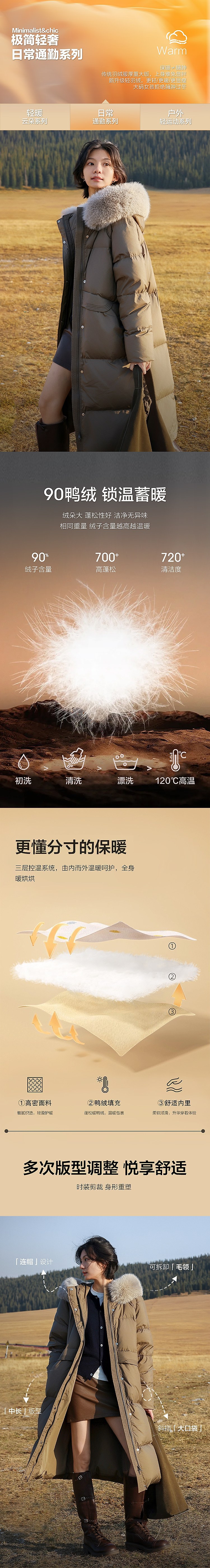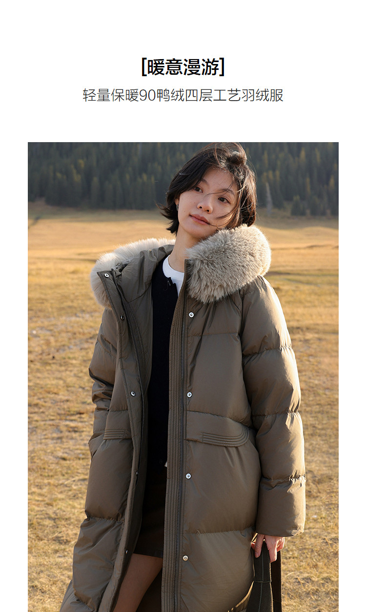 【暖意漫游】冬轻量保暖90鸭绒连帽可拆卸毛领四层工艺女羽绒服