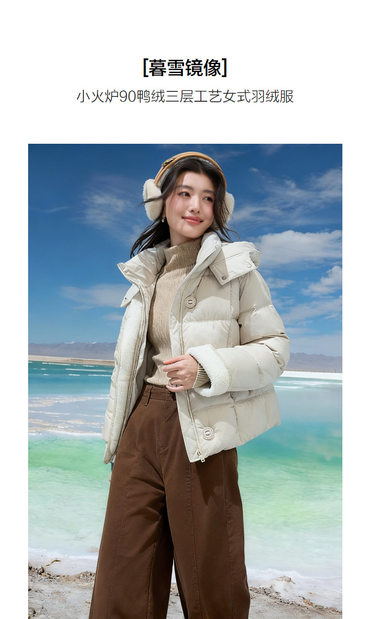 【暮雪镜像】冬季小火炉90鸭绒立领连帽三层工艺装饰滚条羽绒服