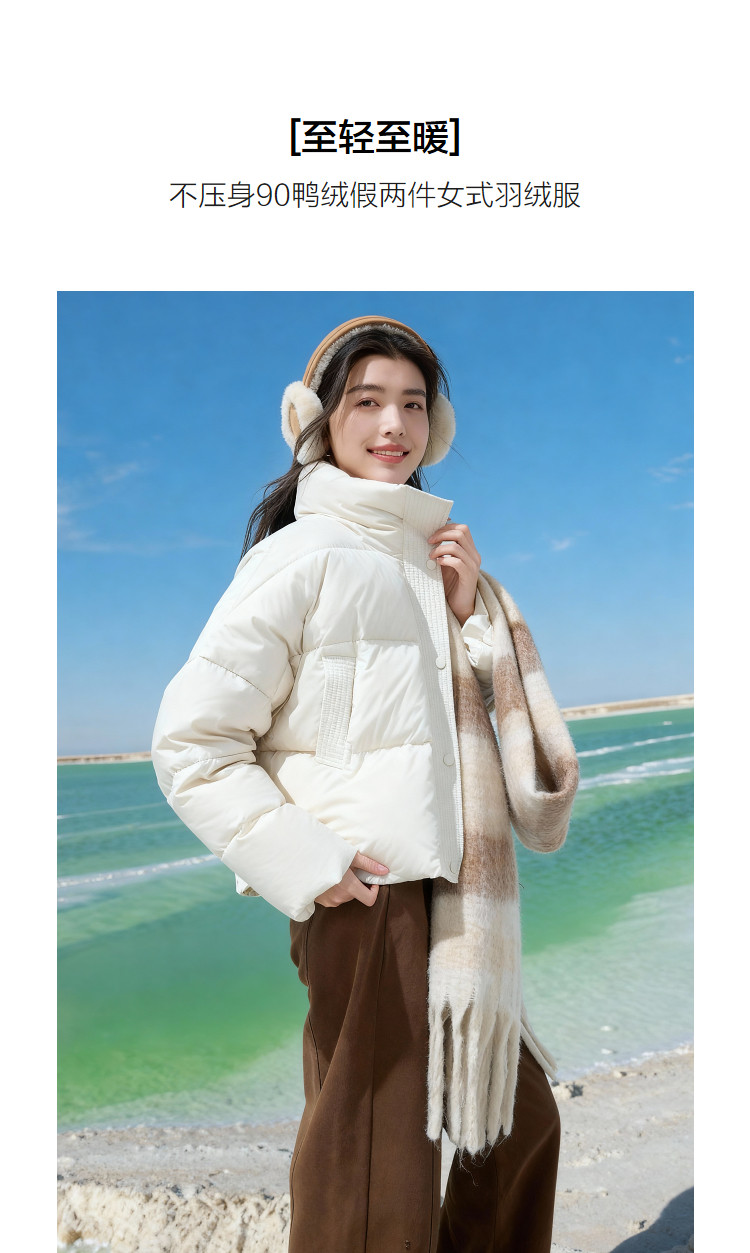 【至轻至暖】冬季不压身90鸭绒双层领假两件三层工艺女式羽绒服