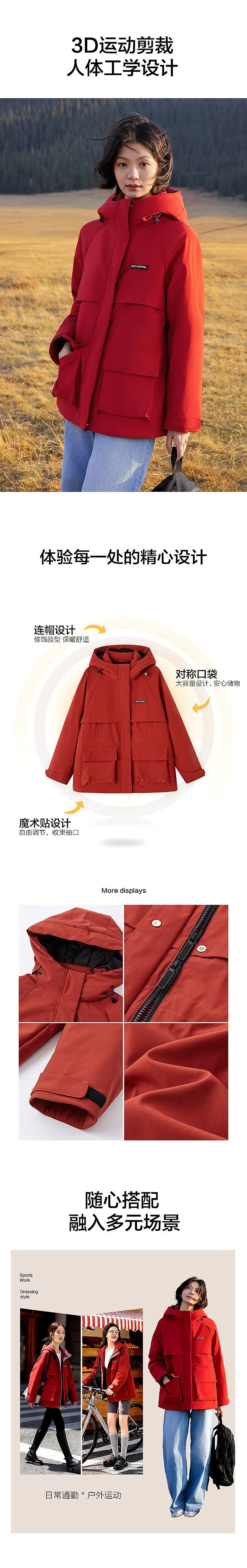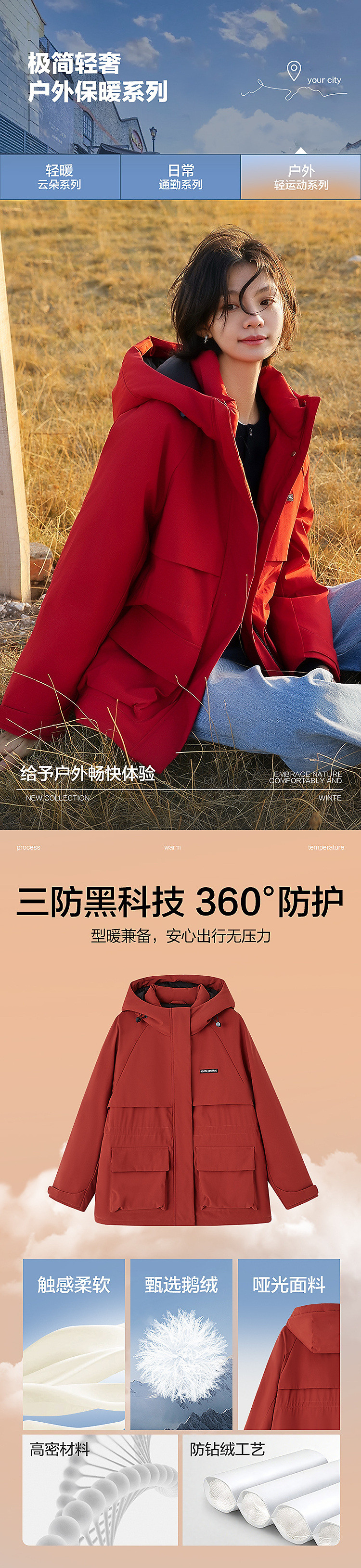 【三防黑科技】冬季保暖90鹅绒小提花北欧棉连帽魔术贴女羽绒服