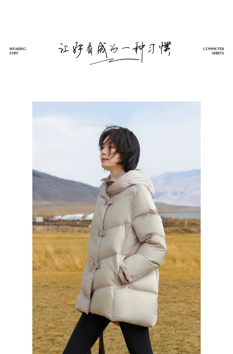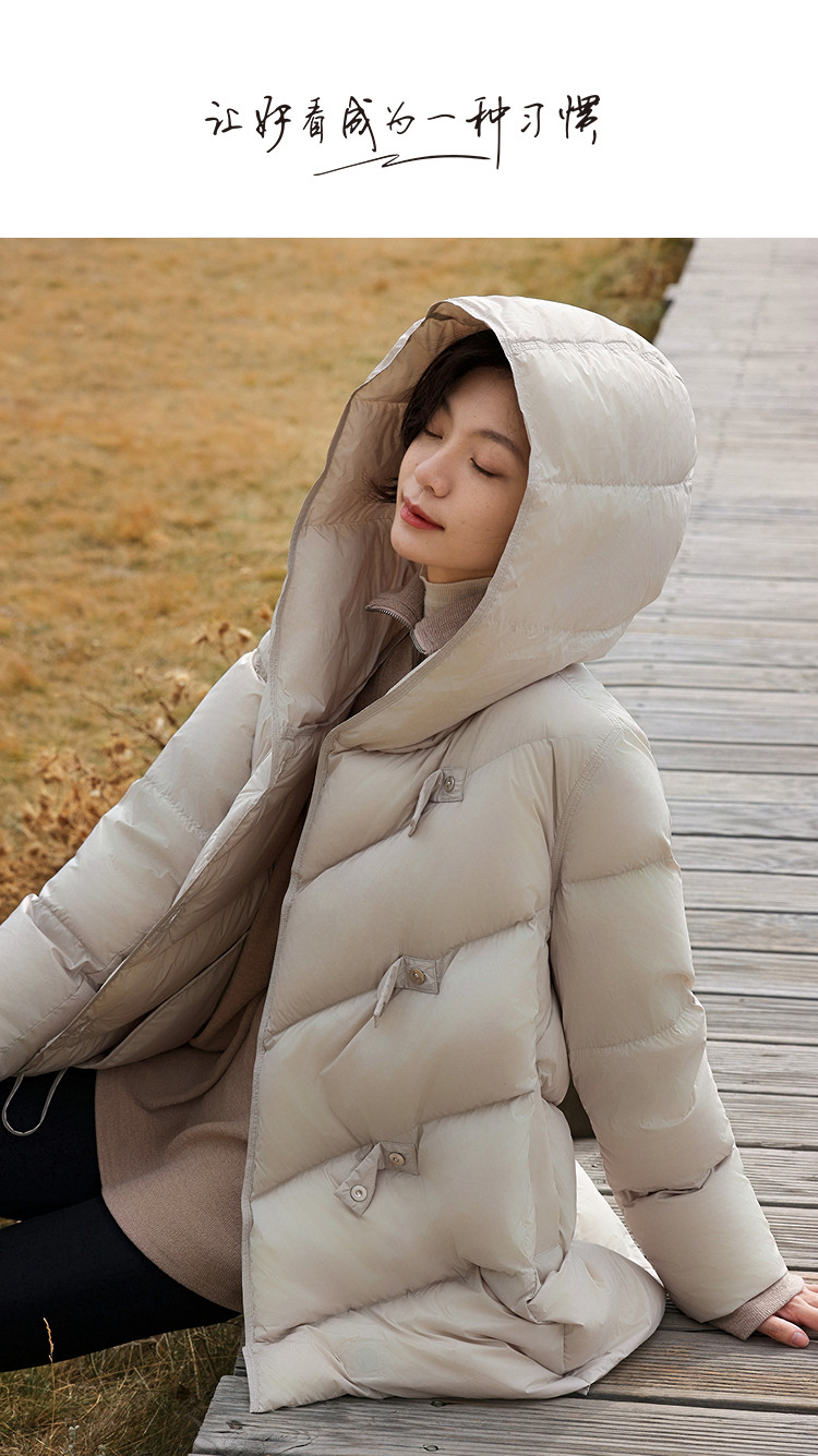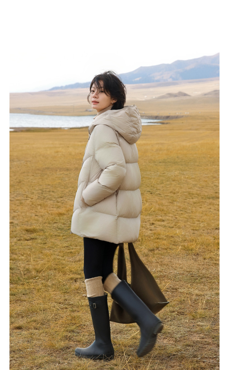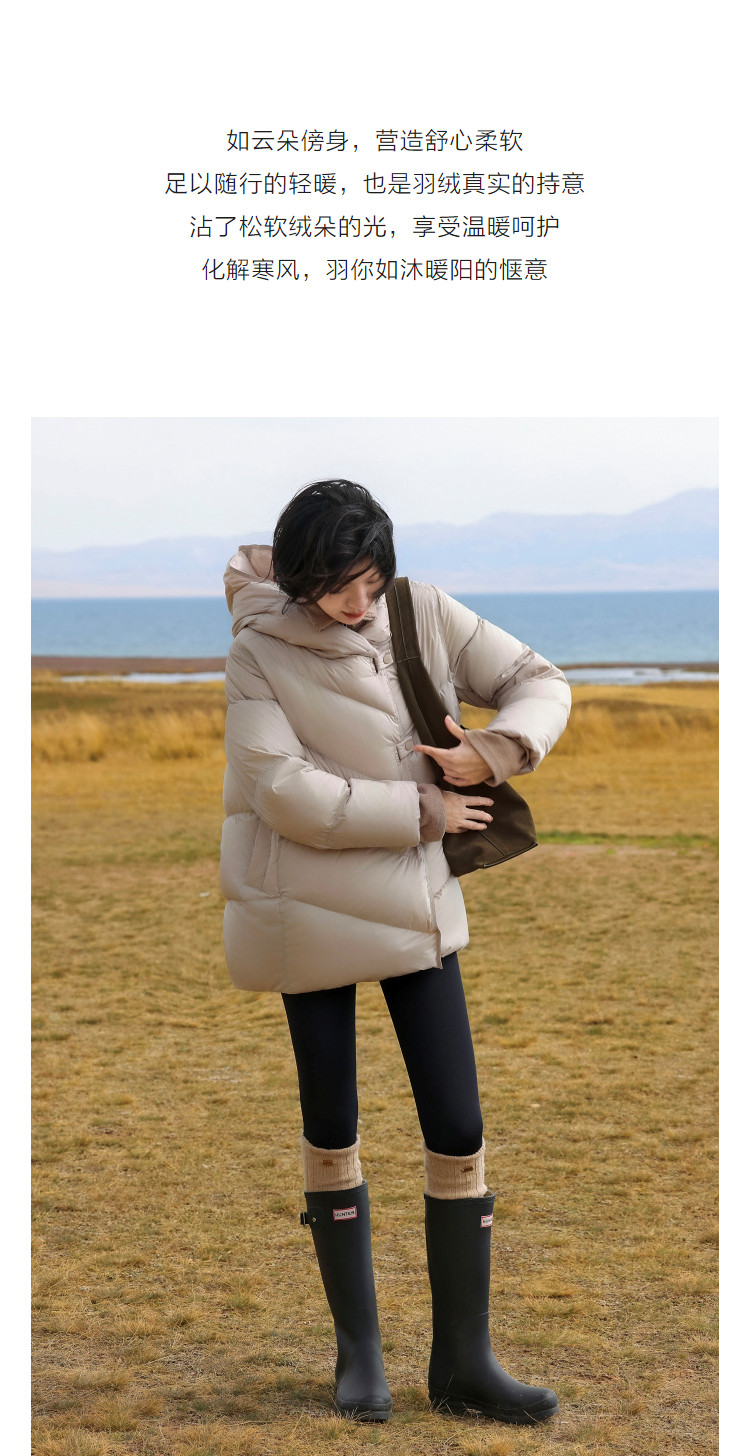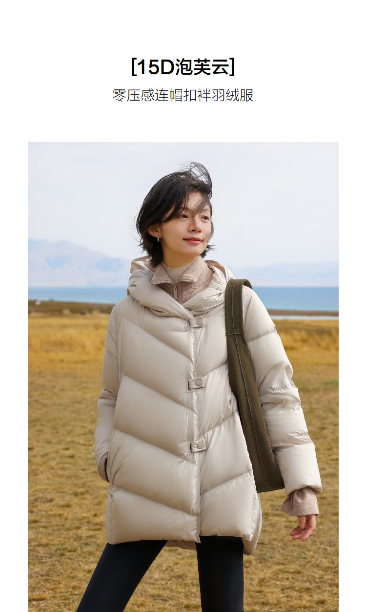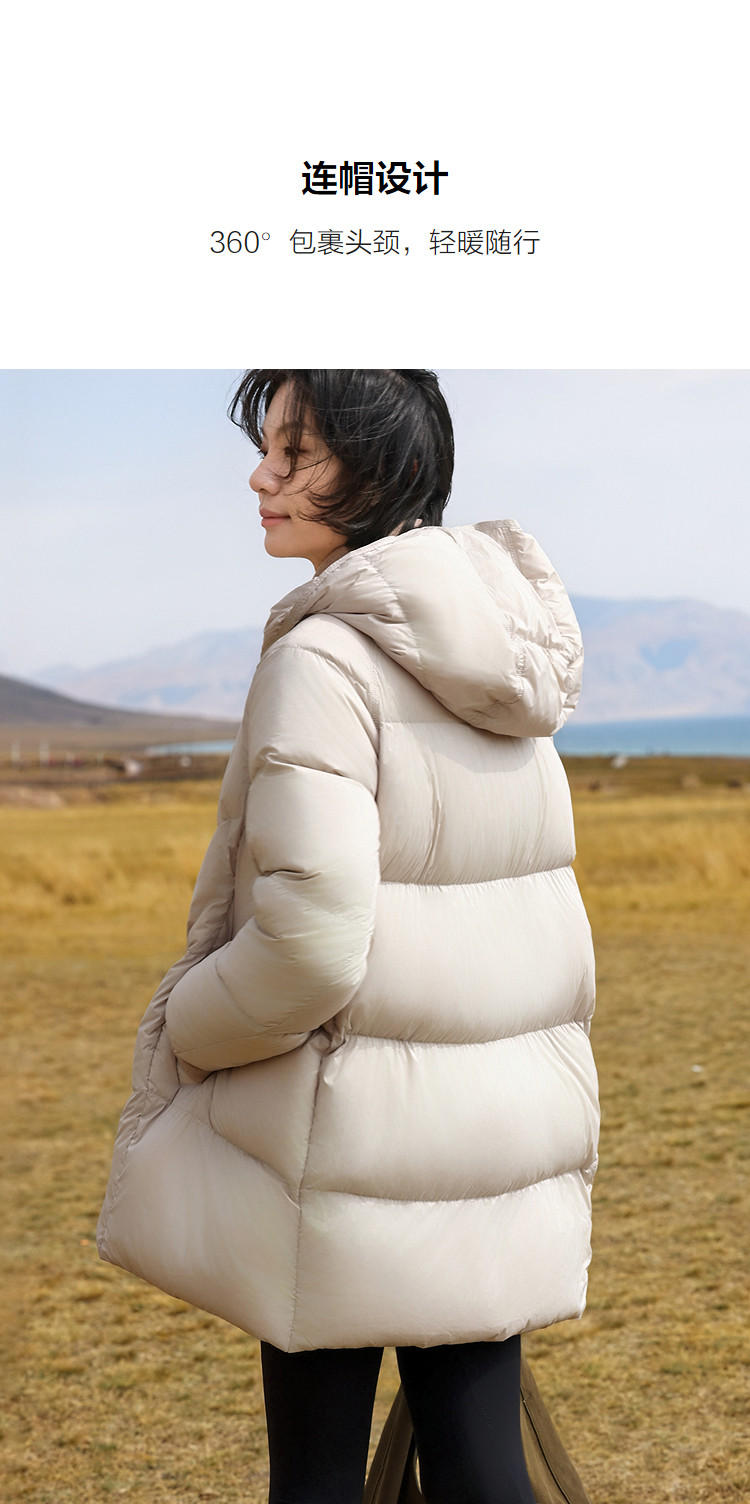 【15D泡芙云】冬季零压感连帽扣袢中长款宽松面包服女式羽绒服