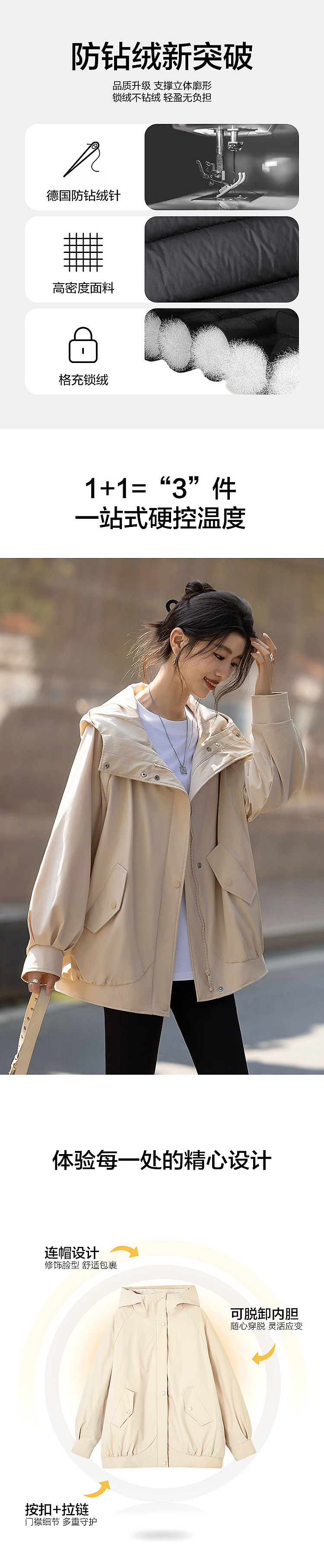 【可脱卸内胆双层绗绒三合一】冬季90鸭绒连帽小火炉女式羽绒服