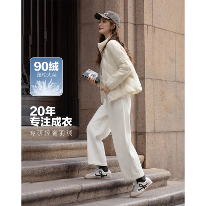 填充物: 鸭绒 绒子含量: 90% 面料: 涤纶/聚酯纤维 详细材质信息: 面料:100%聚酯纤维 里料:100%聚酯纤维 填充物(含领):鸭绒 绒子含量:90% 充绒量:S:69g M:75g L:81g XL:87g XXL:93g 尺码详细充绒量: 70g-80g 充绒量区间: 0-150g 衣长: 短 袖长: 长袖 查看更多商品展示IMAGE