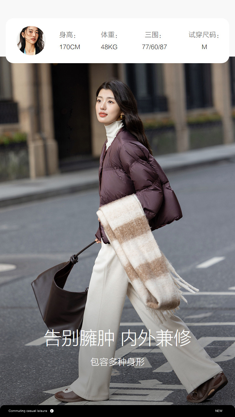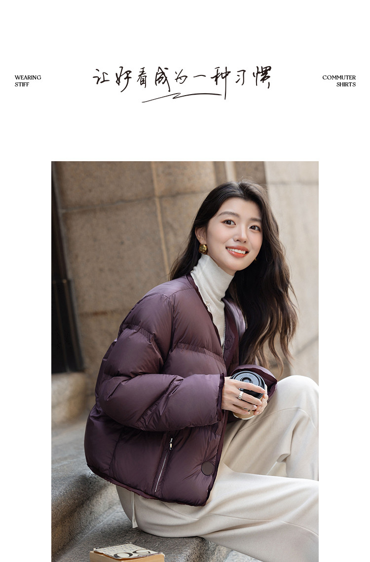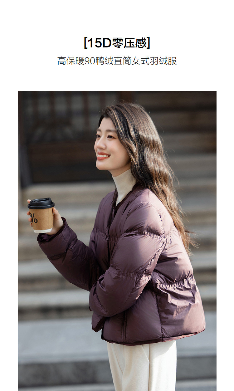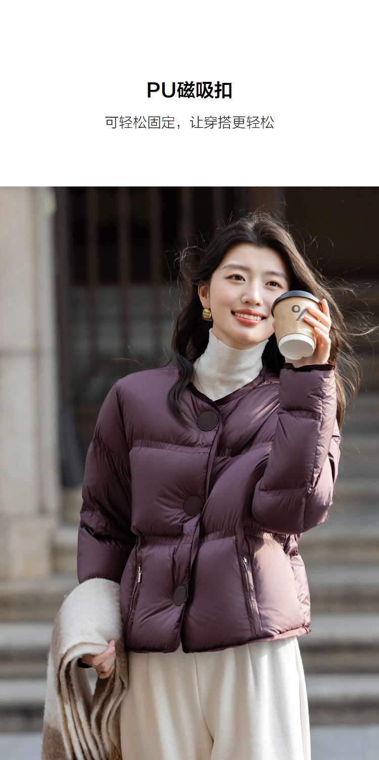 【15D零压感】冬季90鸭绒PU磁吸扣三层工艺直筒女式羽绒服