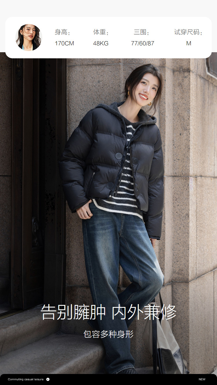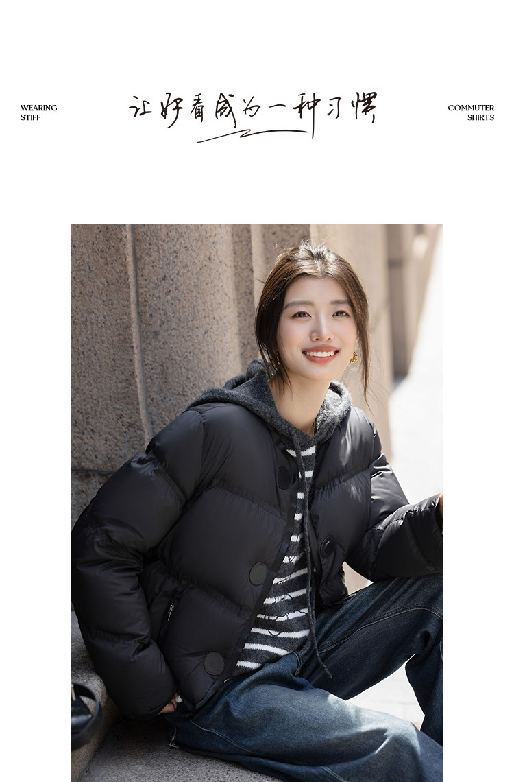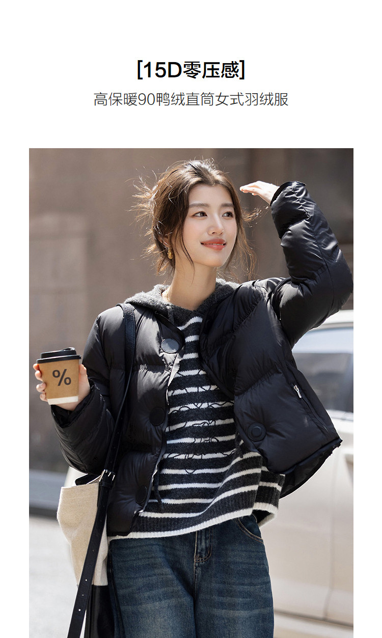 【15D零压感】冬季90鸭绒PU磁吸扣三层工艺直筒女式羽绒服