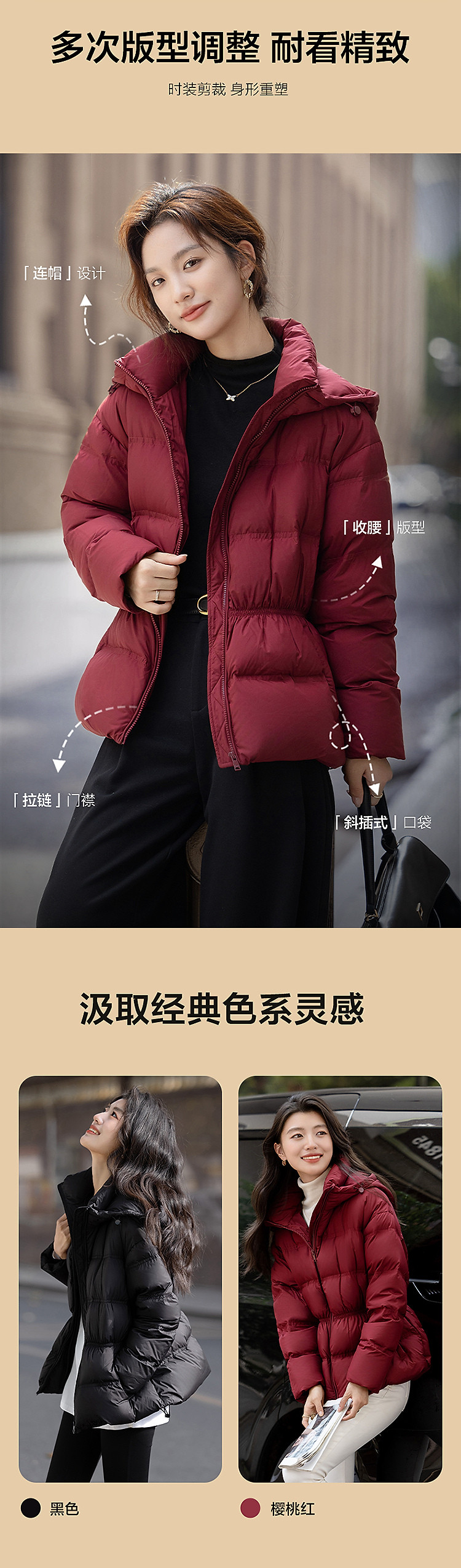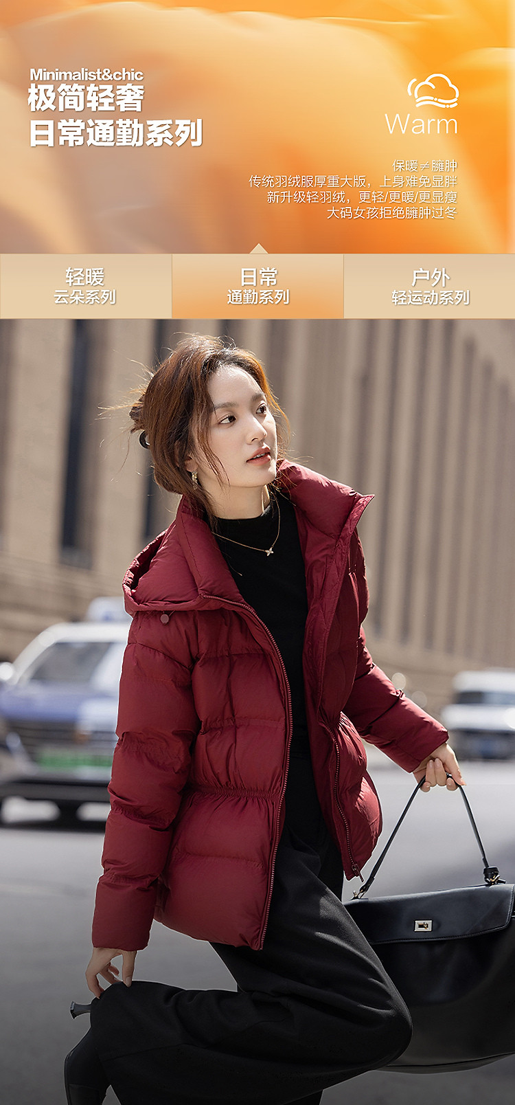 【暖“芯”双旦】冬季气凝胶蓄热90鸭绒连帽松紧收腰女式羽绒服
