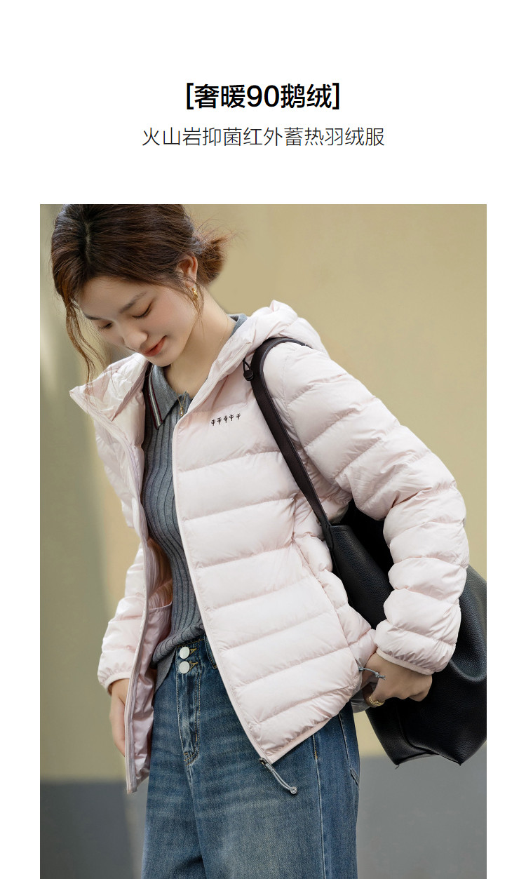 【30D气疑胶】冬季90鹅绒火山岩抑菌红外蓄热连帽印花羽绒服