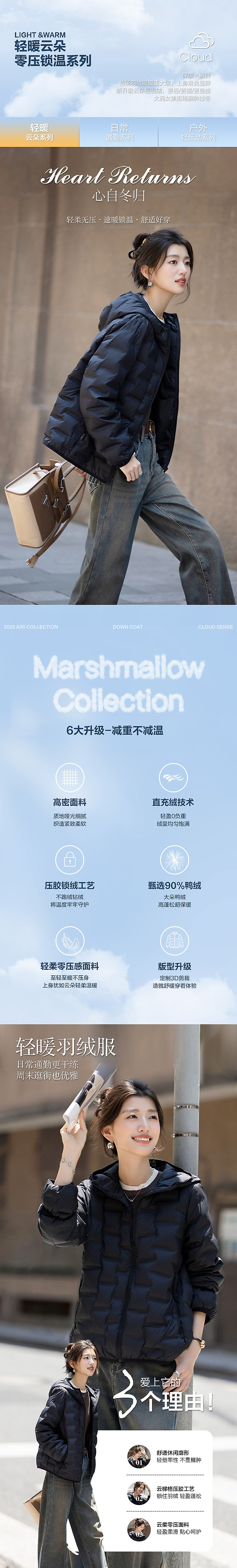 【奶球初雪】冬季高暖90鸭绒云梯格压胶直充织带包边女式羽绒服