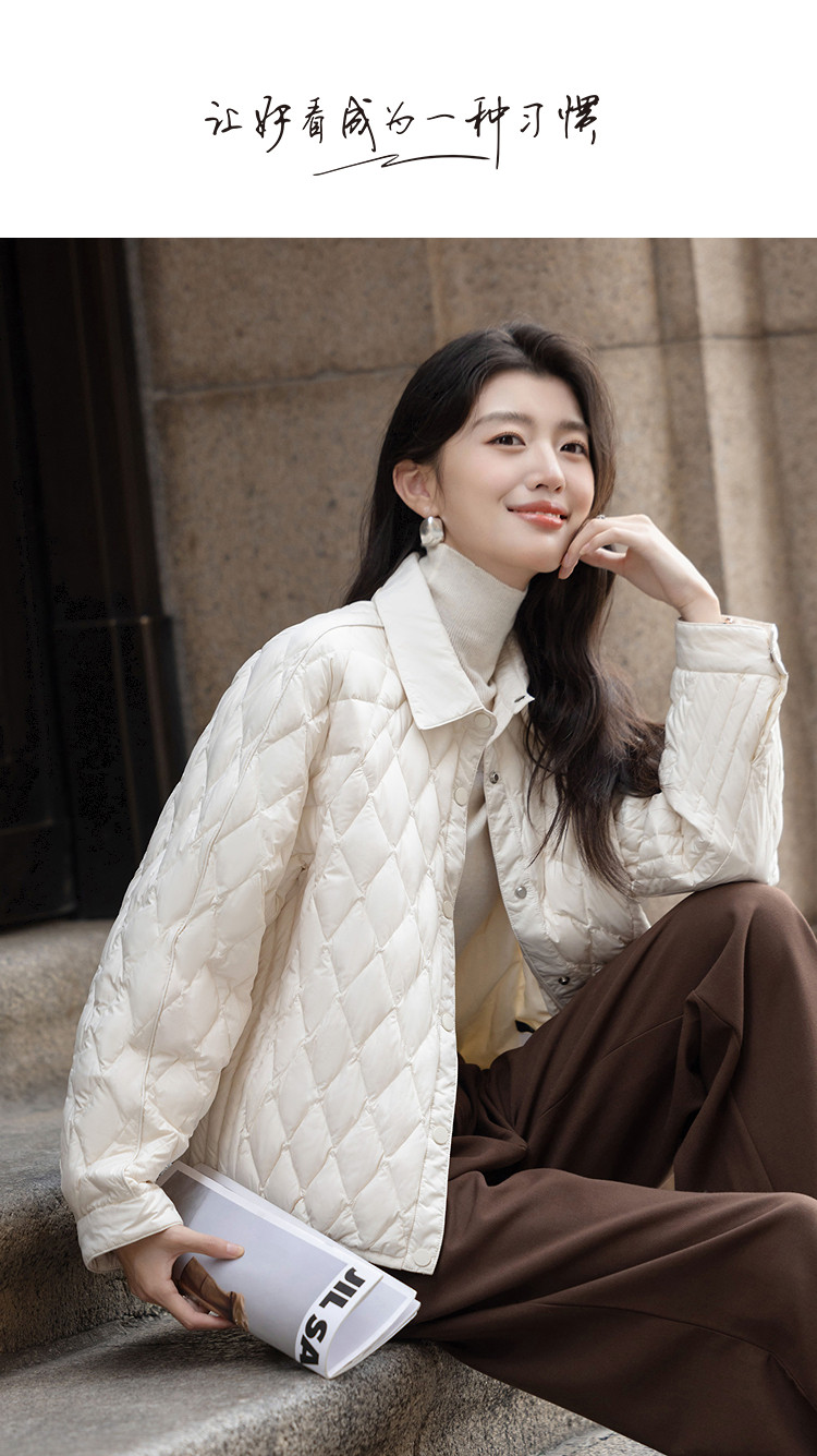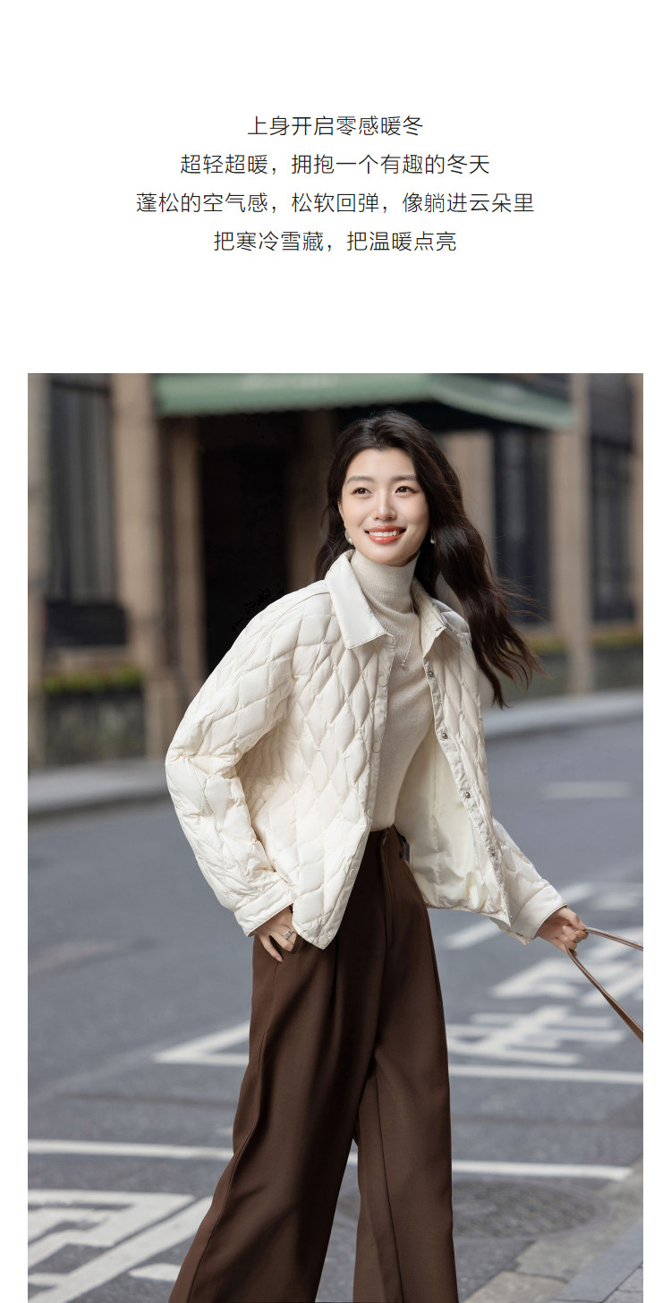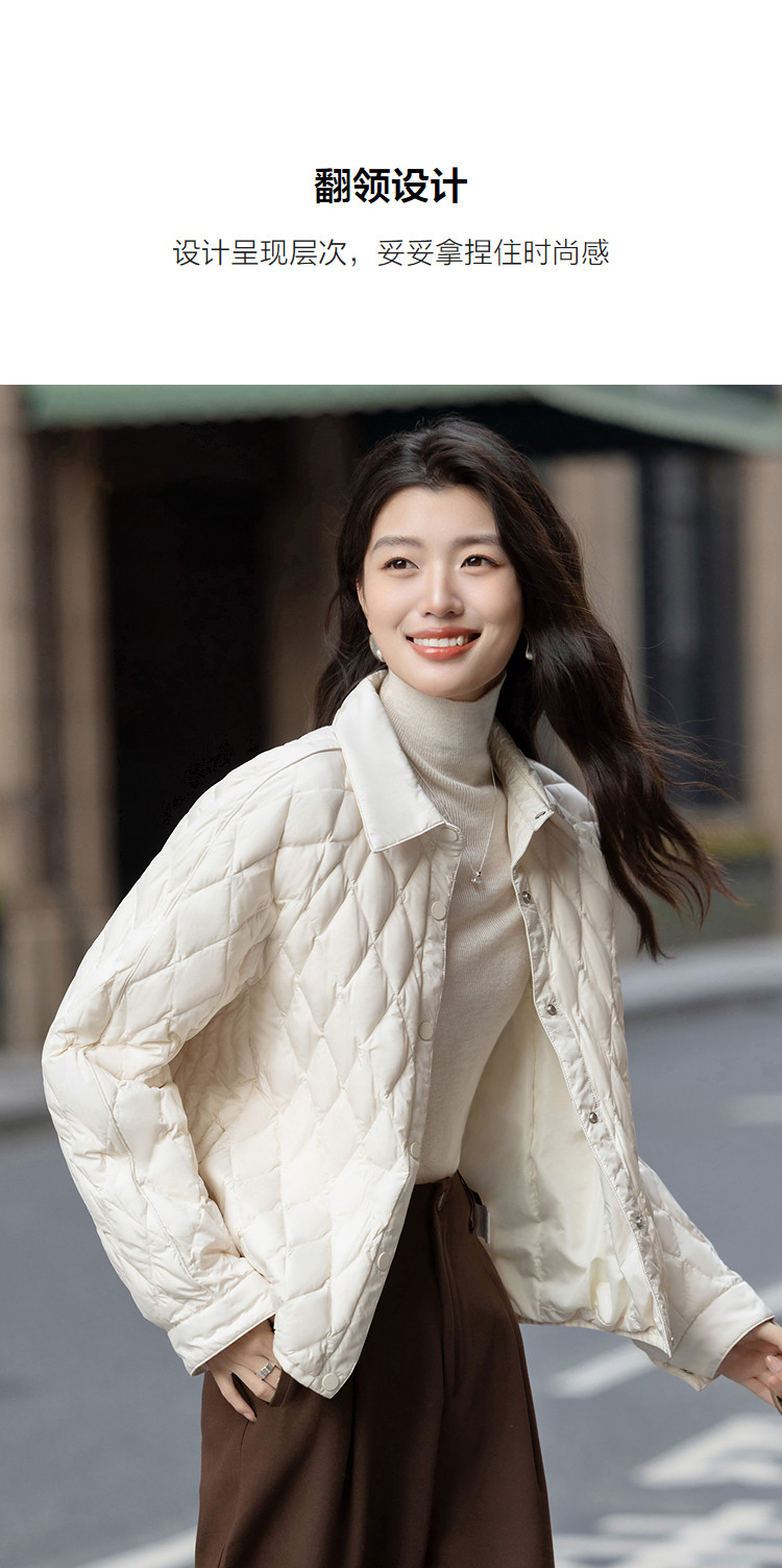 【暖冬小火炉】冬季轻奢90鸭绒翻领菱形格四层工艺女式羽绒服