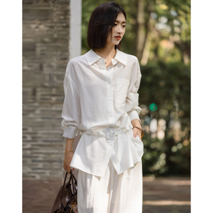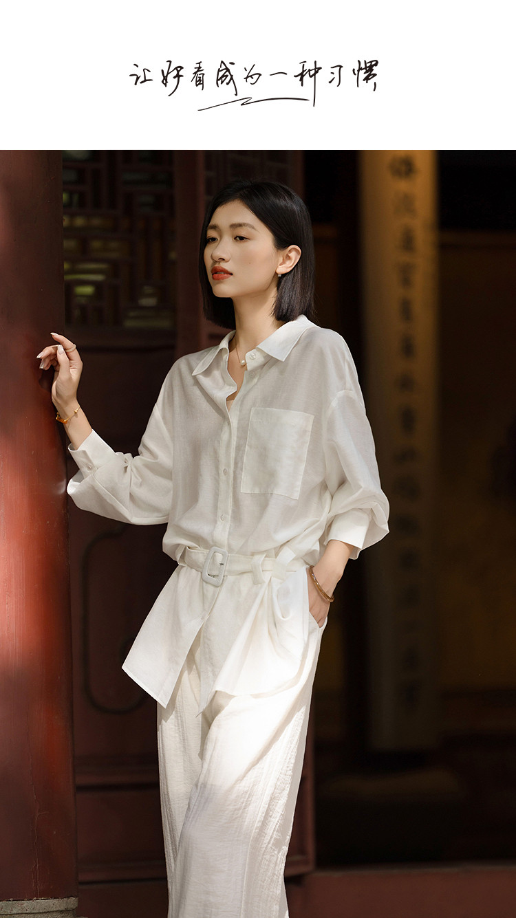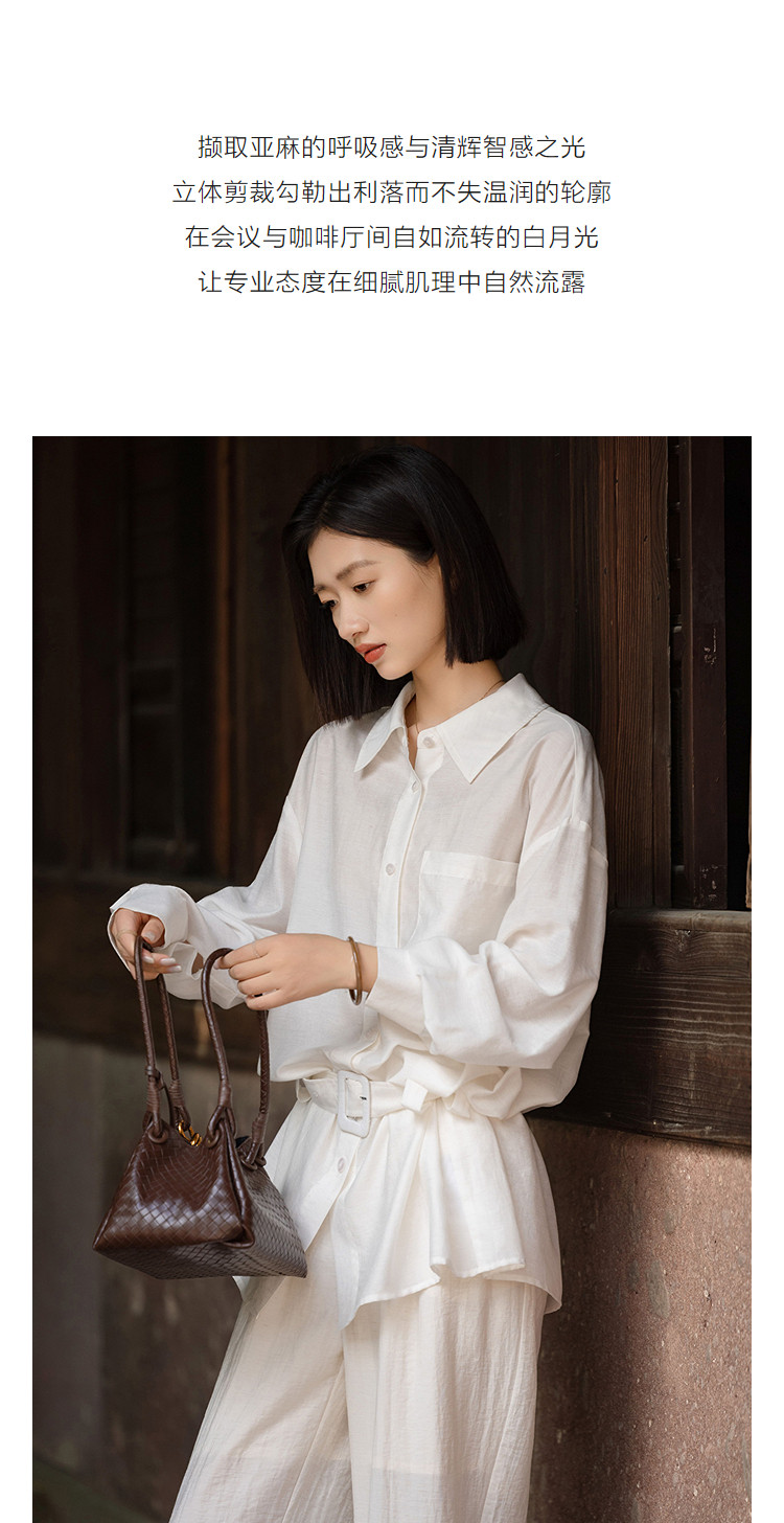 【含呼吸感亚麻】2026春清冷智感翻领外穿衬衣腰带可收腰女式衬衫