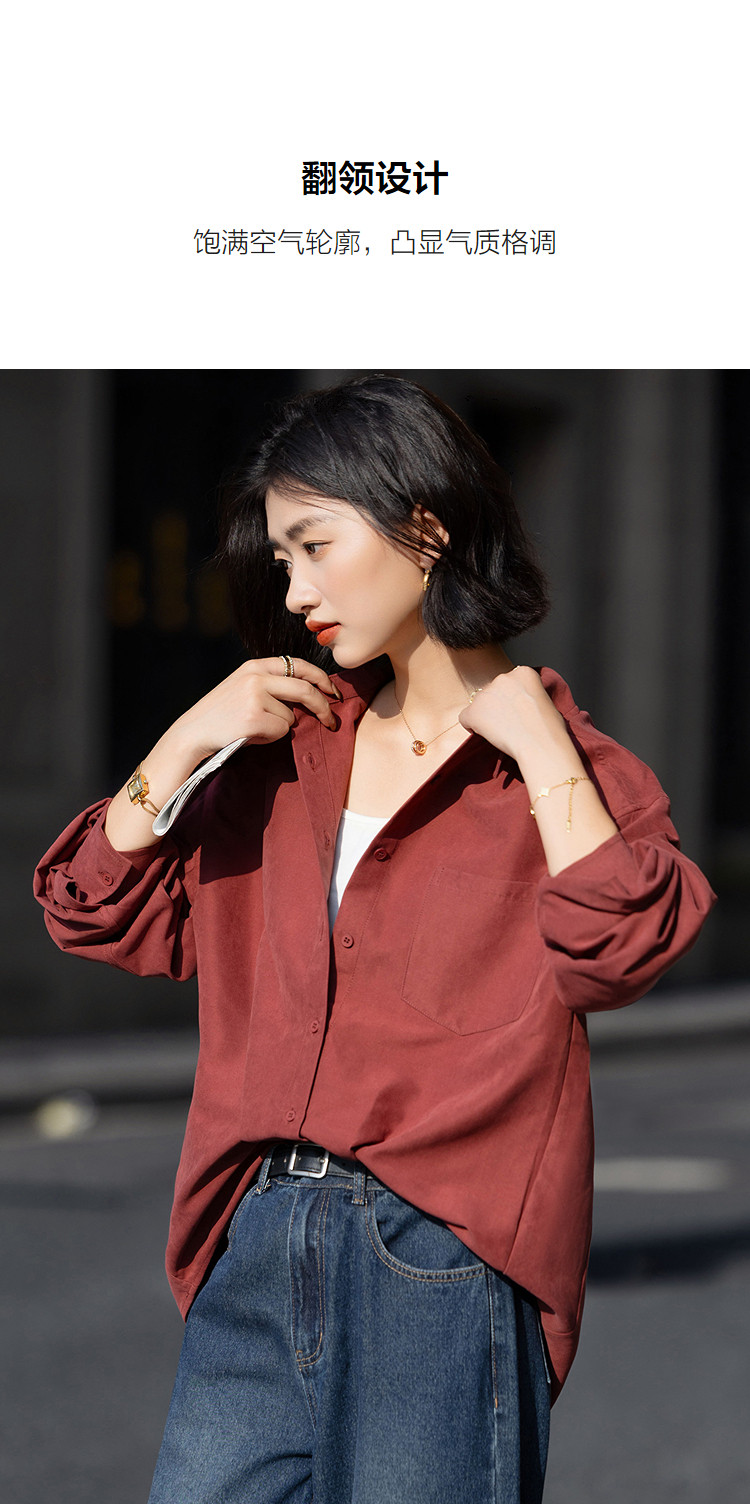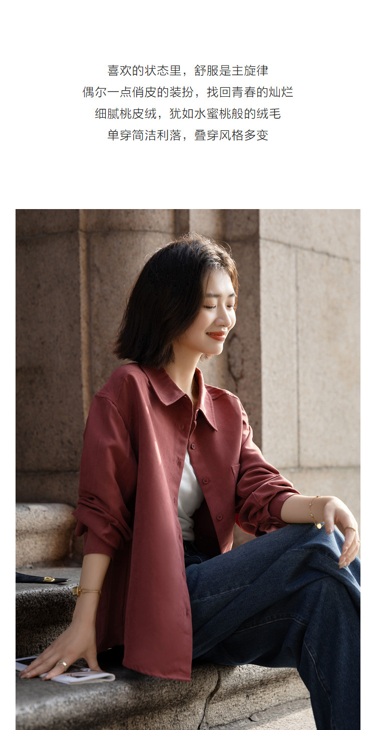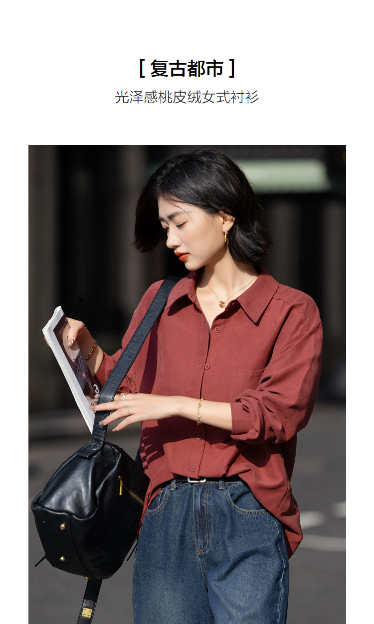 【光泽感桃皮绒】秋季复古都市翻领单排扣衬衫宽松气质衬衣女上衣