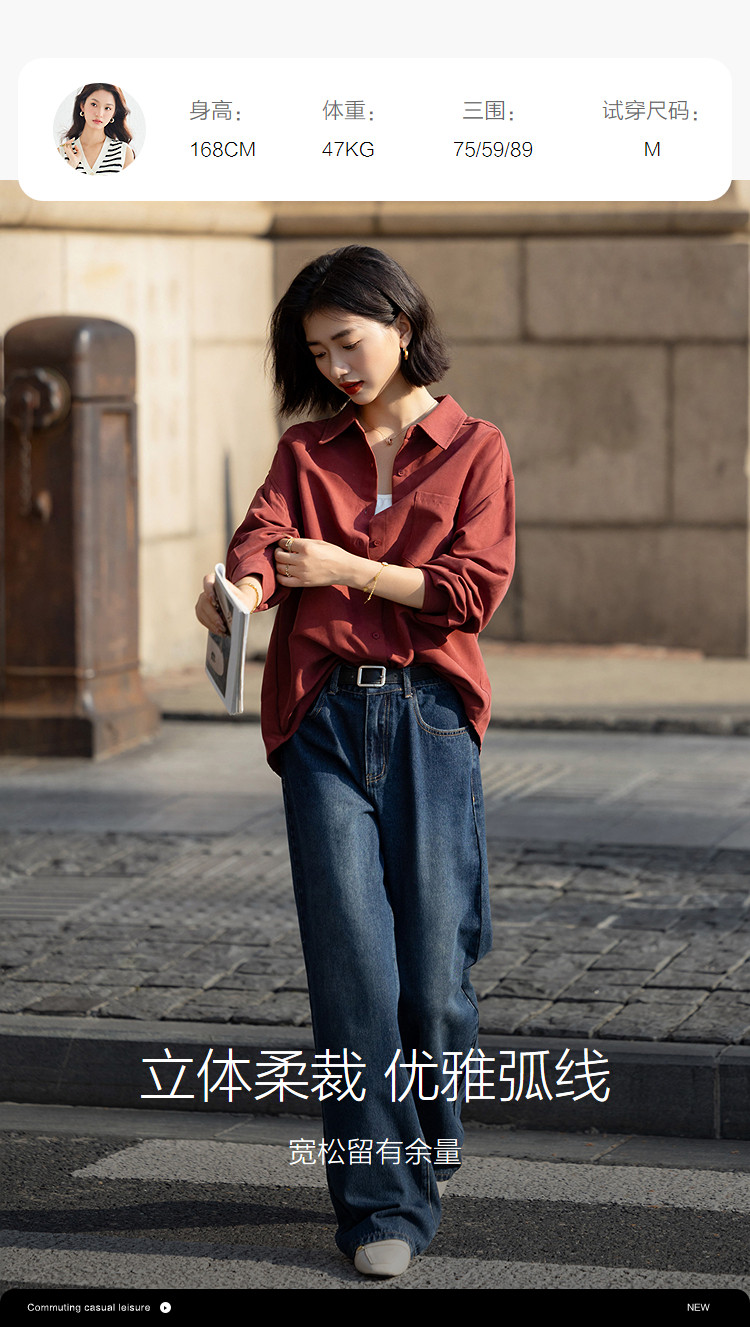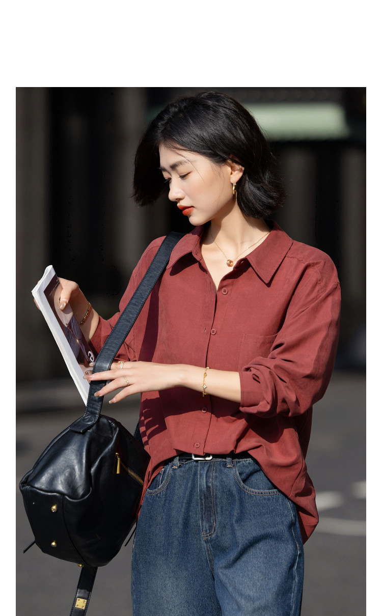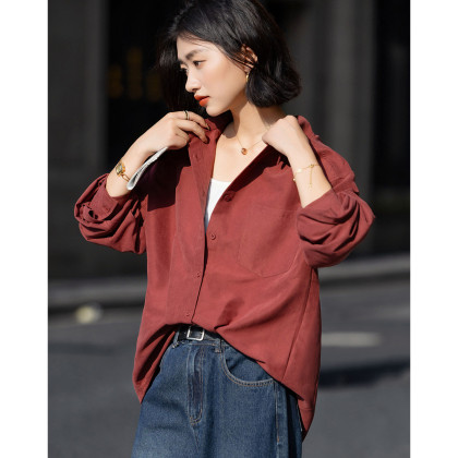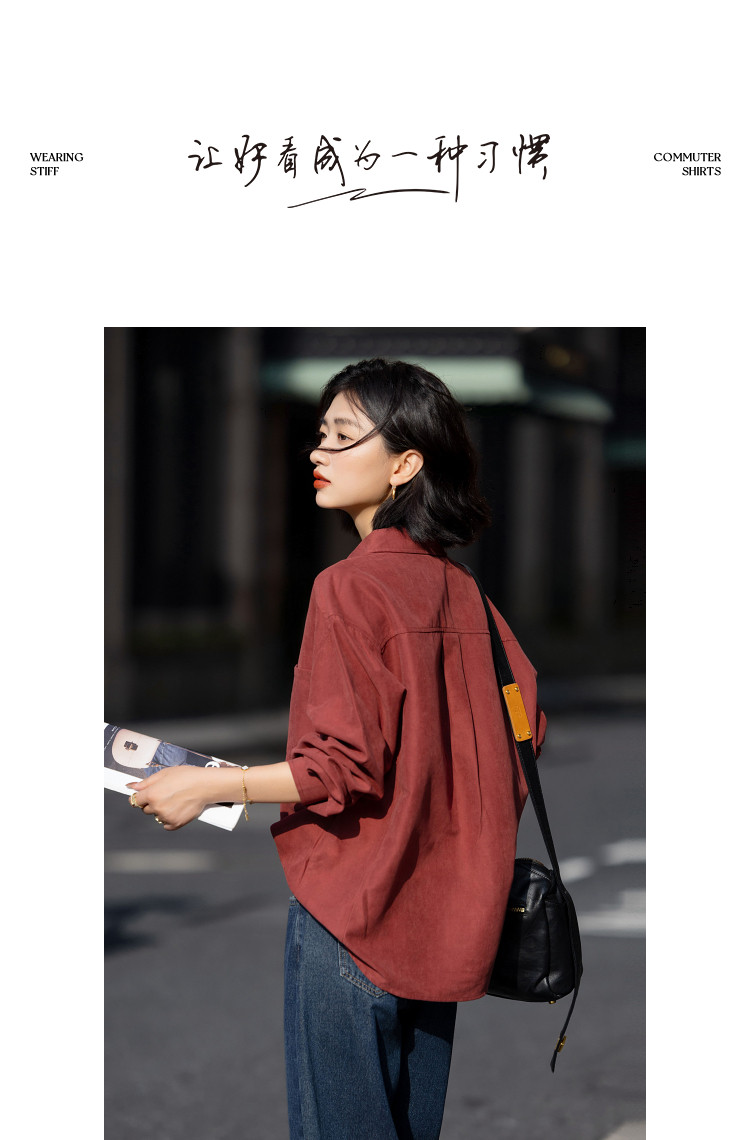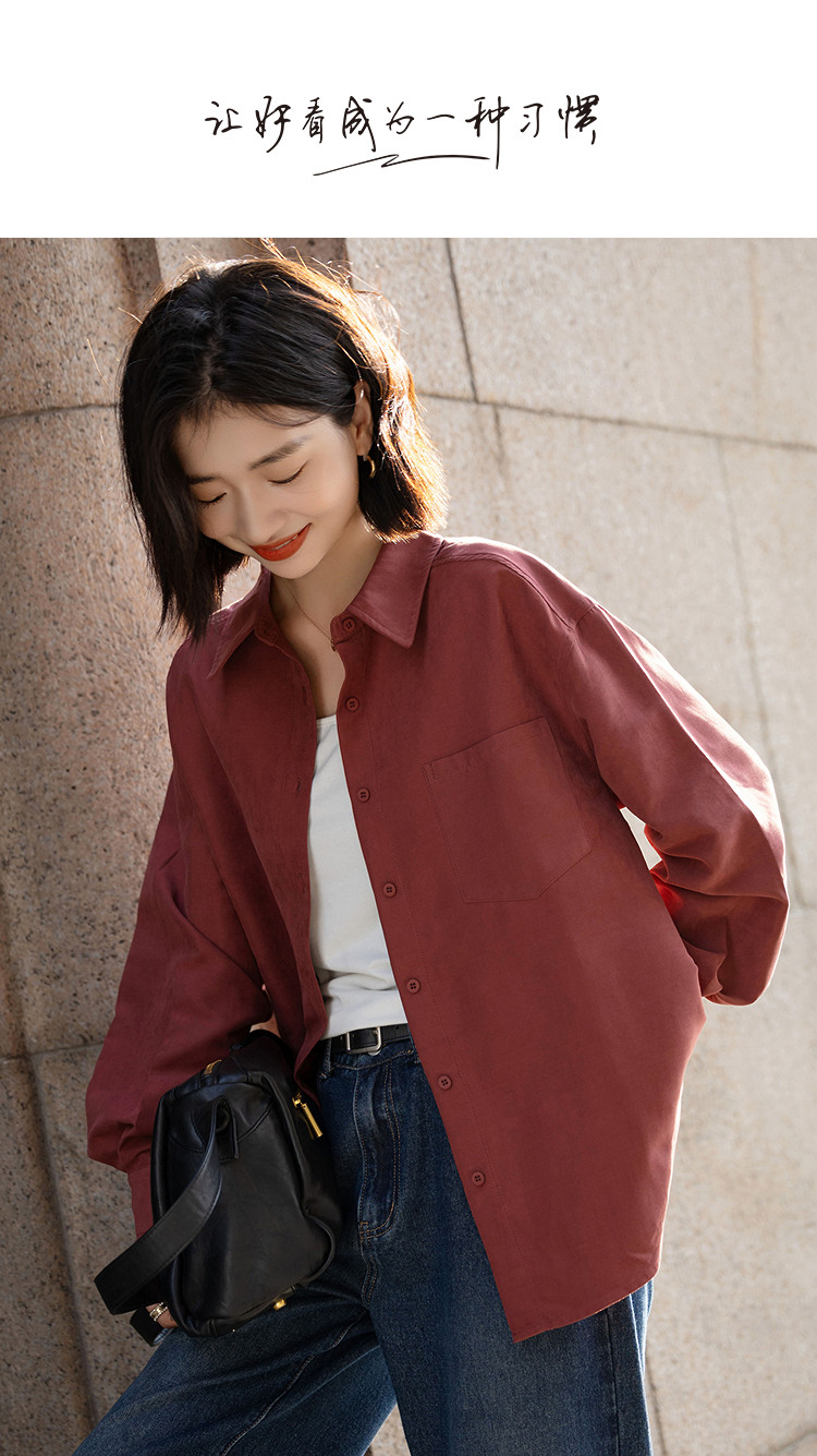 【光泽感桃皮绒】秋季复古都市翻领单排扣衬衫宽松气质衬衣女上衣