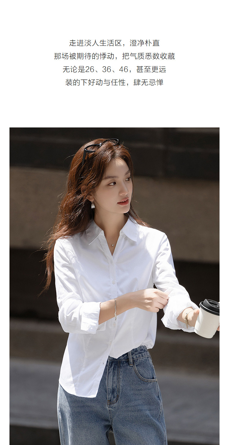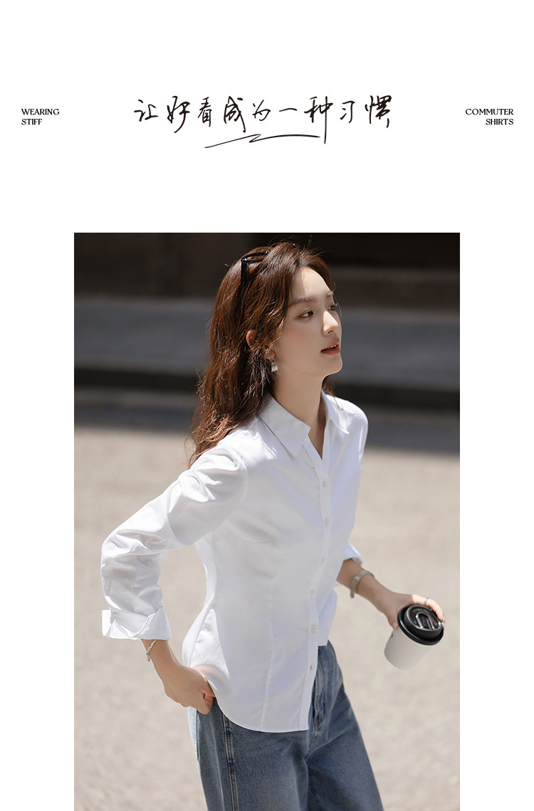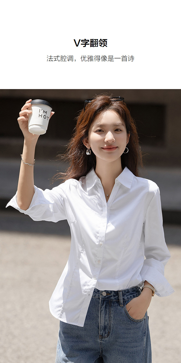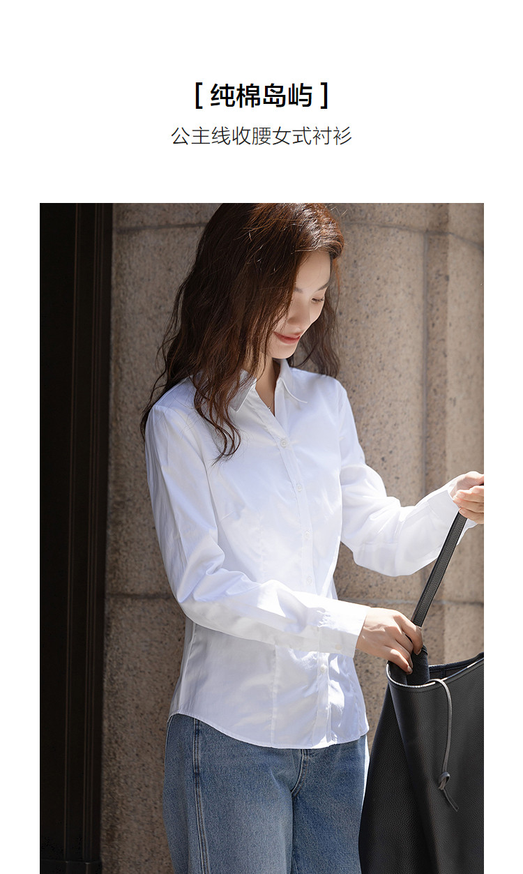 【纯棉岛屿】秋季气质通勤V字翻领衬衫公主线收腰长袖衬衣女上衣