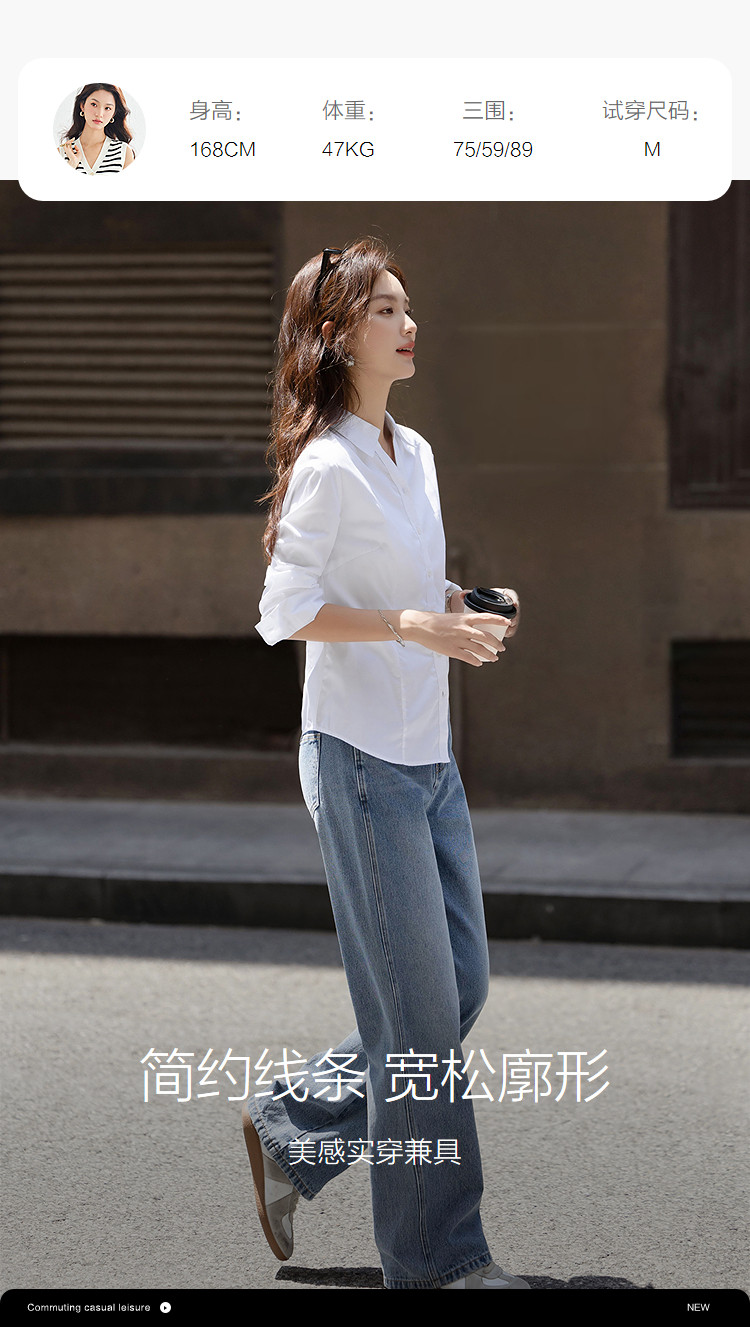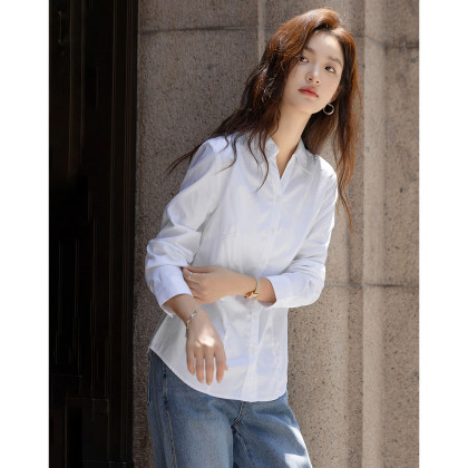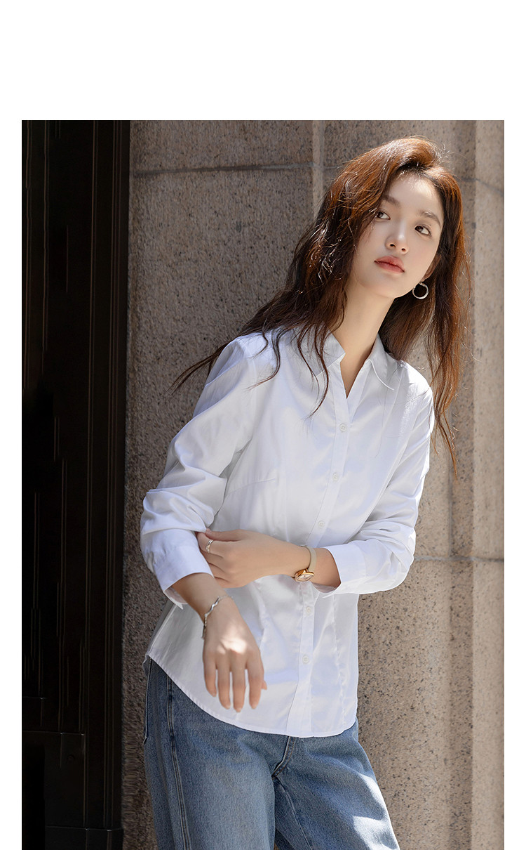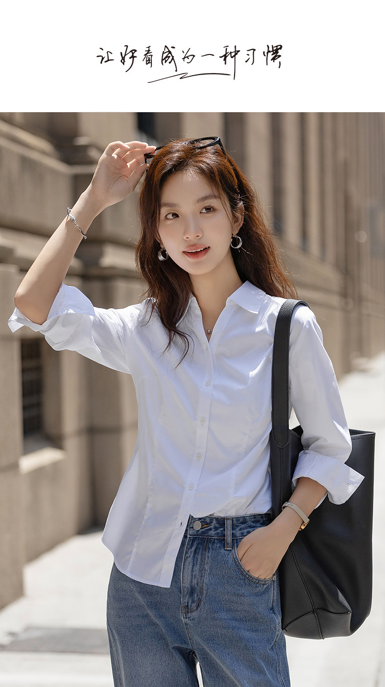 【纯棉岛屿】秋季气质通勤V字翻领衬衫公主线收腰长袖衬衣女上衣