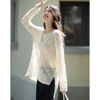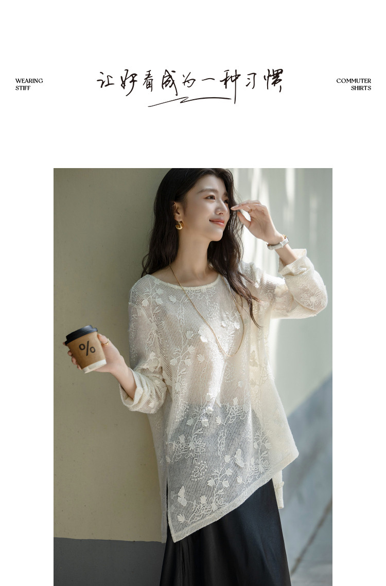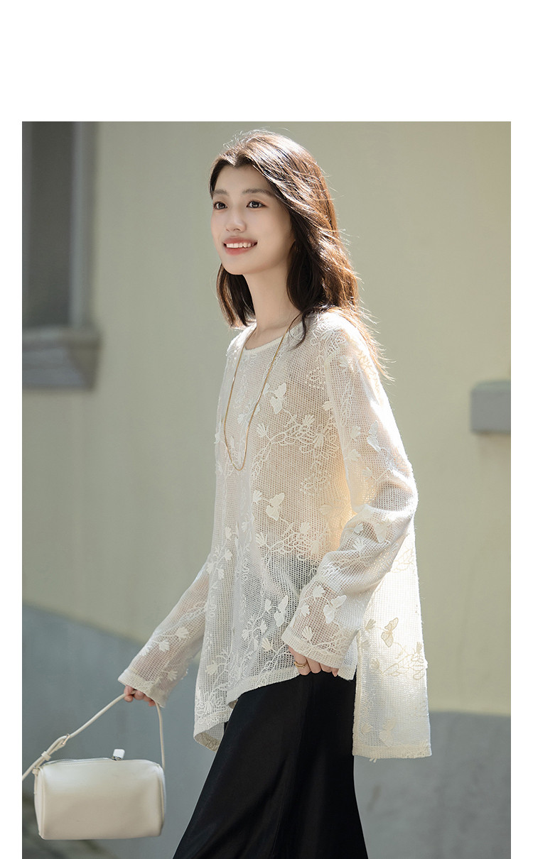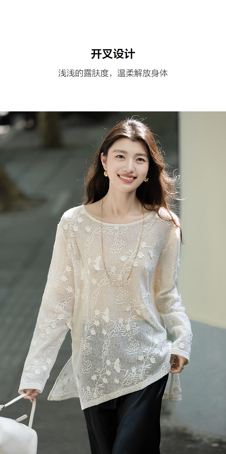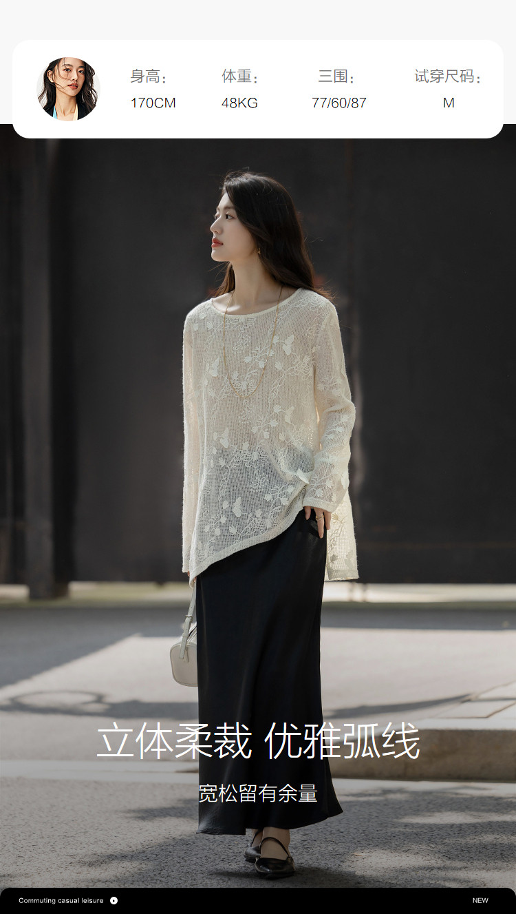 【交织的温柔】秋季立体蝴蝶衬衫圆领侧边开叉不对称衬衣女装上衣