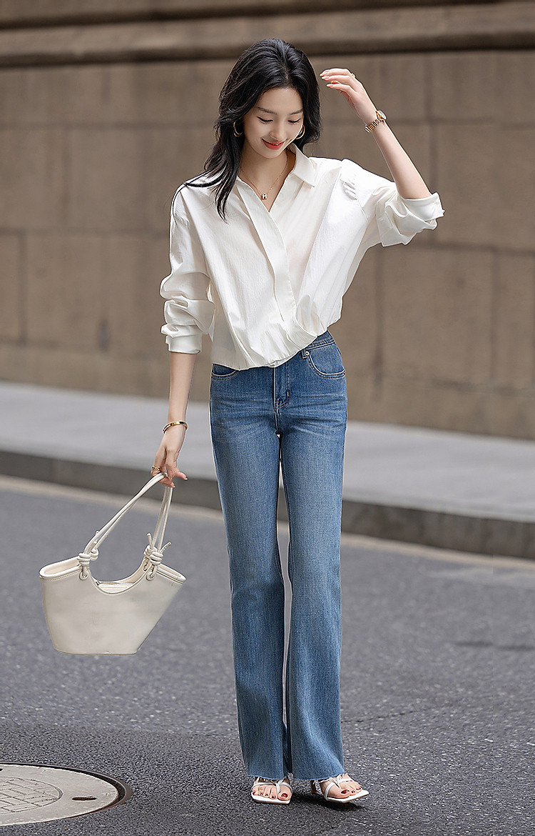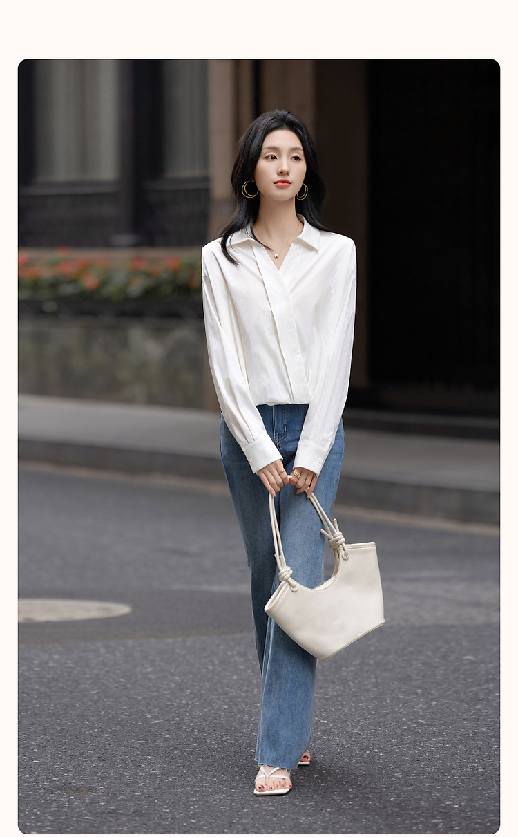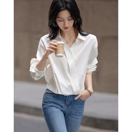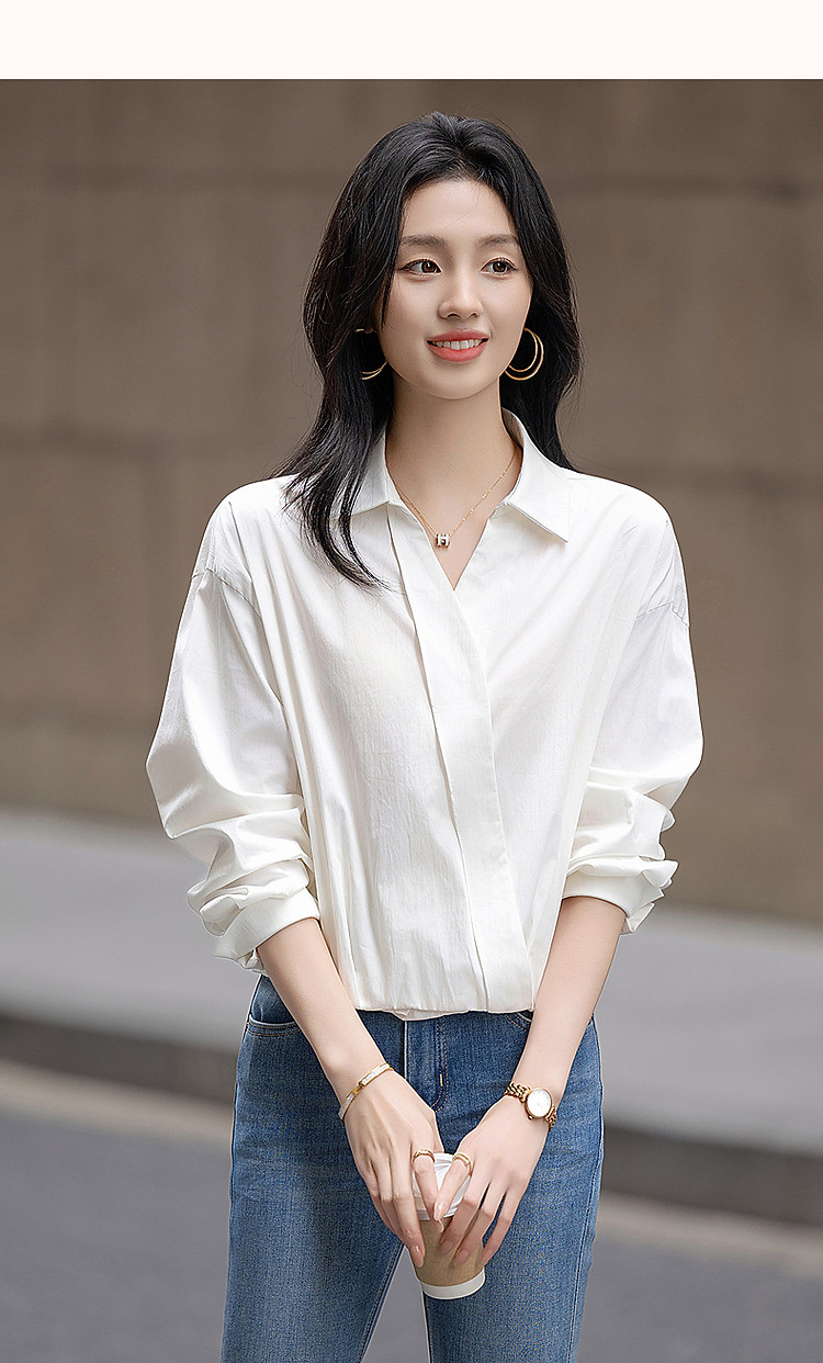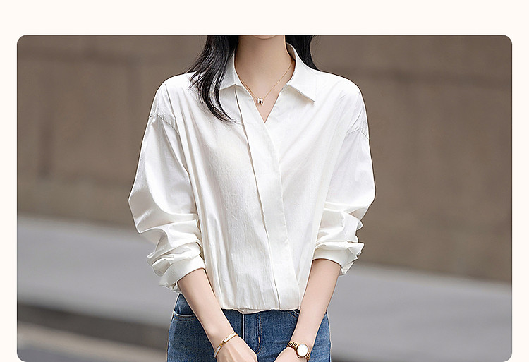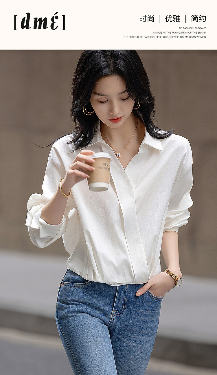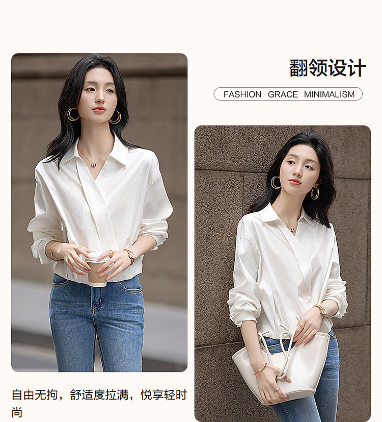 【叠搭不费力】春季气质翻领云朵棉衬衫松紧下摆遮肉衬衣女装上衣