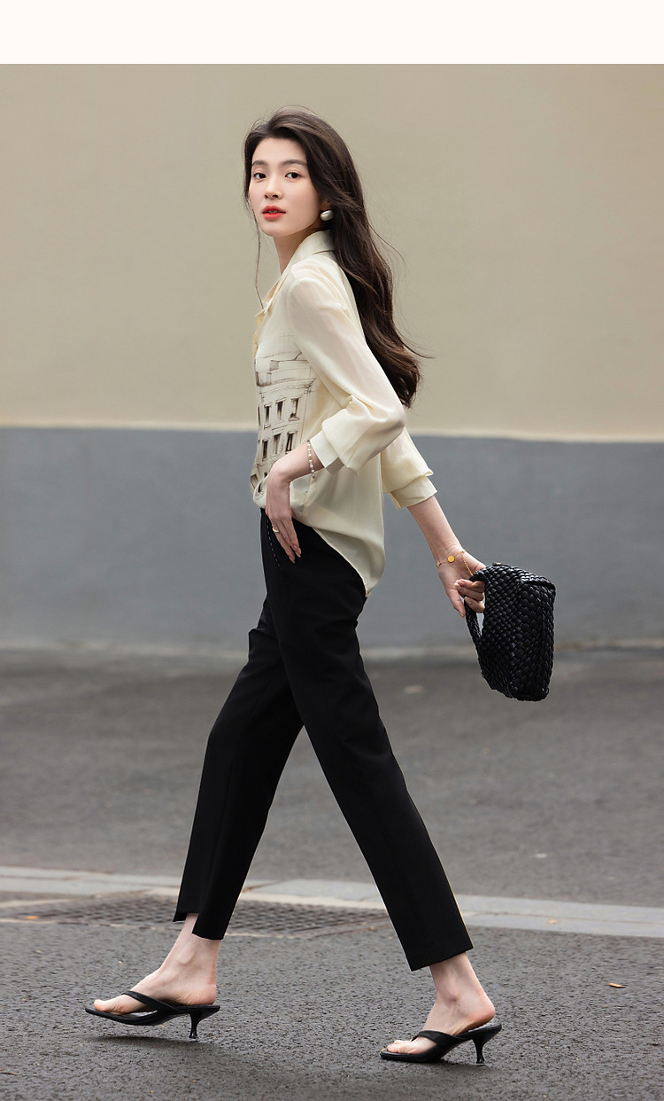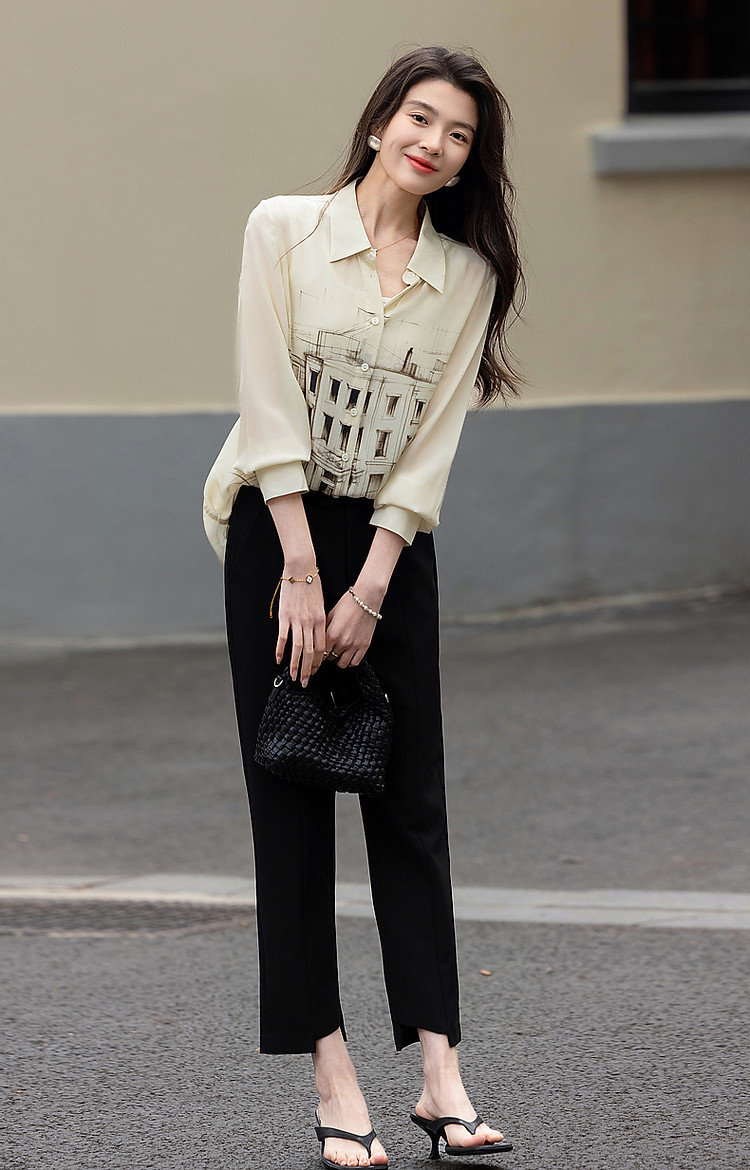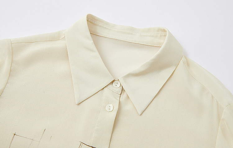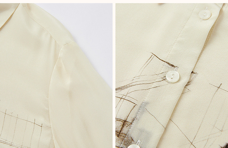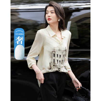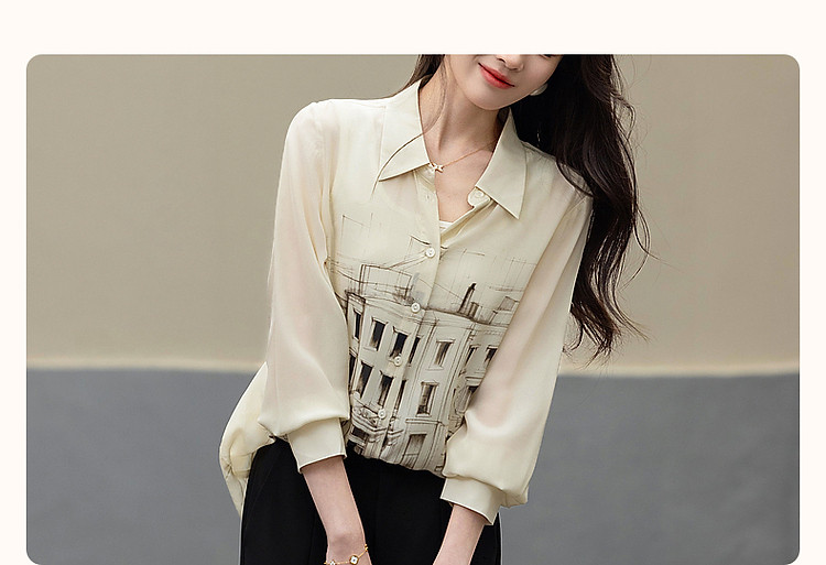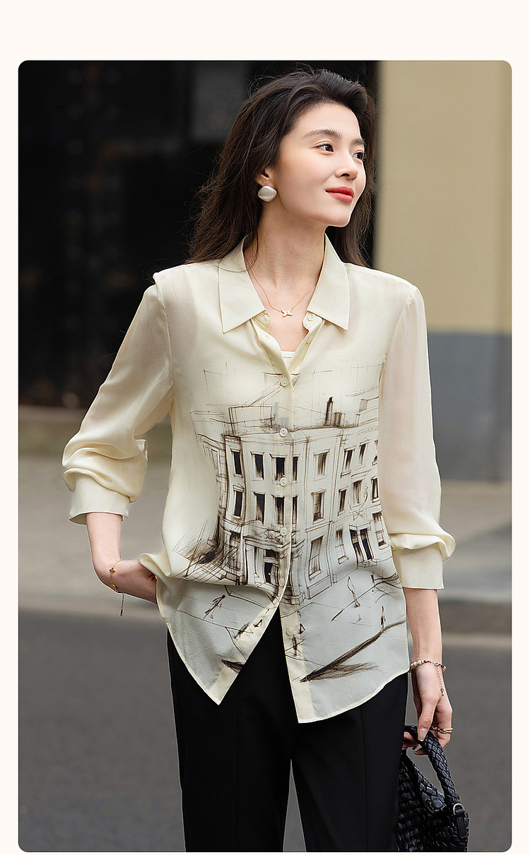【穿真丝的女人】春秋宛若无物100桑蚕丝翻领建筑印花女式衬衫