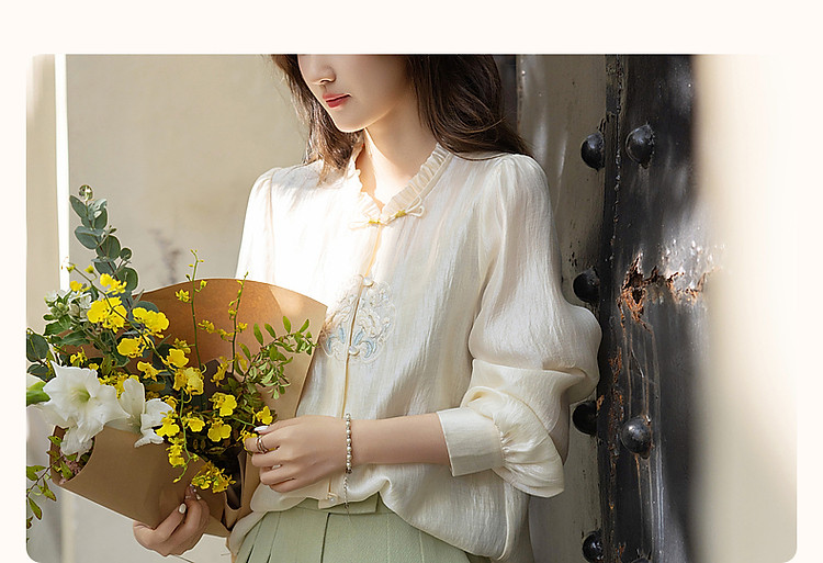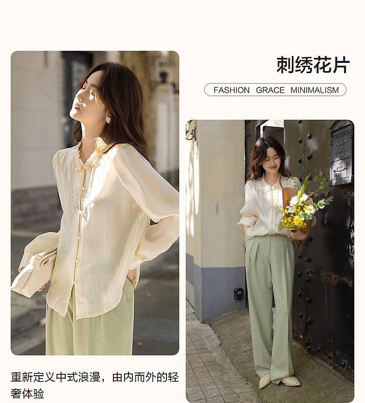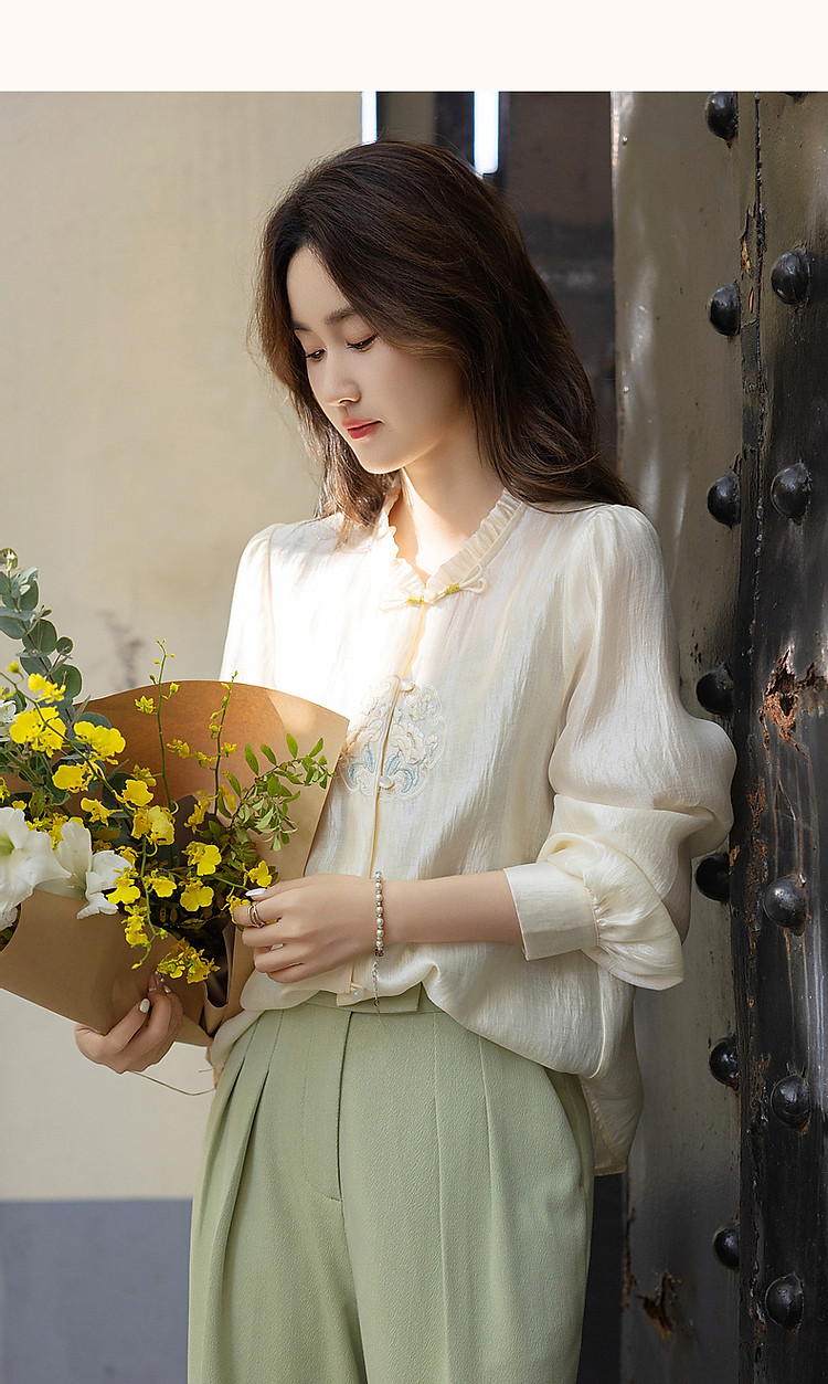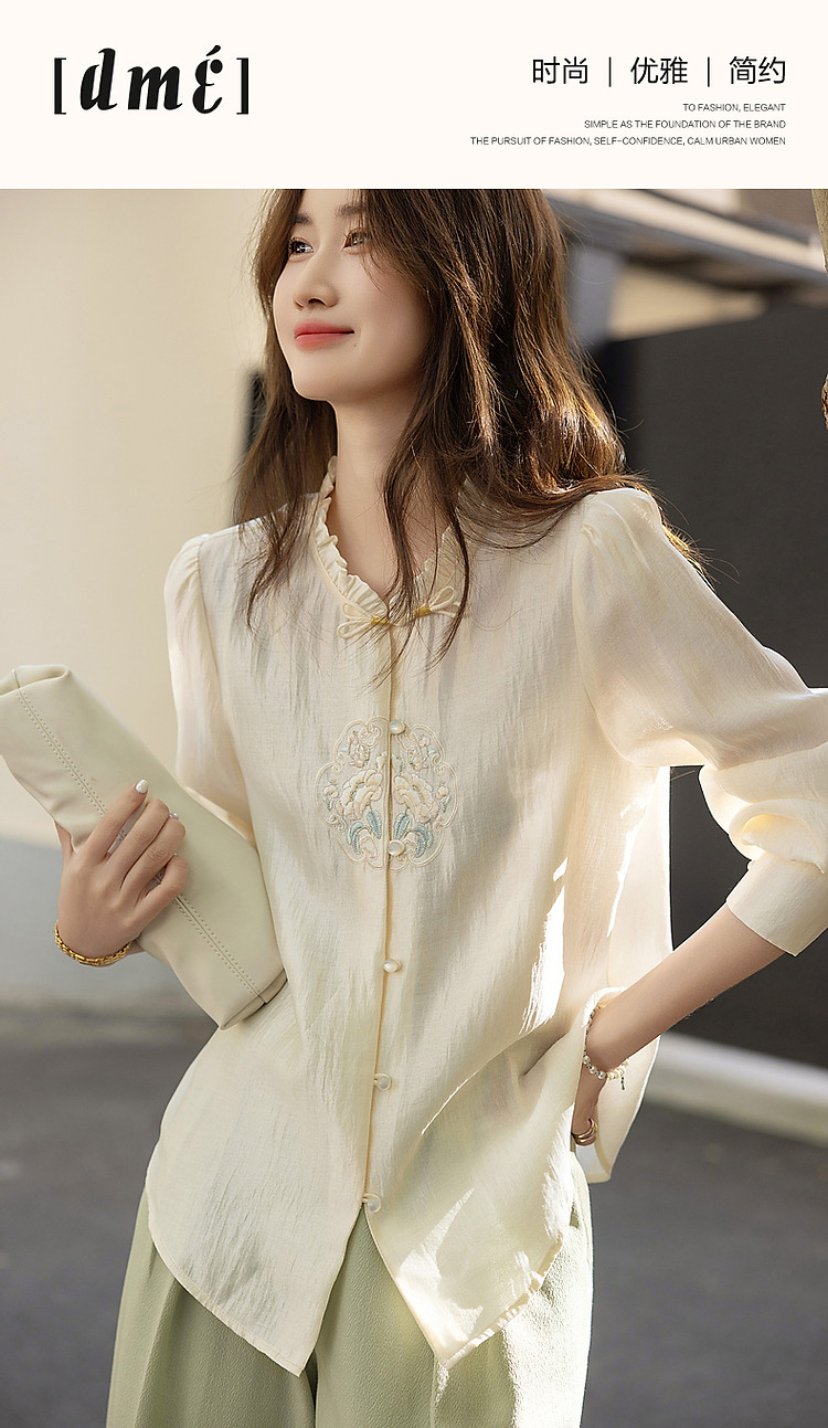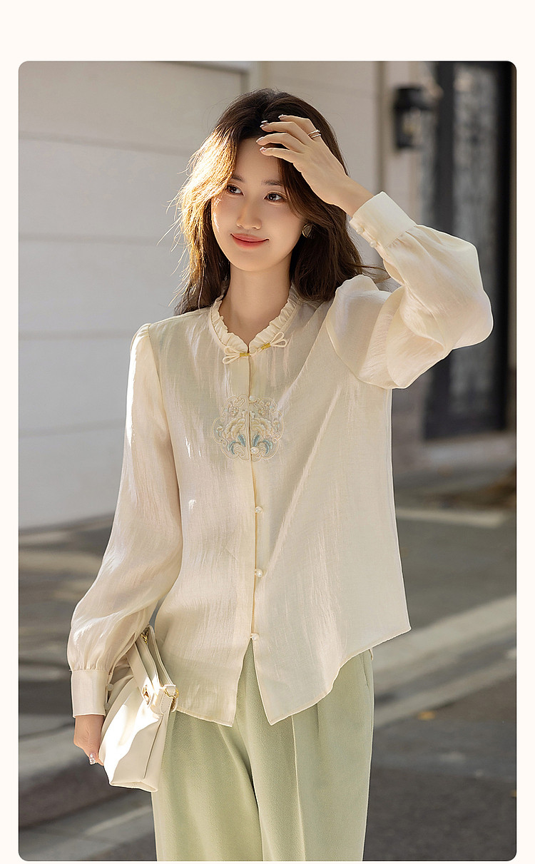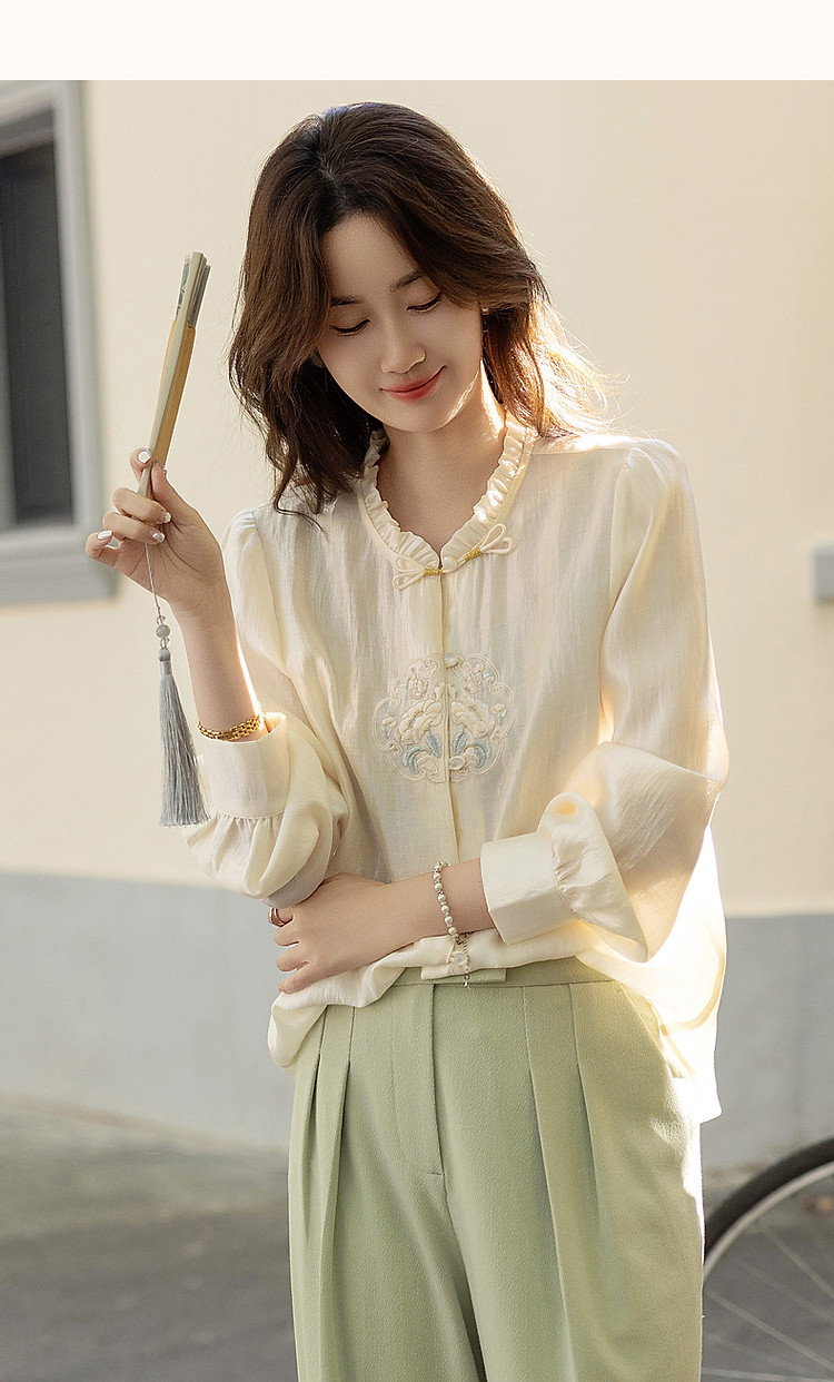 【观风月舒】春秋国风新中式莱赛尔衬衫刺绣花片盘扣衬衣女装上衣