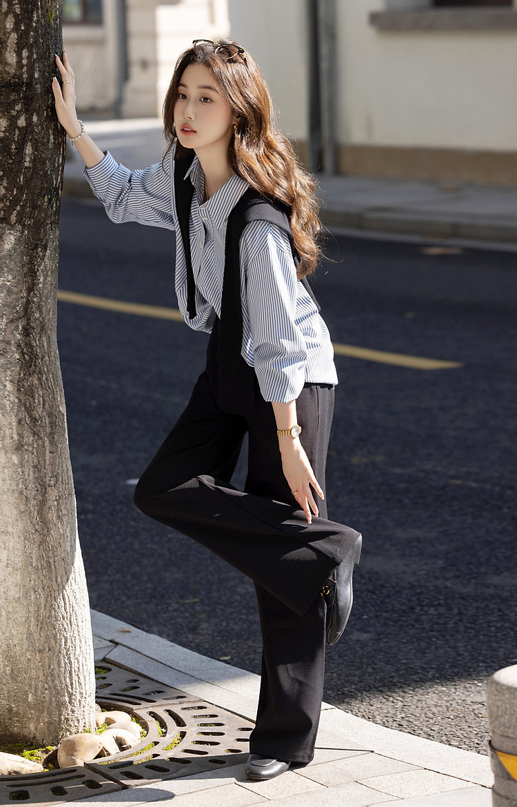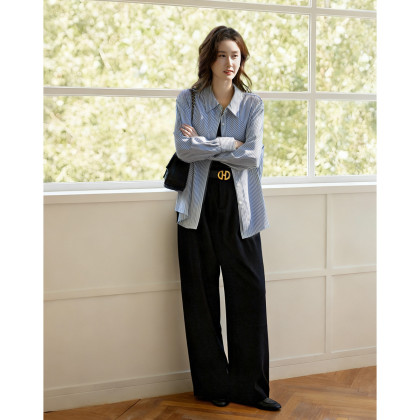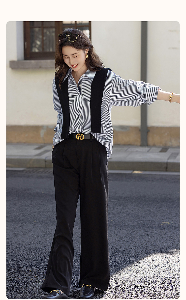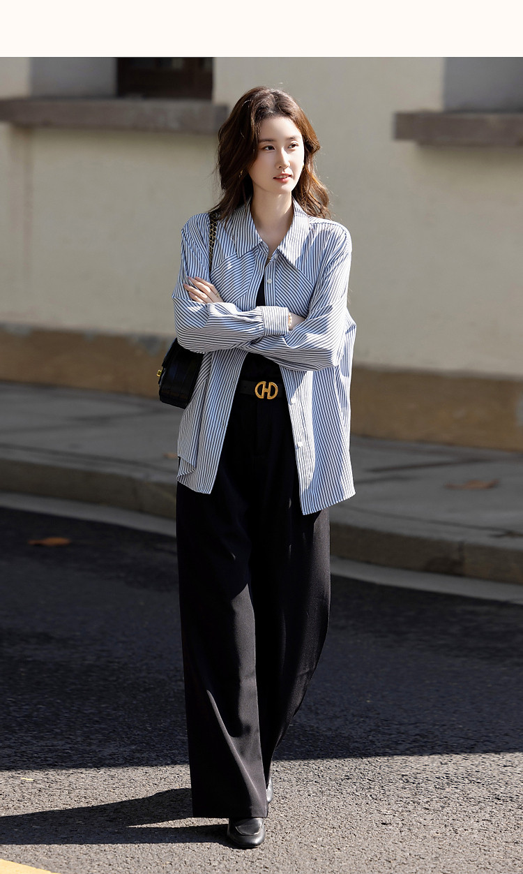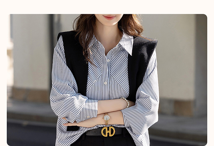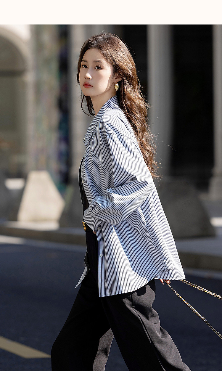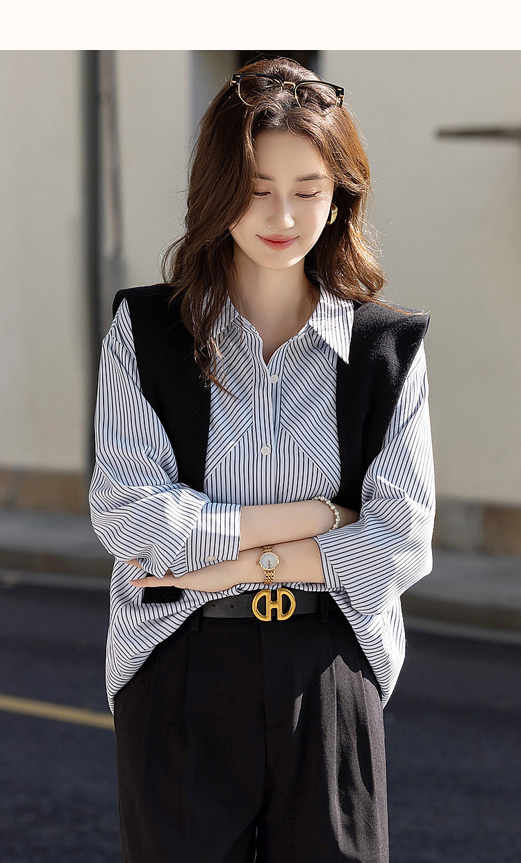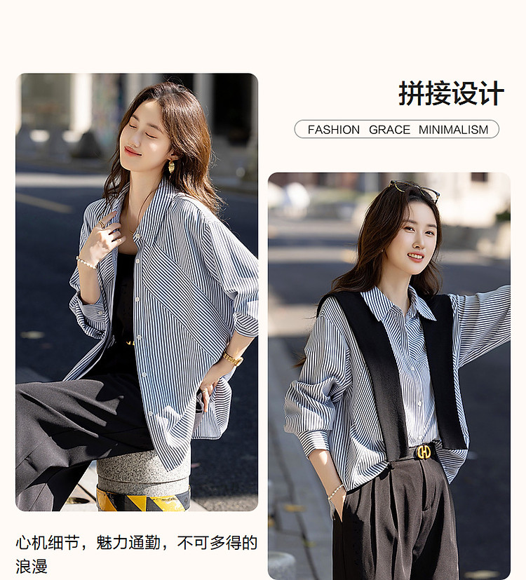 【有迹可循】春秋中性风条纹拼接衬衫宽松藏肉通勤好搭衬衣女上衣