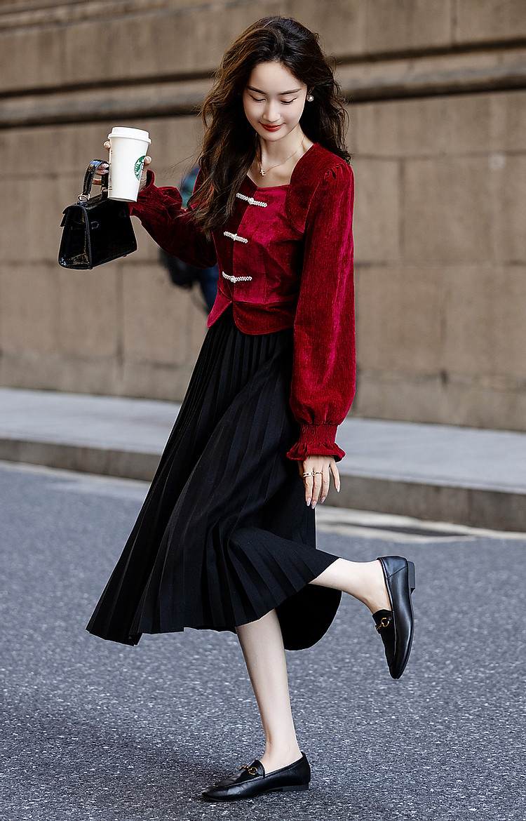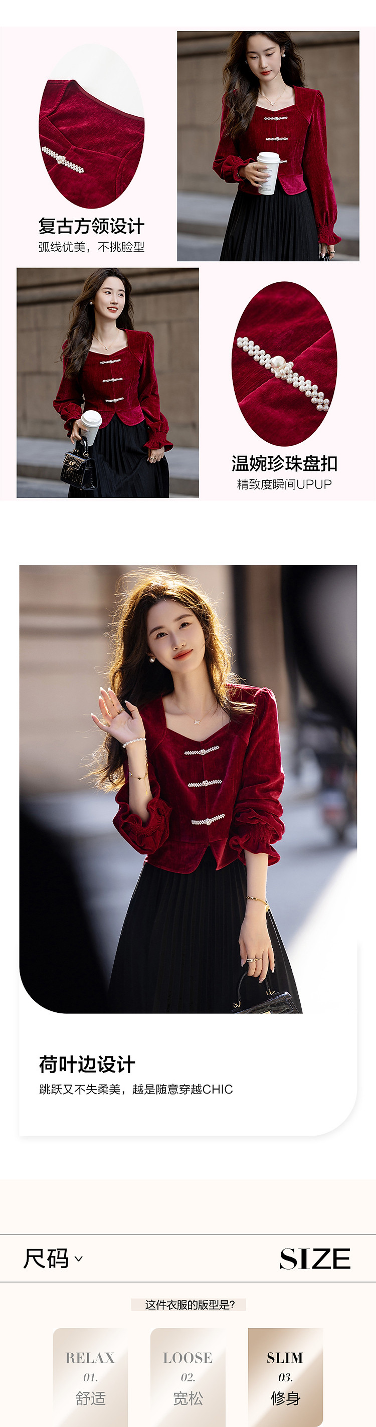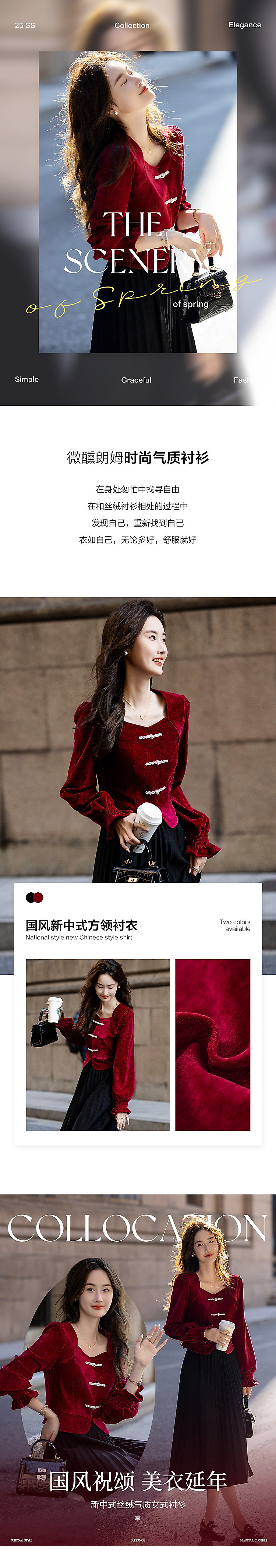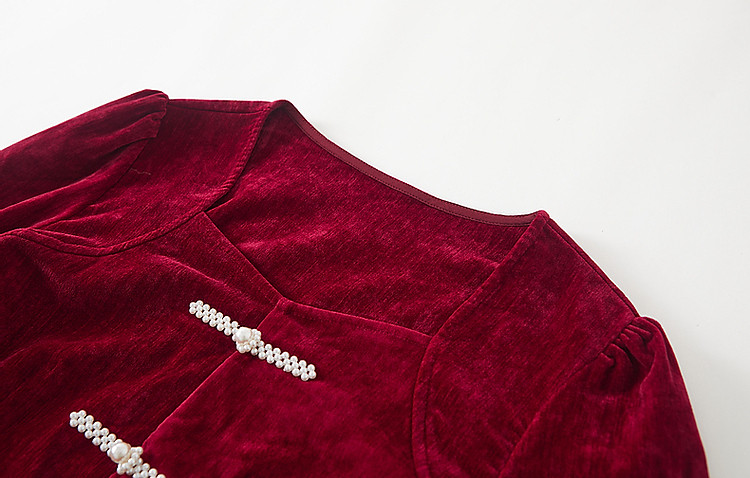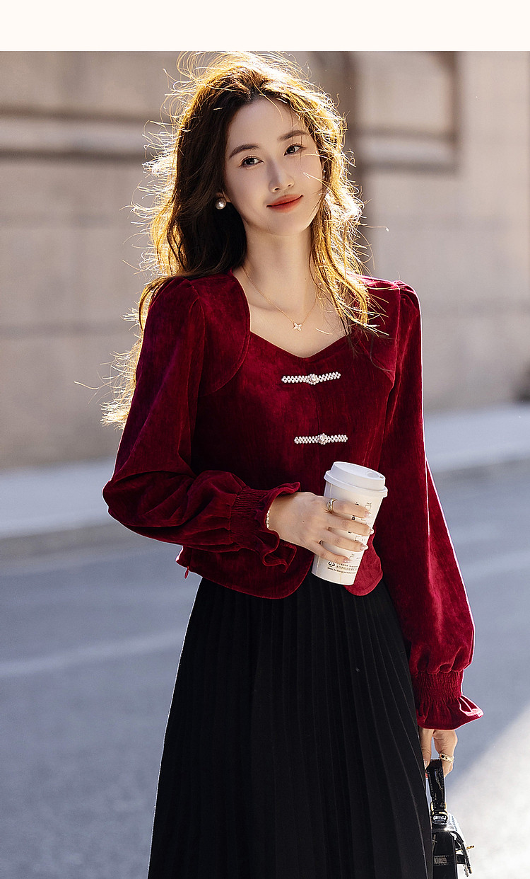 【霓裳迎双旦】秋冬国风新中式方领珍珠盘扣丝绒显瘦衬衫女高级感