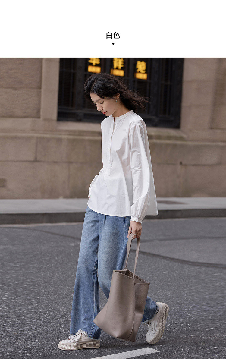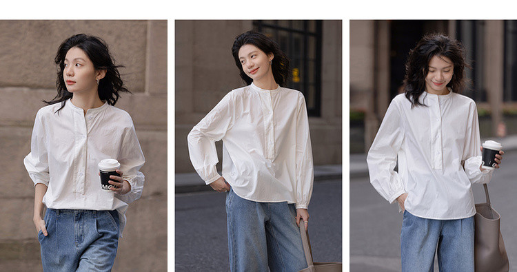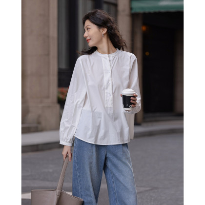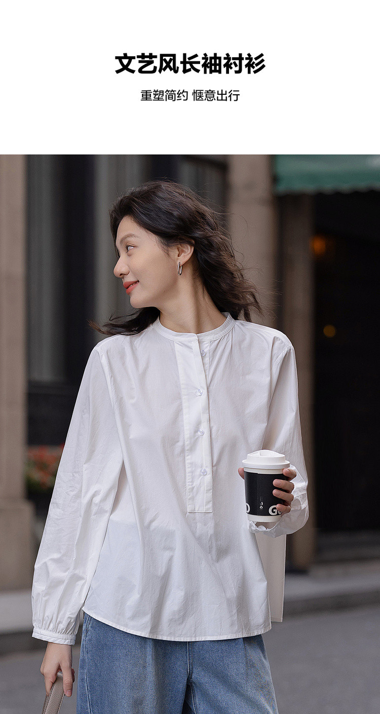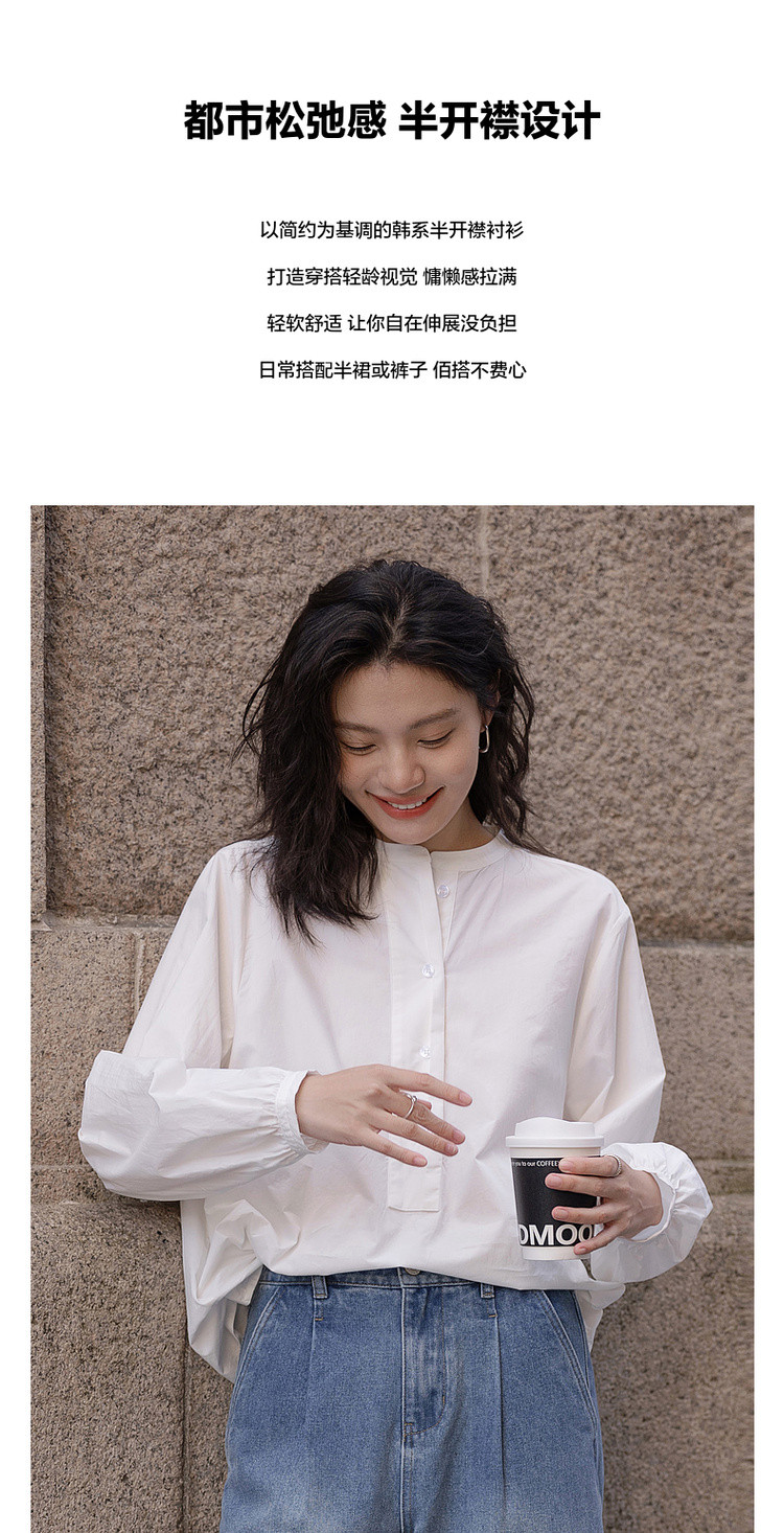 【北国情书】春季文艺风纯棉半开襟衬衫宽松藏肉好搭衬衣女式上衣
