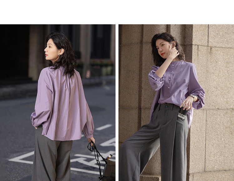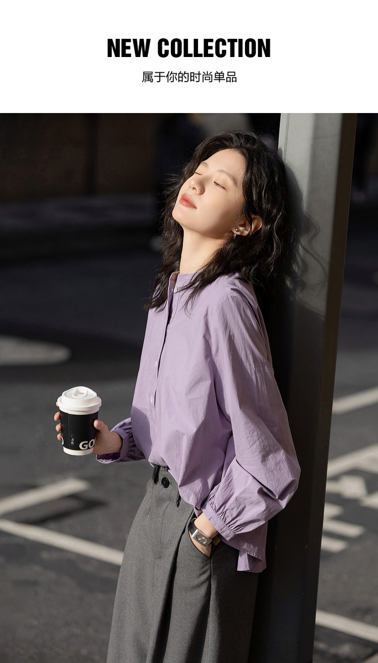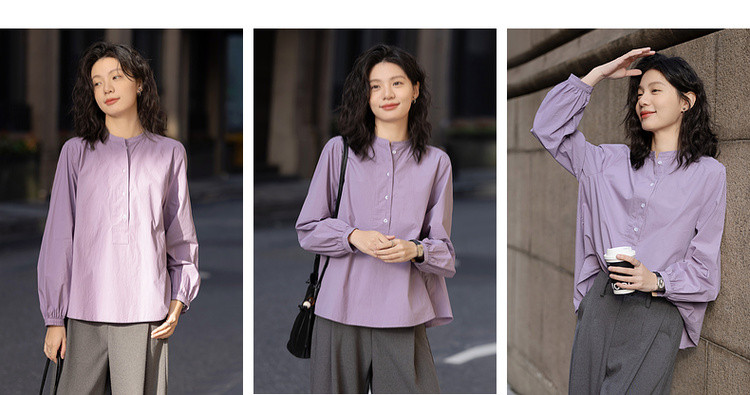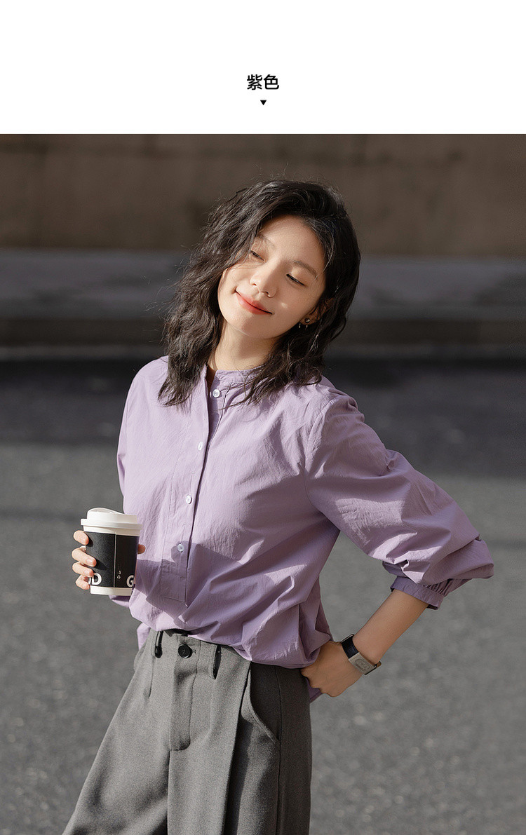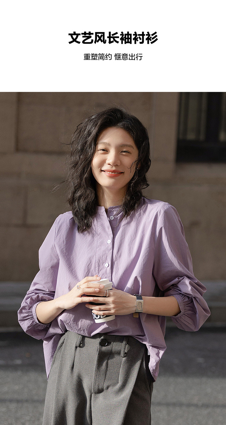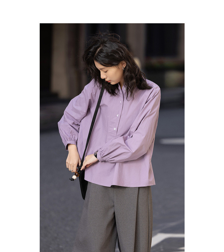 【北国情书】春季文艺风纯棉半开襟衬衫宽松藏肉好搭衬衣女式上衣