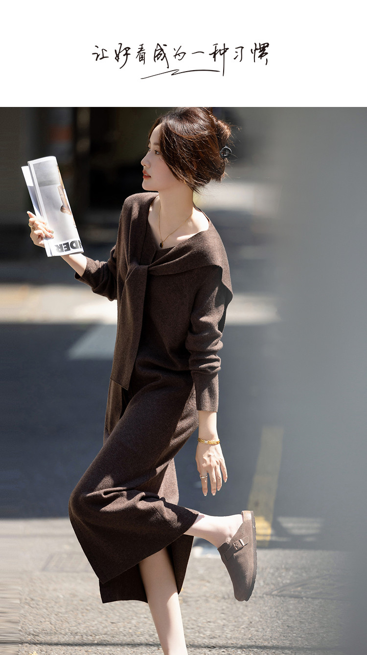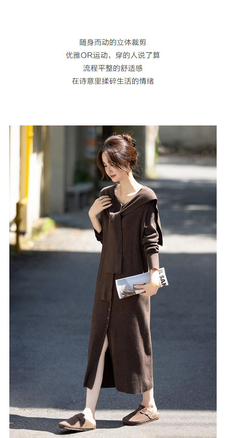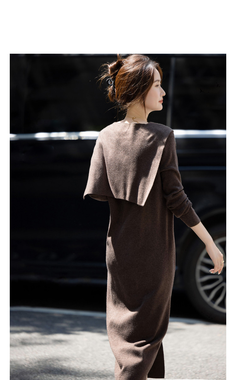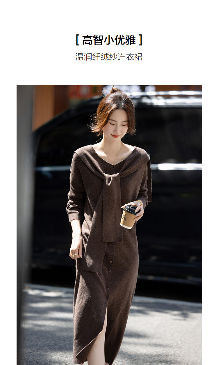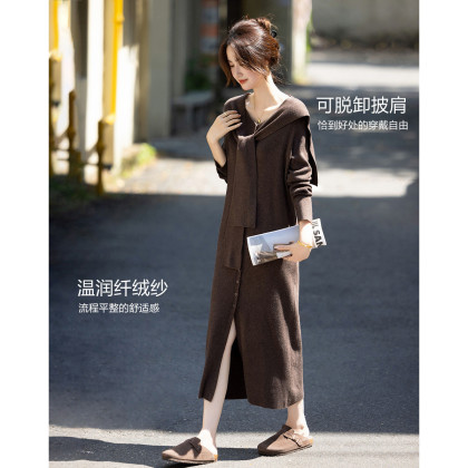 【可脱卸披肩】秋季小优雅纤绒纱V领前开叉中长款气质女式连衣裙