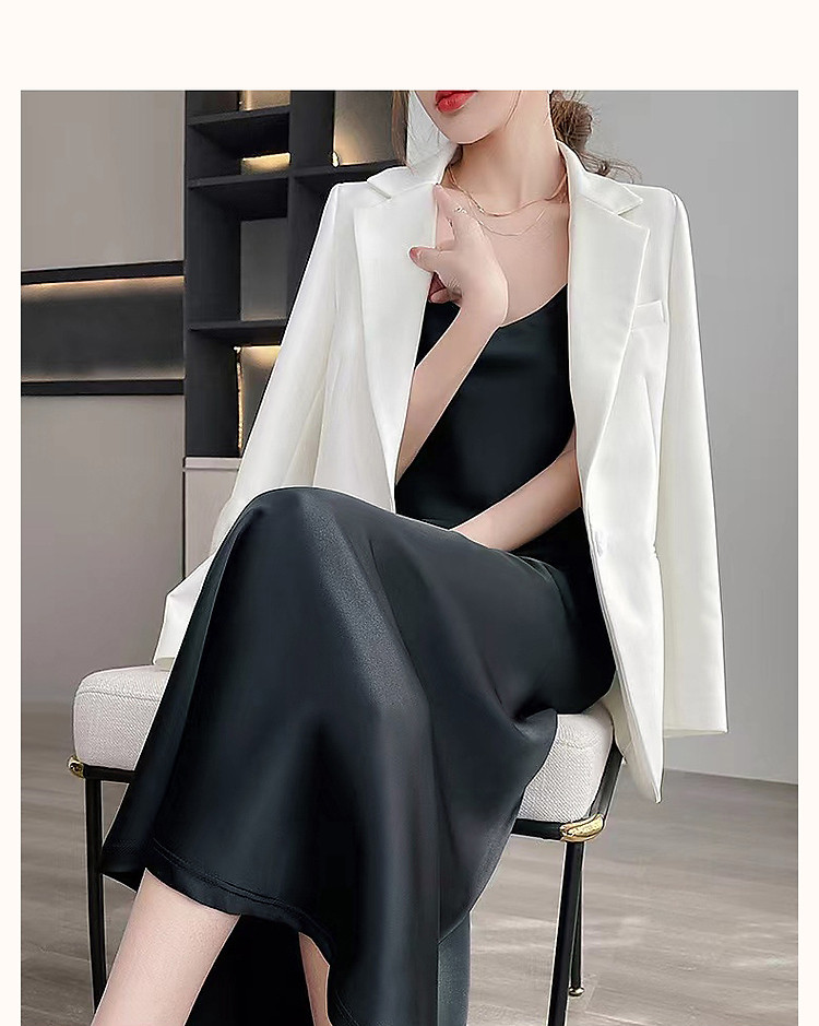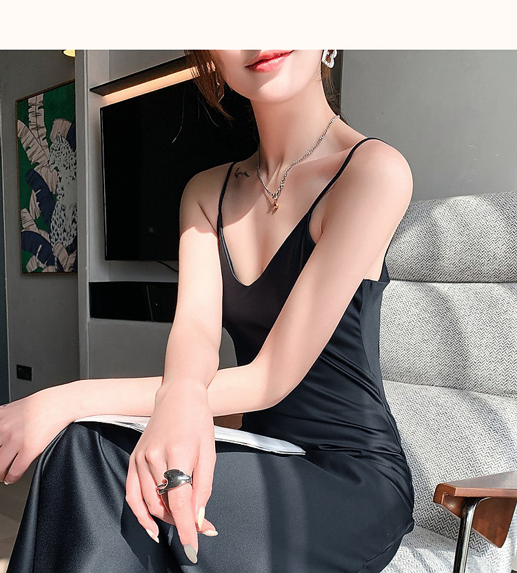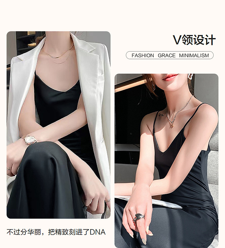 【甄选缎面有光丝】春季法式清冷吊带V领飘逸光泽A字女式连衣裙