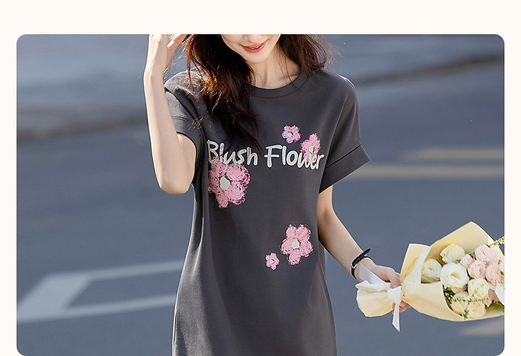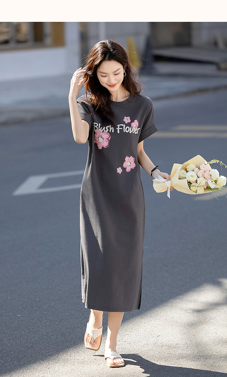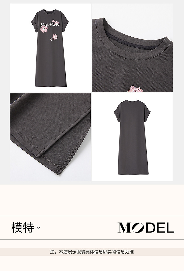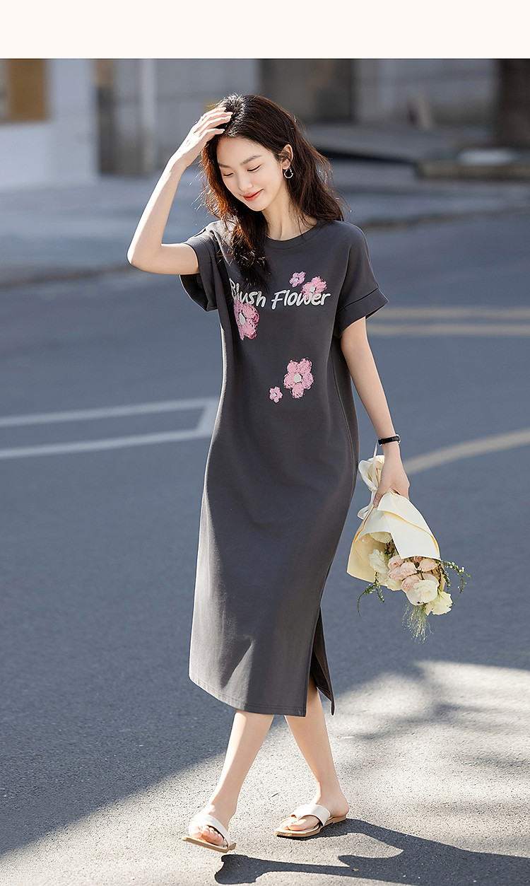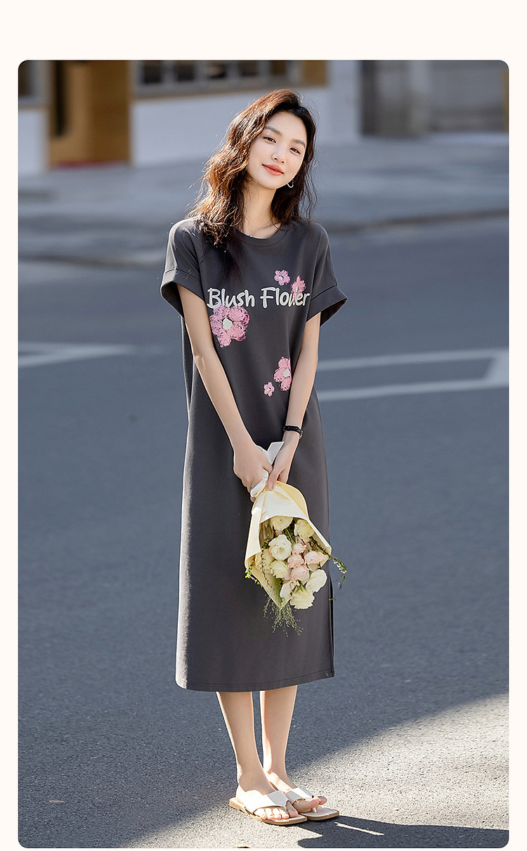 【215G珠地网眼】夏季气质字母印花宽边翻折袖圆领宽松连衣裙