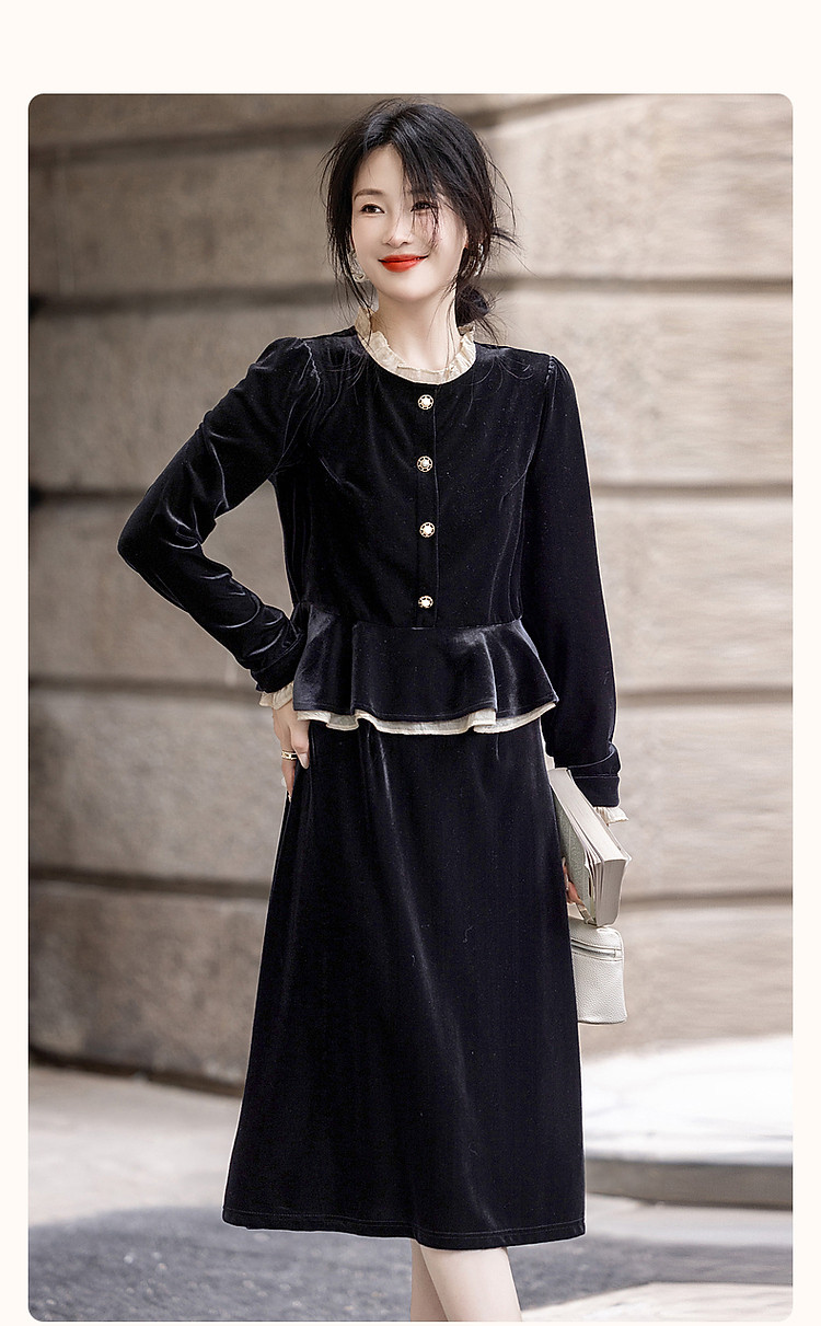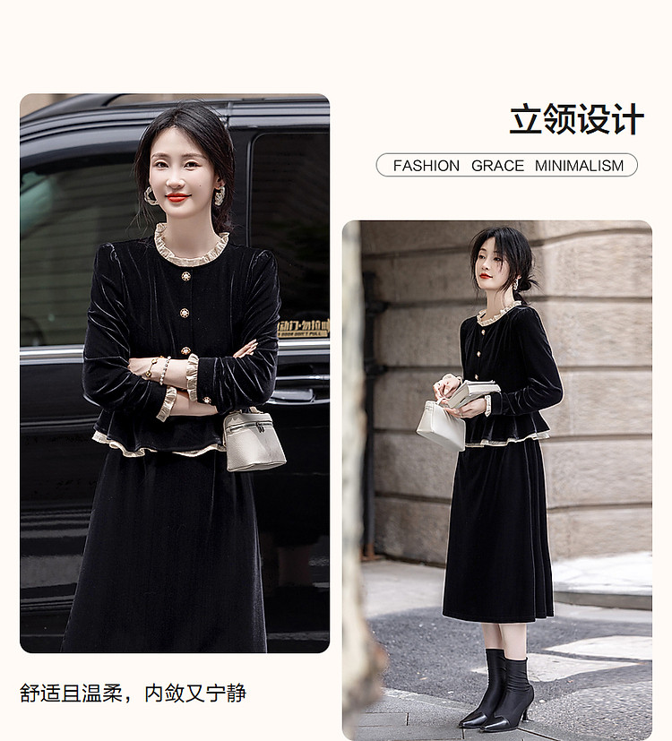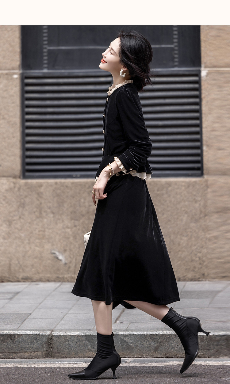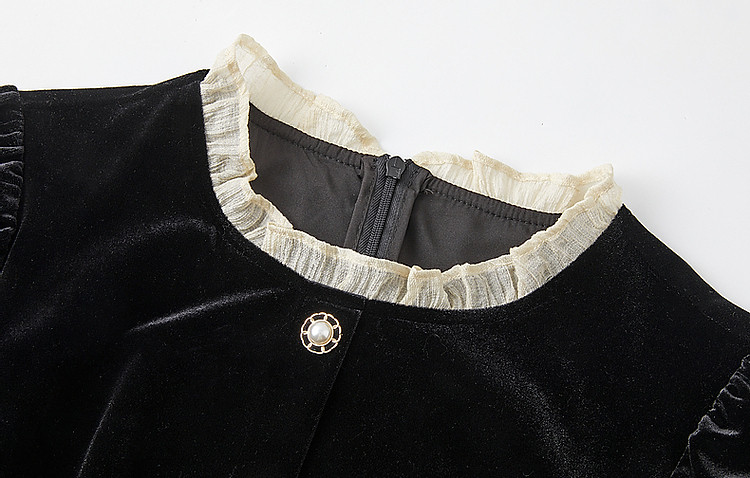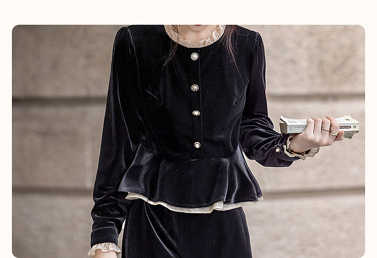 【布朗尼小姐】秋法式假两件丝绒立领木耳边茶歇裙荷叶边连衣裙