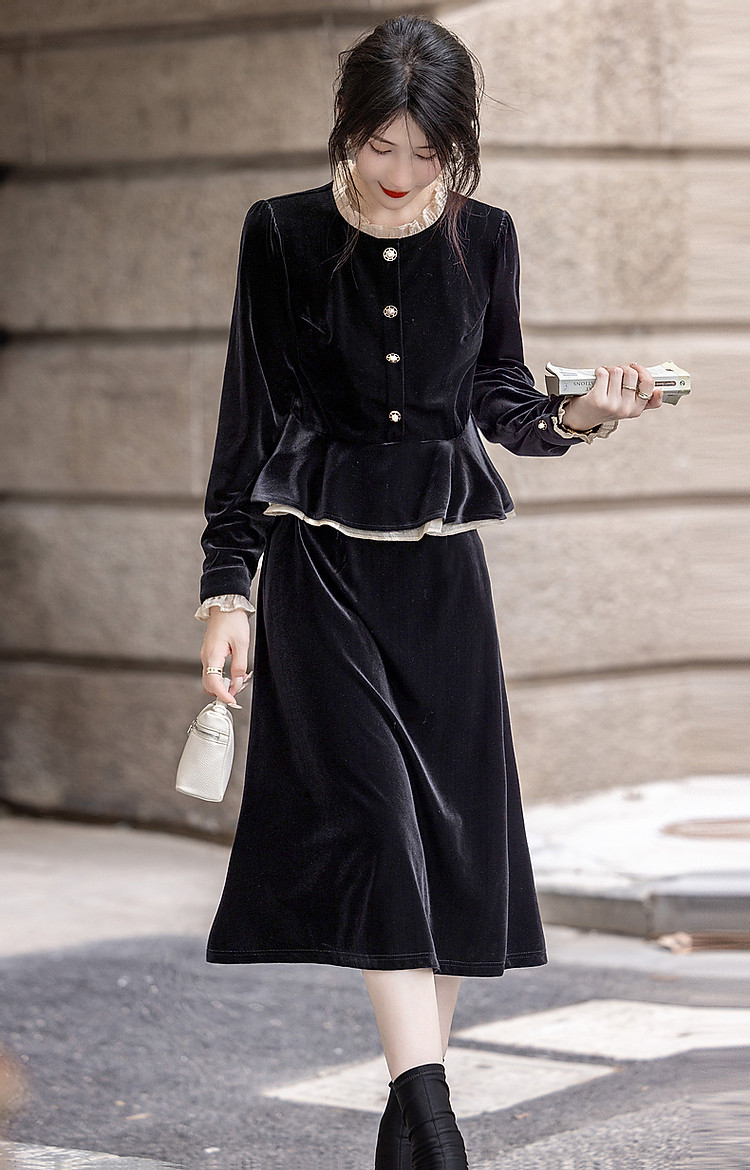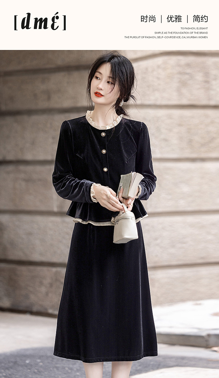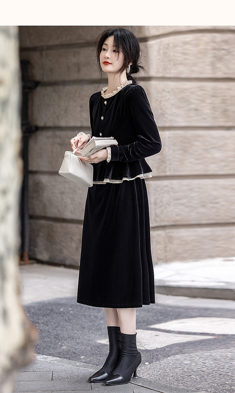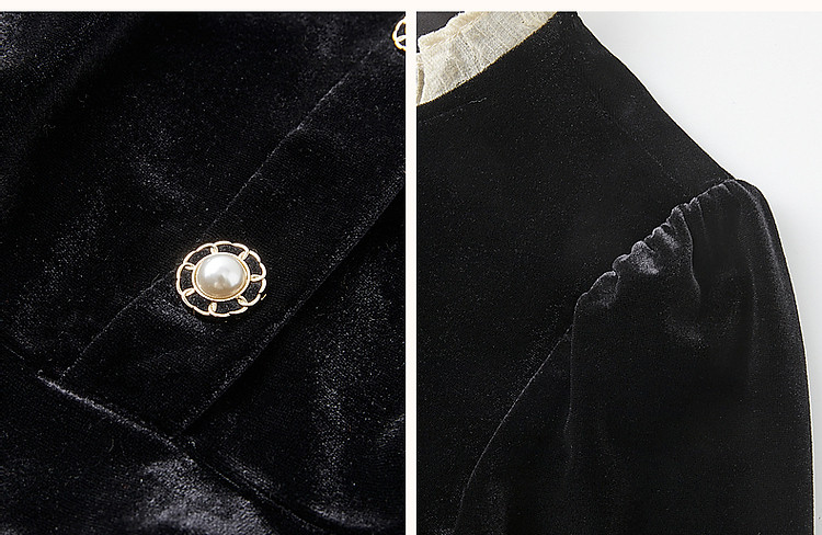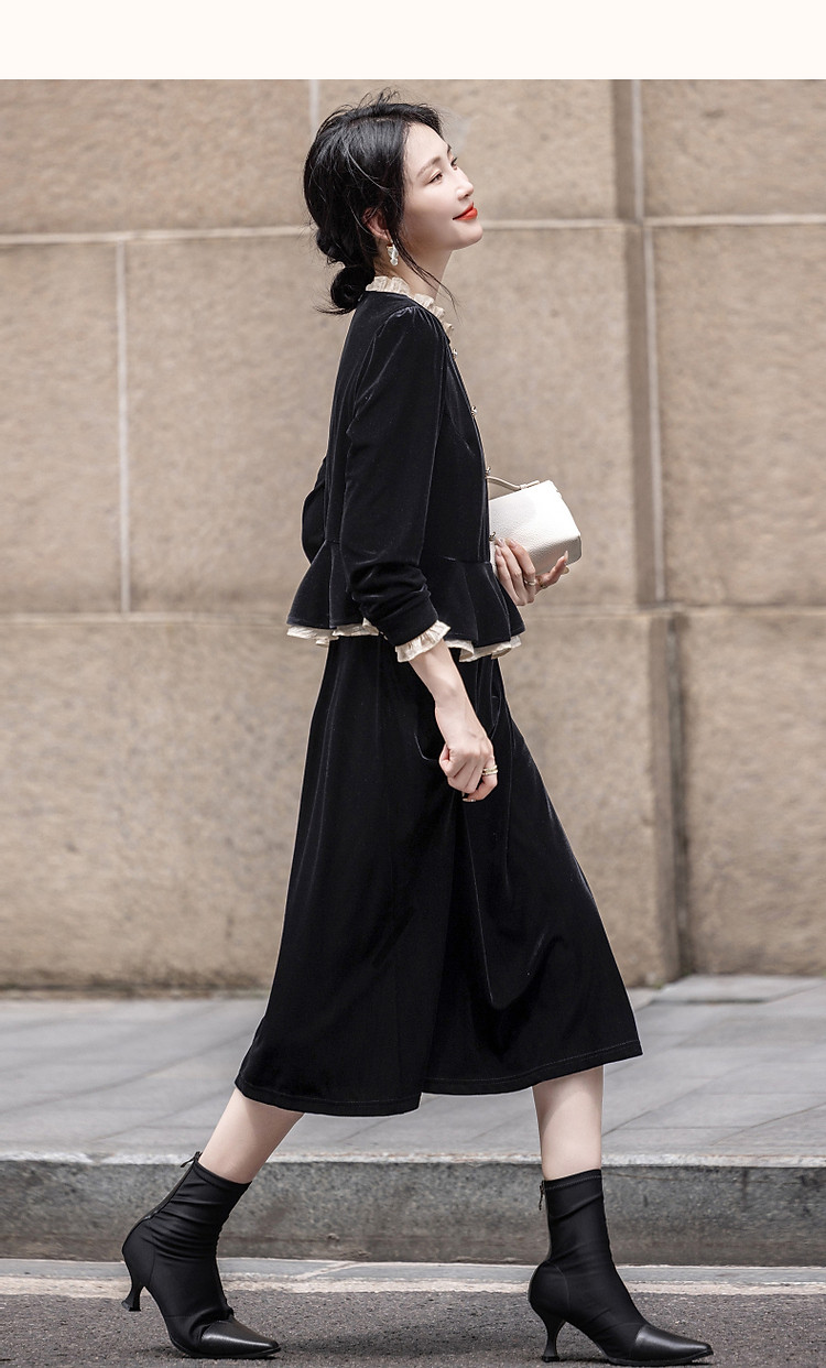 【布朗尼小姐】秋法式假两件丝绒立领木耳边茶歇裙荷叶边连衣裙