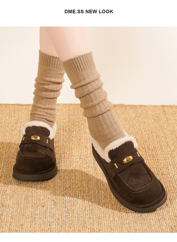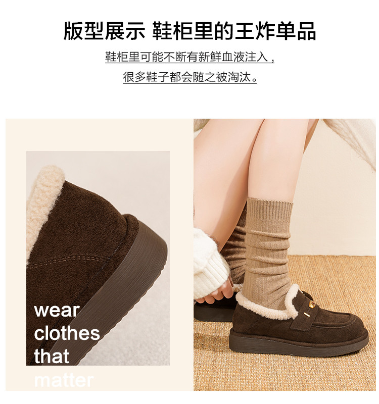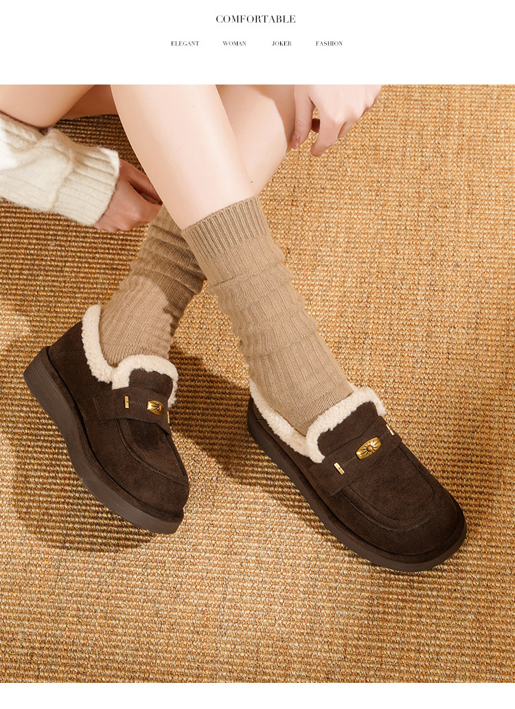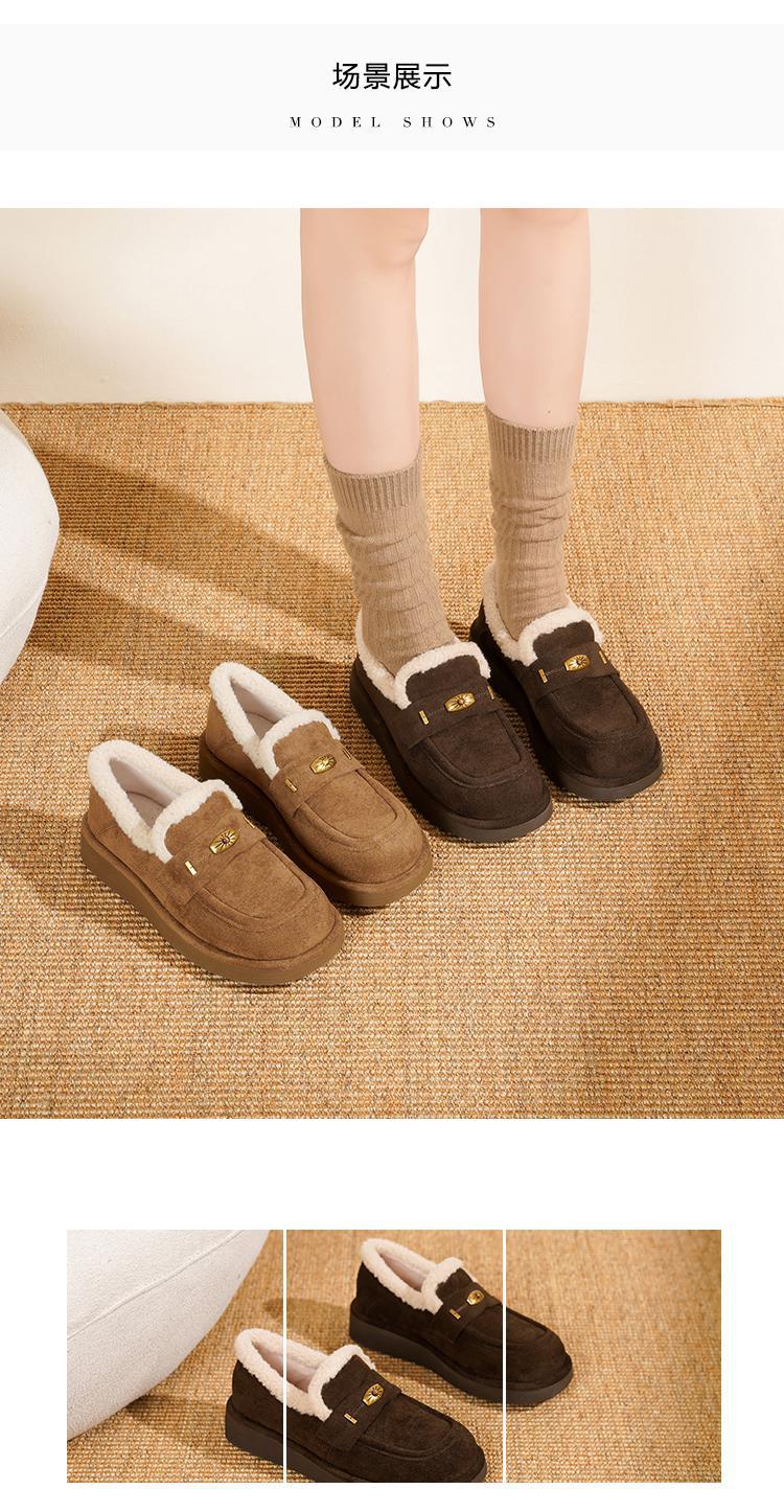 【冬日氛围感】25冬韩系“吉日”仿羊羔毛口加绒内里保暖毛毛鞋