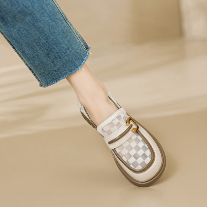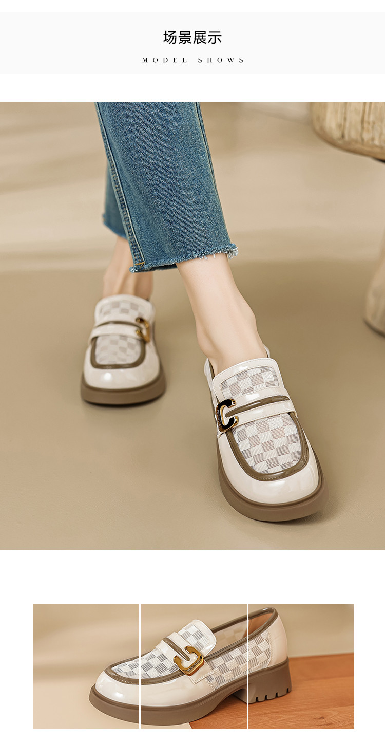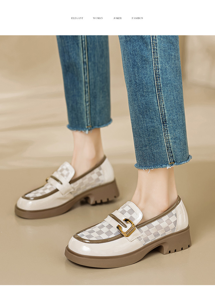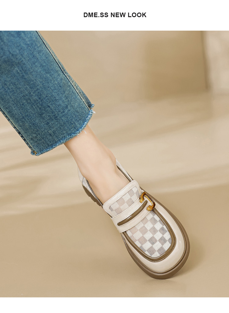 2023春夏新款时尚通勤撞色网状透气乐福鞋女单鞋