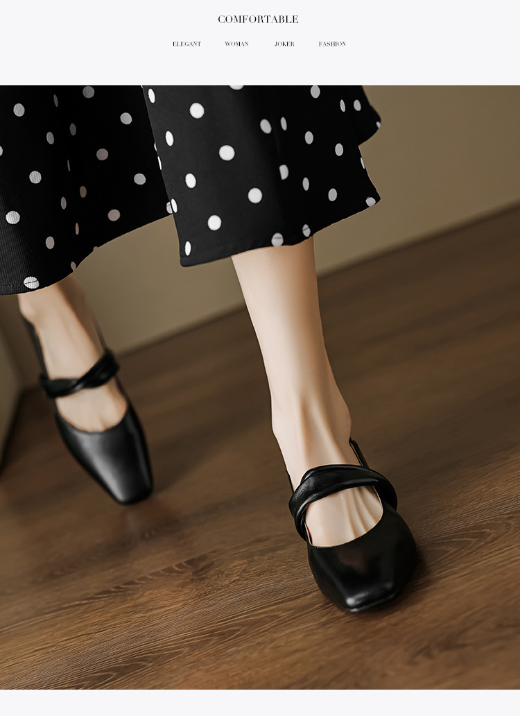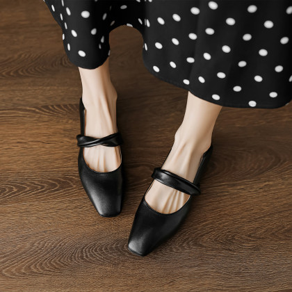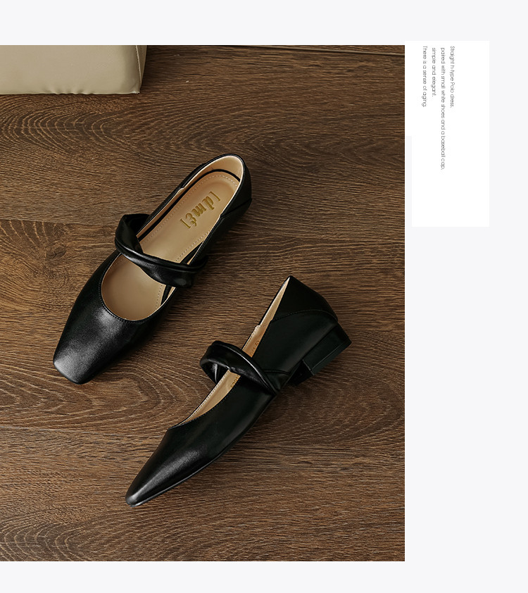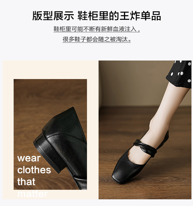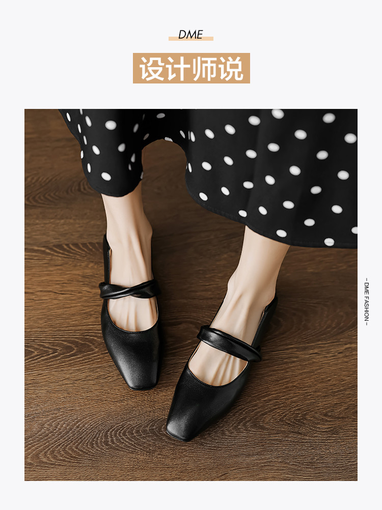 时尚简约日常百搭韩式极简纽带纯色方头女单鞋