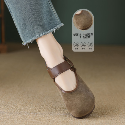 2024年春季新款潮流韩系百搭舒适拼接撞色圆头玛丽珍女单鞋
